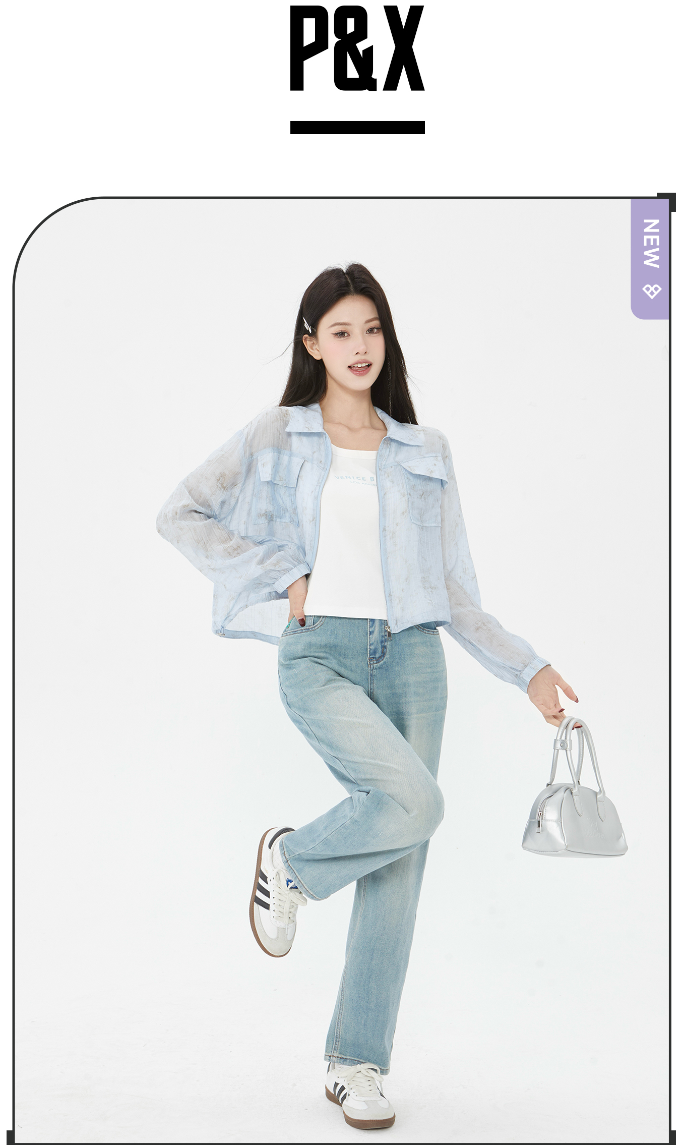 P&X设计师女装2025夏款两件套上衣衬衫+背心 825215216 蓝/白