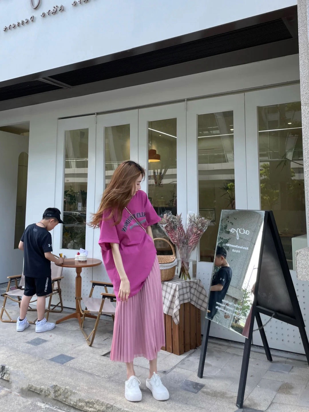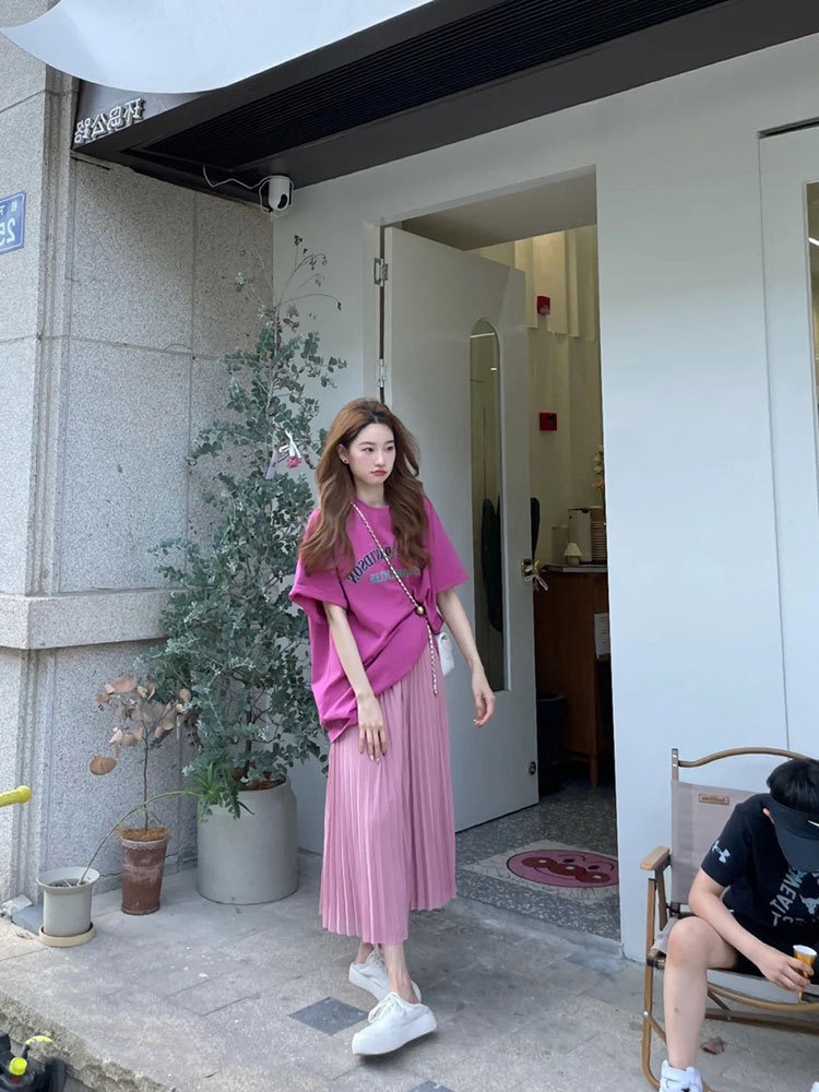 (清仓现货)【社群供】盐甜系套装网红炸街穿搭火龙果色