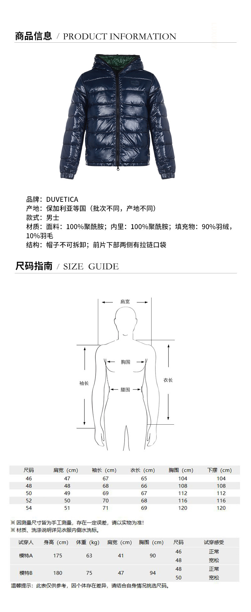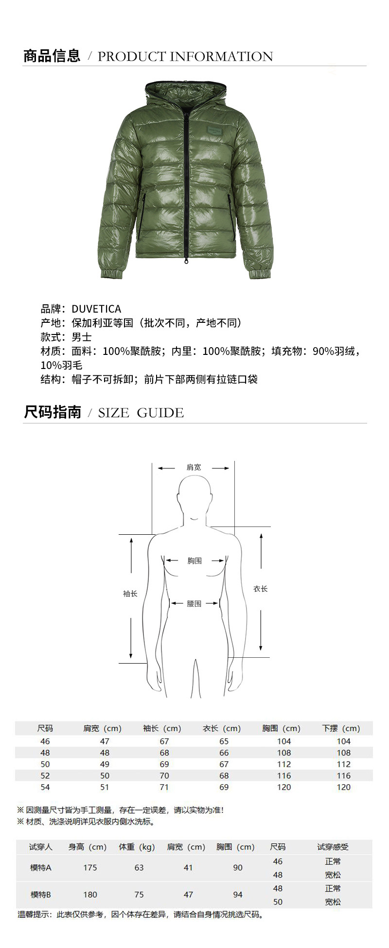 DUVETICA/DUVETICA 男士羽绒服 男士聚酰胺连帽羽绒服夹克外套 2 U5030005S01 1035R