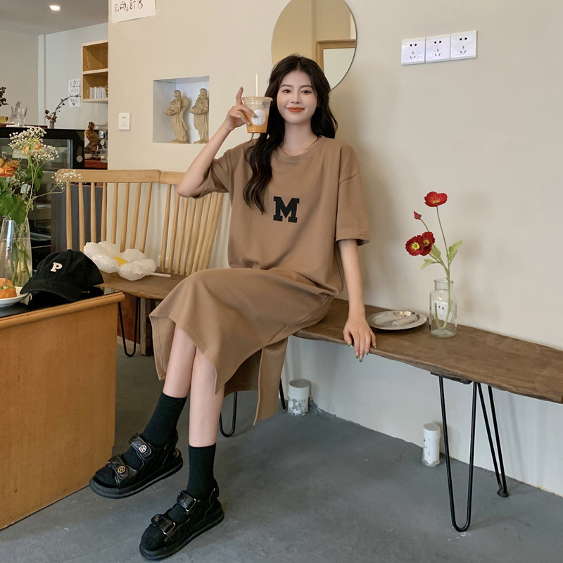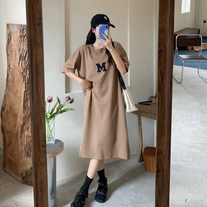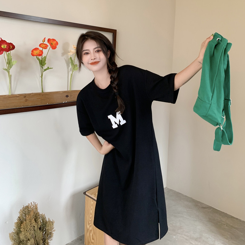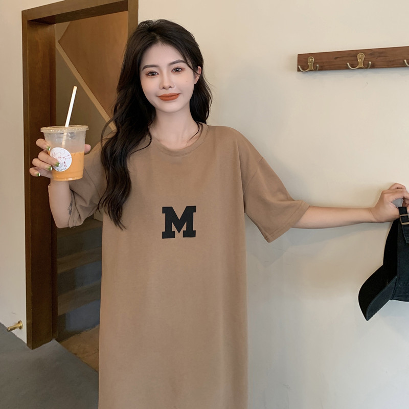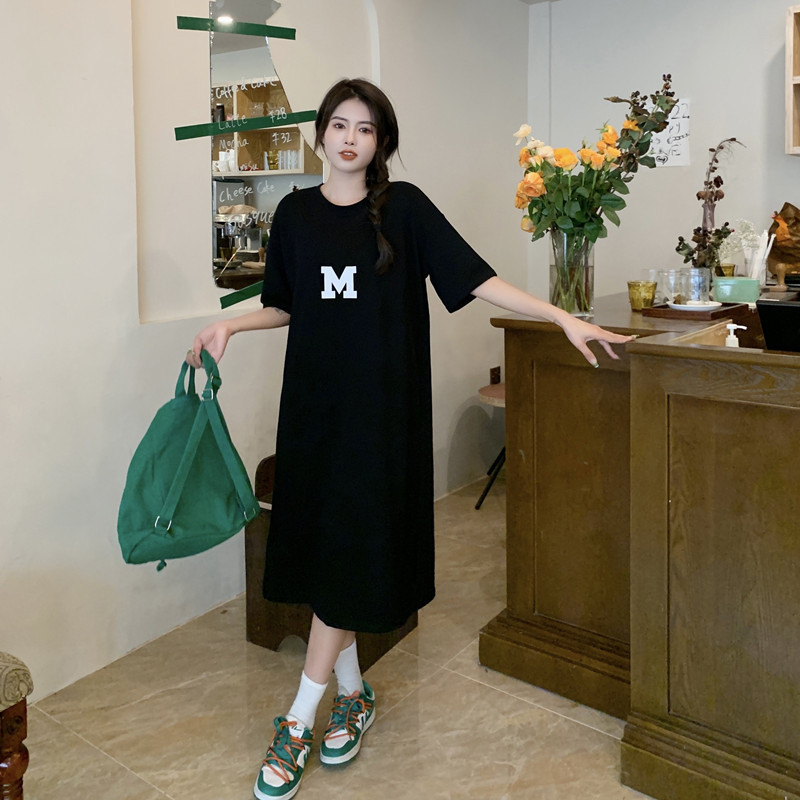 夏季新款【大码女装连衣裙】胖妹妹宽松遮肚子 显瘦长款过膝t恤连衣裙子