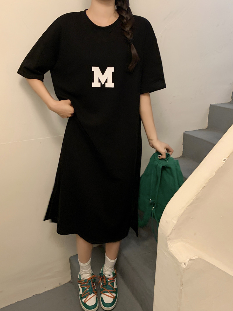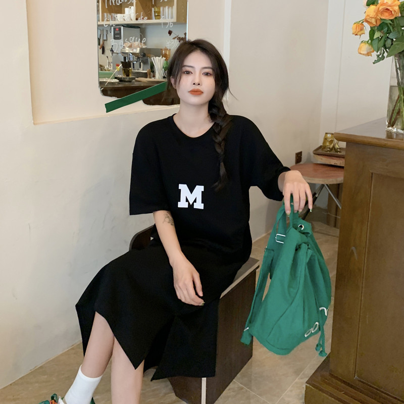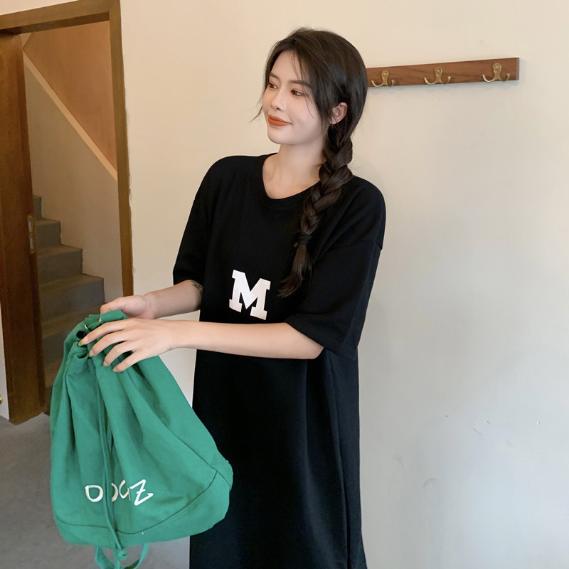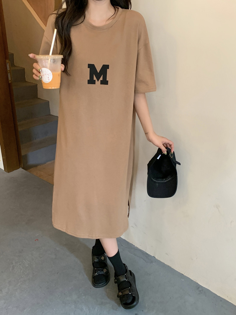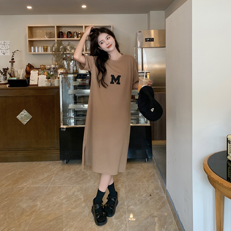 夏季新款【大码女装连衣裙】胖妹妹宽松遮肚子 显瘦长款过膝t恤连衣裙子