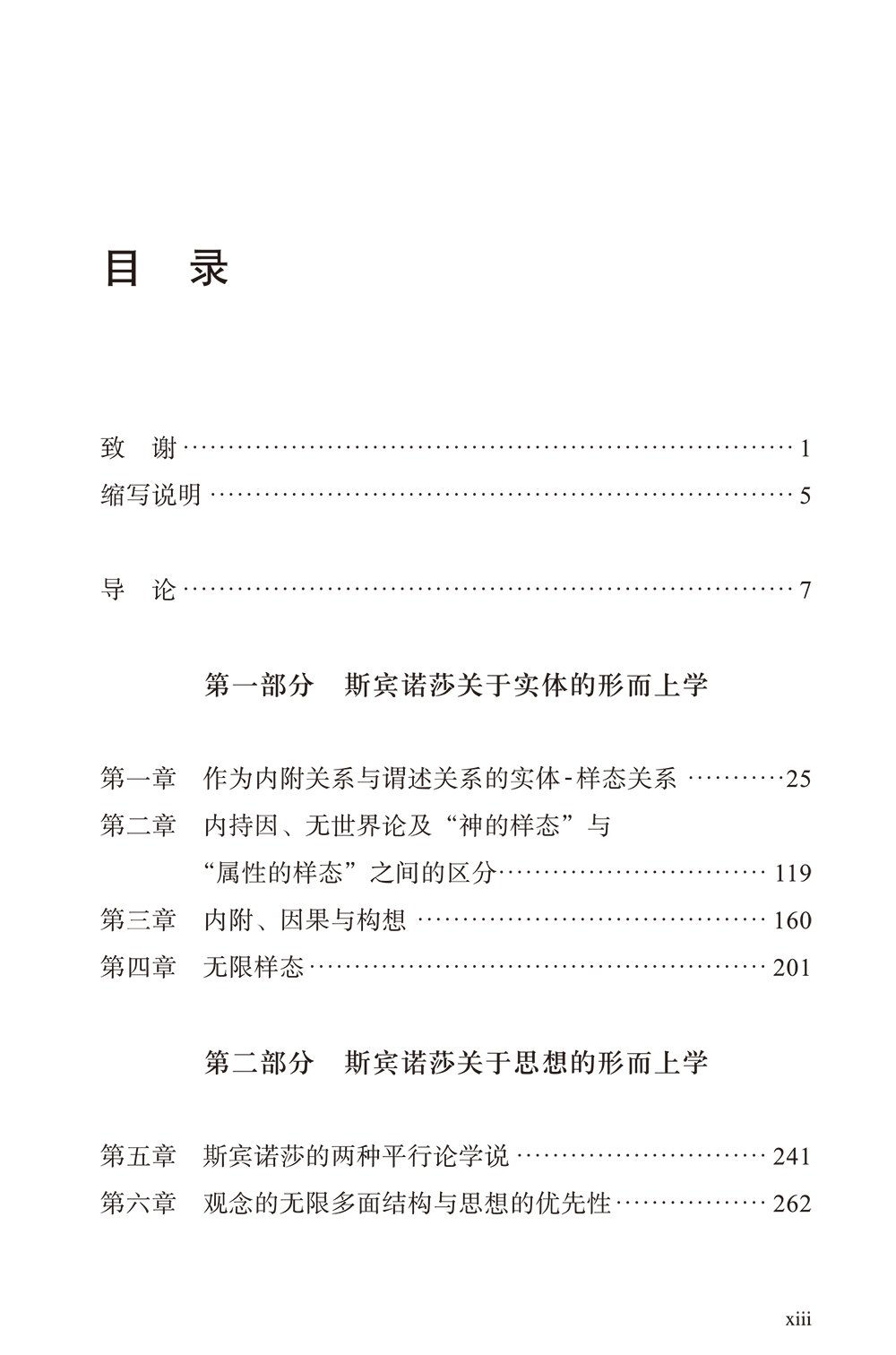本书由两部分构成:前四章主要关注斯宾诺莎的实体的形而上学,后两章则处理思想的形而上学。作者从实体与样态的关系这一基本问题出发,对斯宾诺莎的思想体系进行了细致分析,反驳了一些在学界中广泛流行的观点,并在此基础上阐发了诸多具有原创性和争议性的主张,为理解斯宾诺莎的形而上学开辟了新的进路。最后,作者论证,斯宾诺莎何以能够明确地优先考虑思想的属性,而不抱有还原的唯心主义。