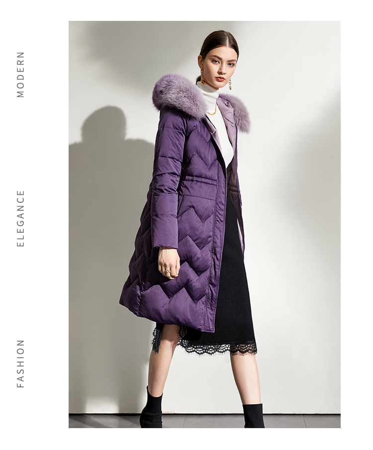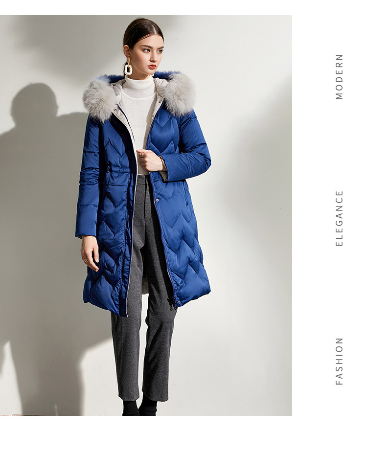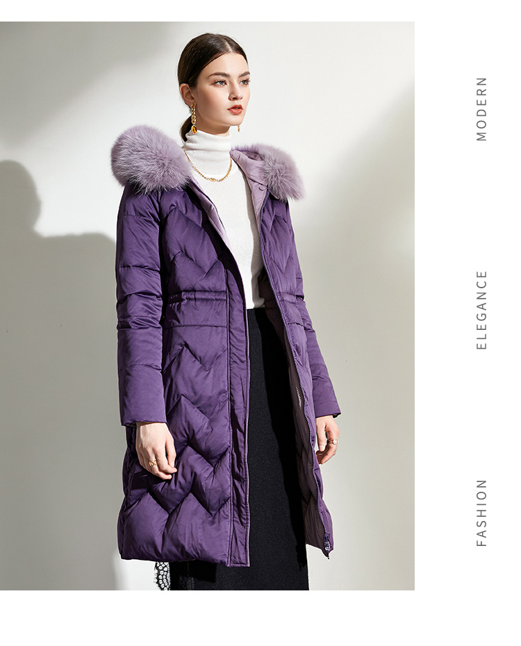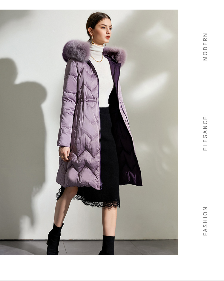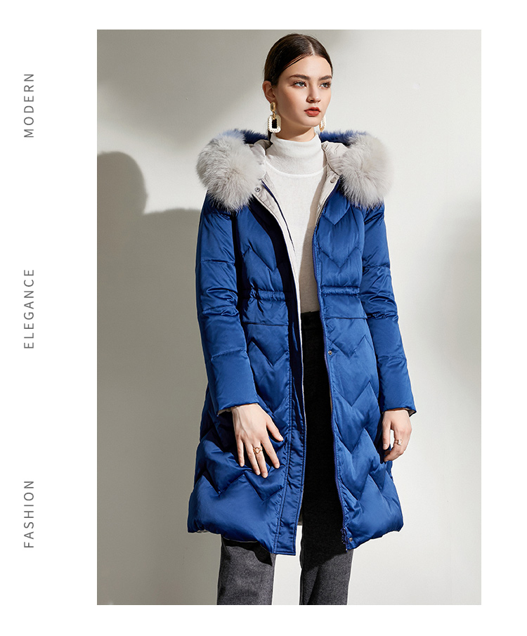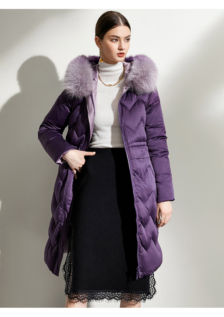 佐尔美冬款女士羽绒服中长款毛领修身女羽绒衣修身E44YT13