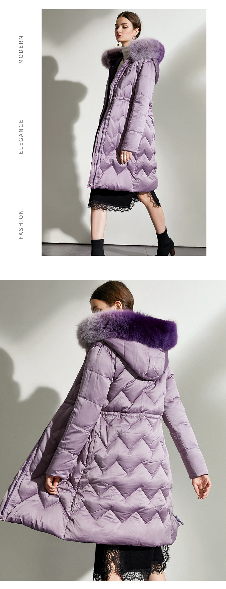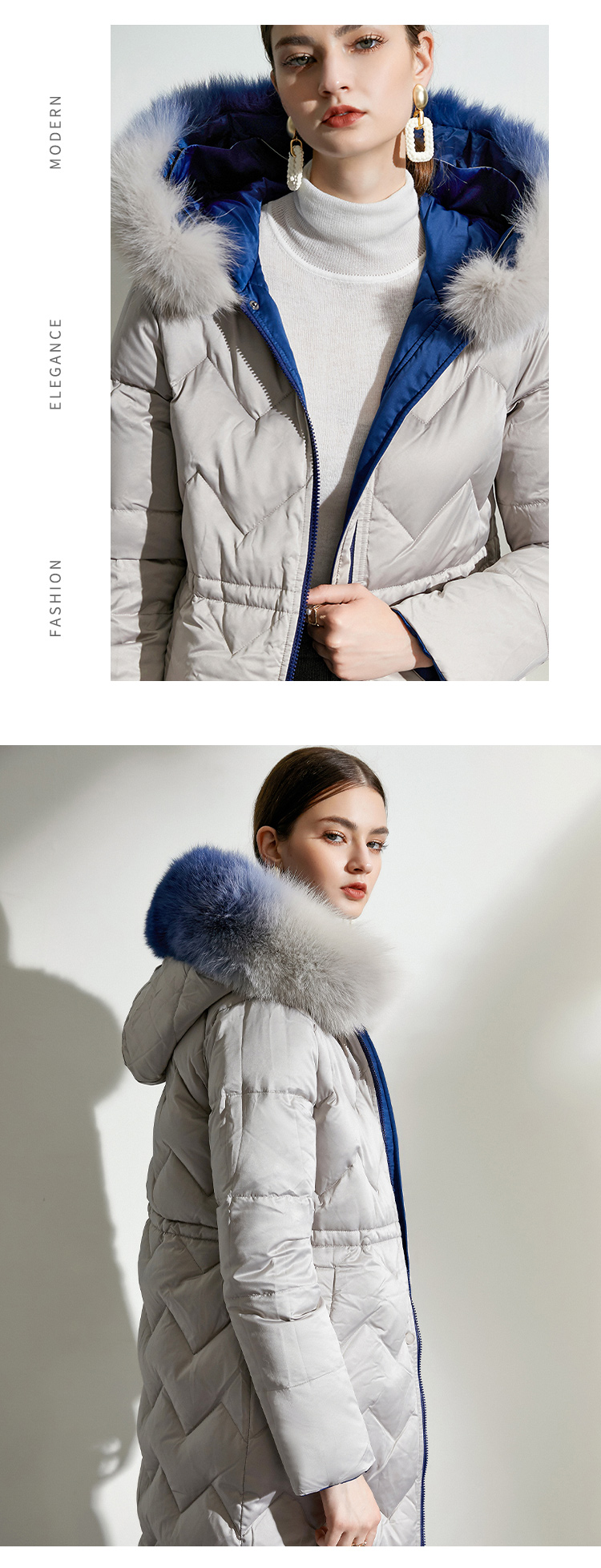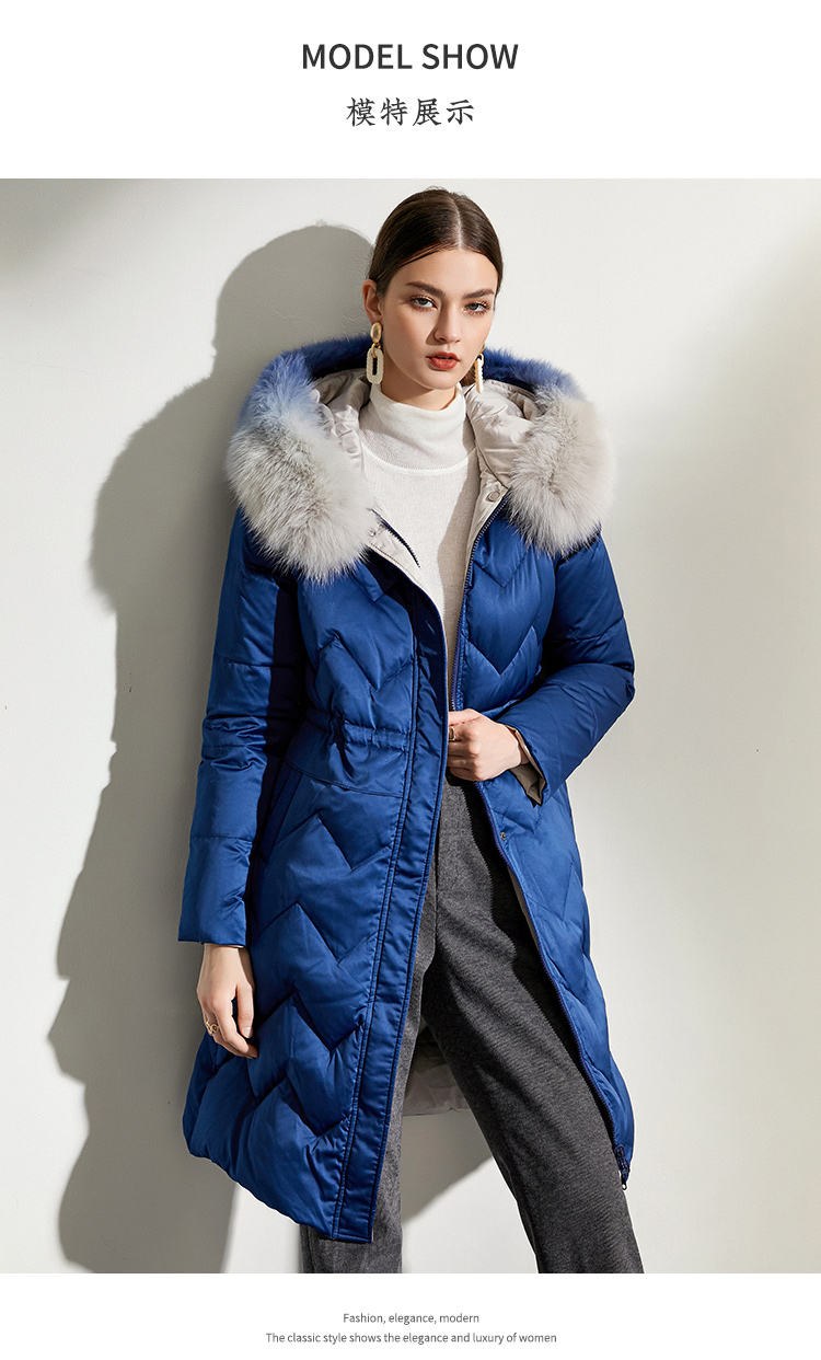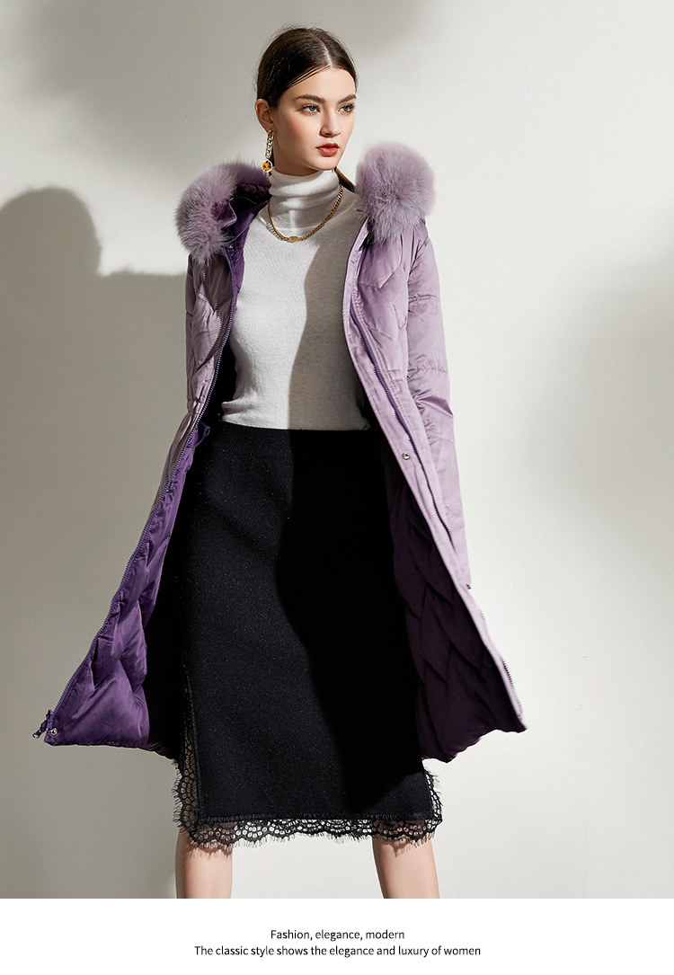 佐尔美冬款女士羽绒服中长款毛领修身女羽绒衣修身E44YT13