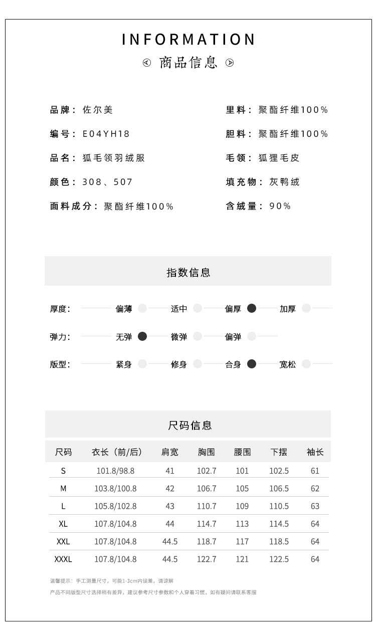 佐尔美2021冬季新品上新 时尚保暖狐毛领羽绒服外套女 E04YH18