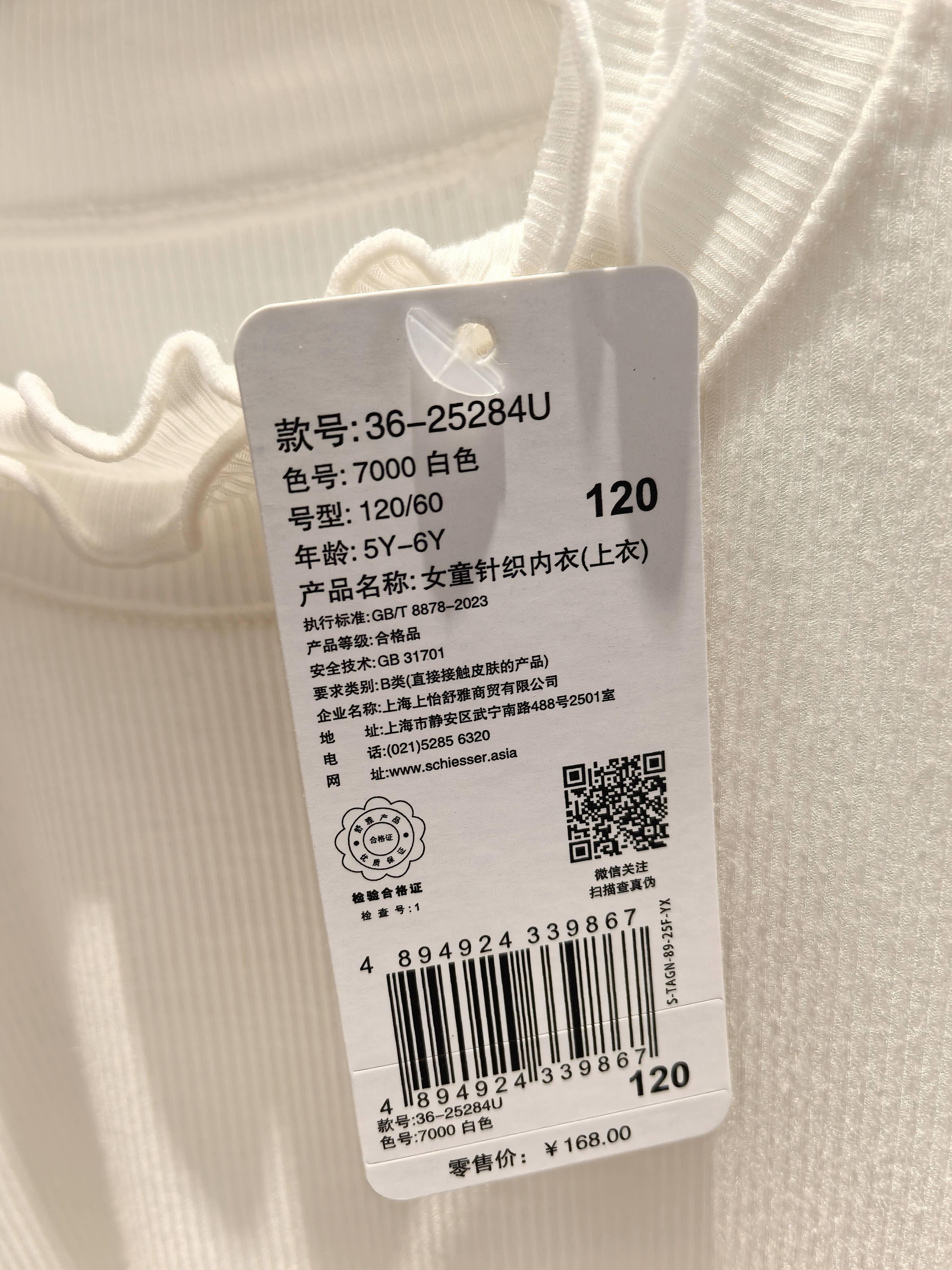【50S超软莫代尔】SCHIESSER德国舒雅女童莫代尔氨纶薄款春秋打底保暖木耳花边打底衫36/25284U