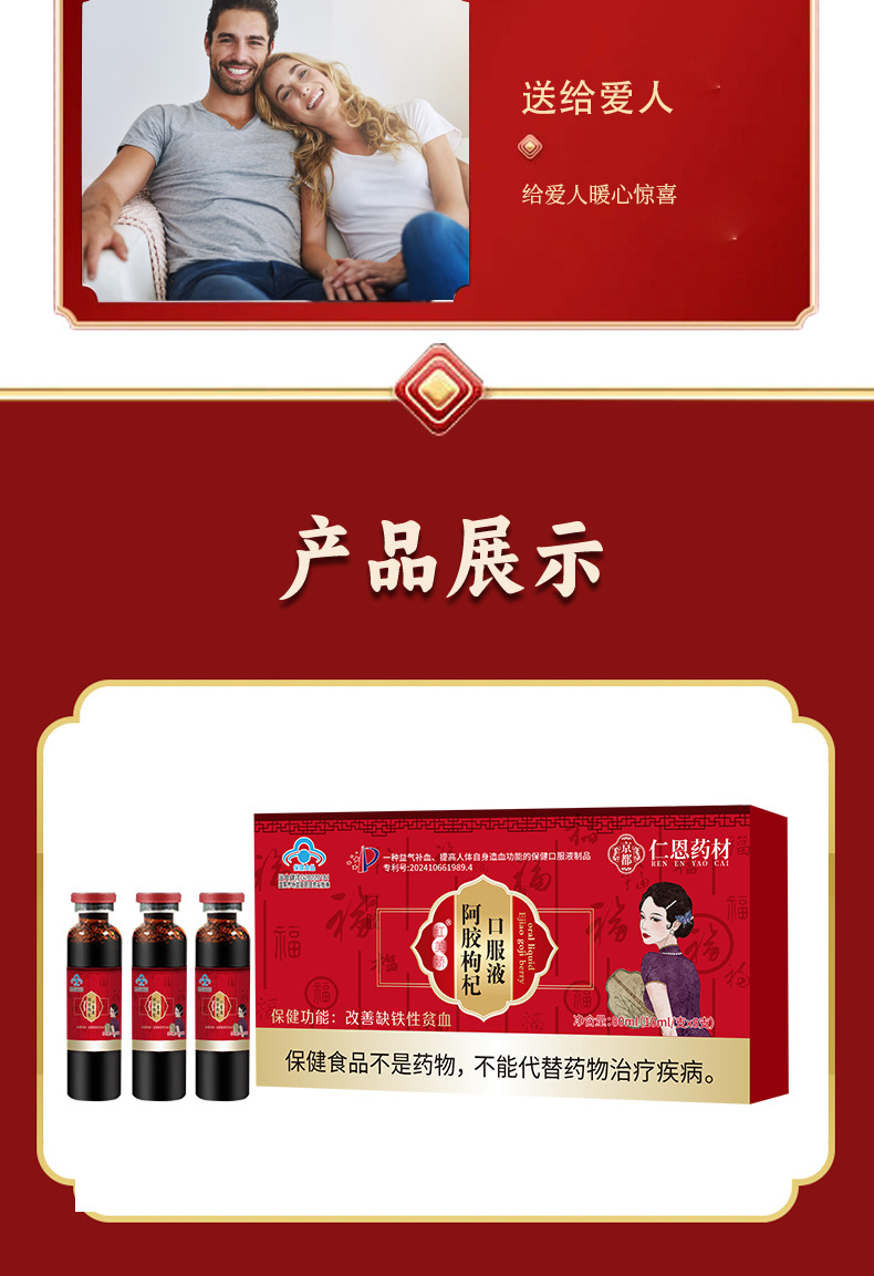 【气血充盈!红润好气色】京都仁恩药材阿胶口服液改善贫血蓝帽保健功能食品保健品缺铁性。ry