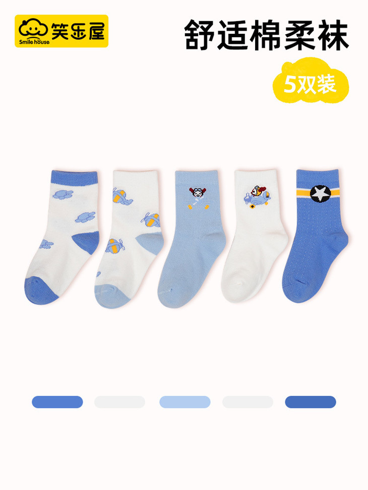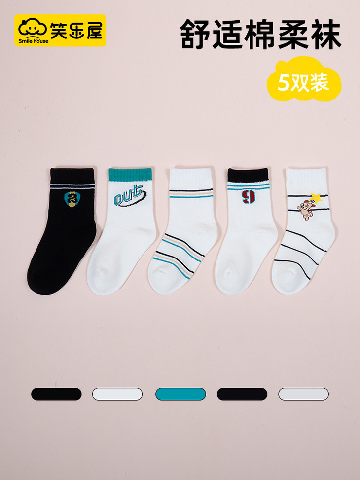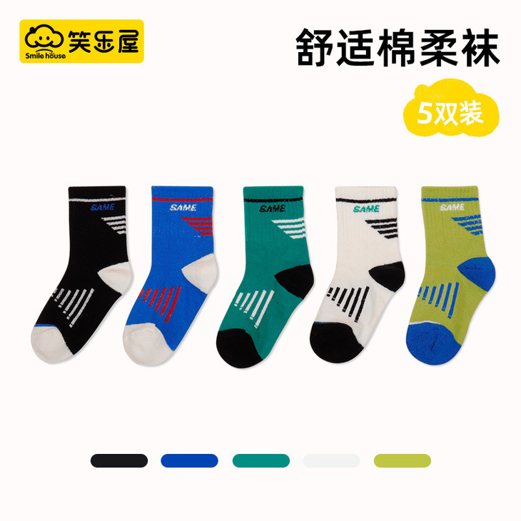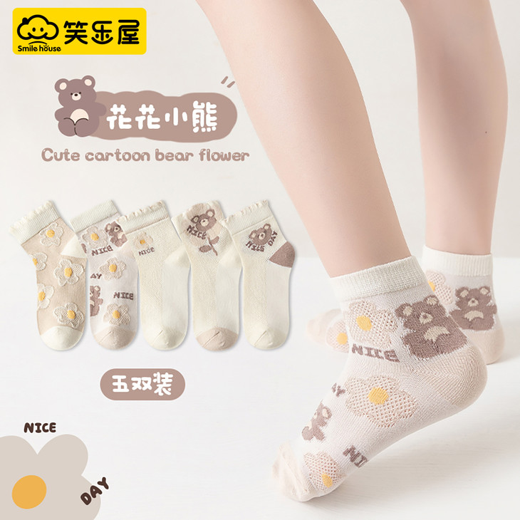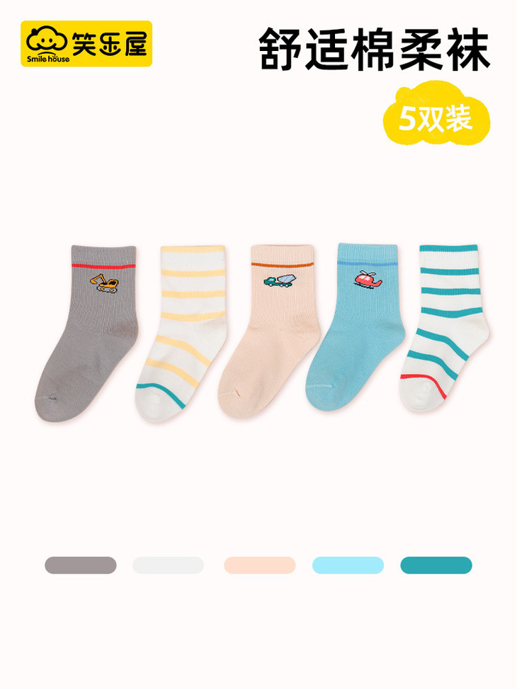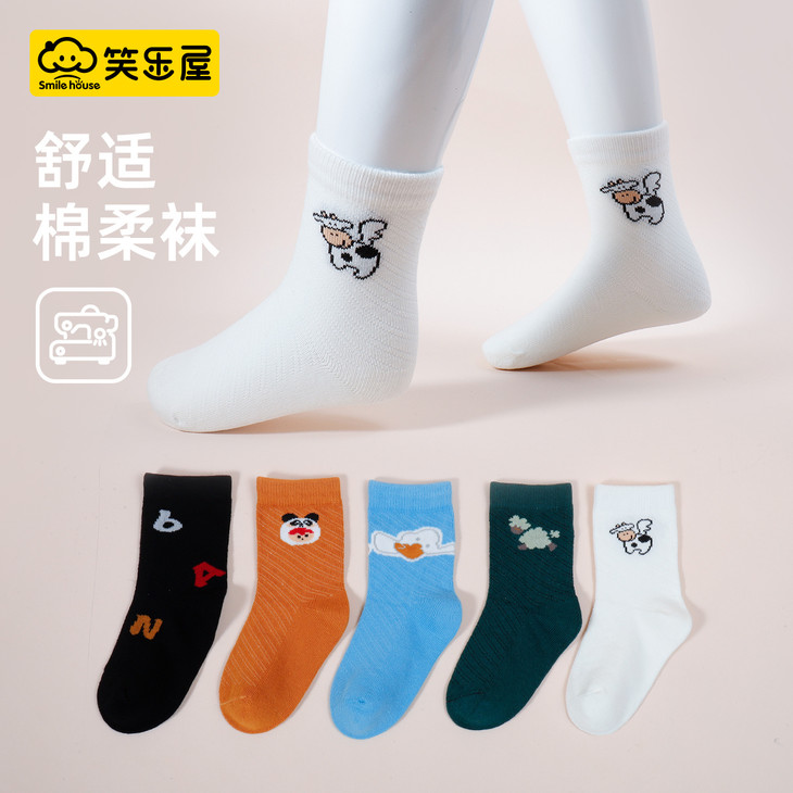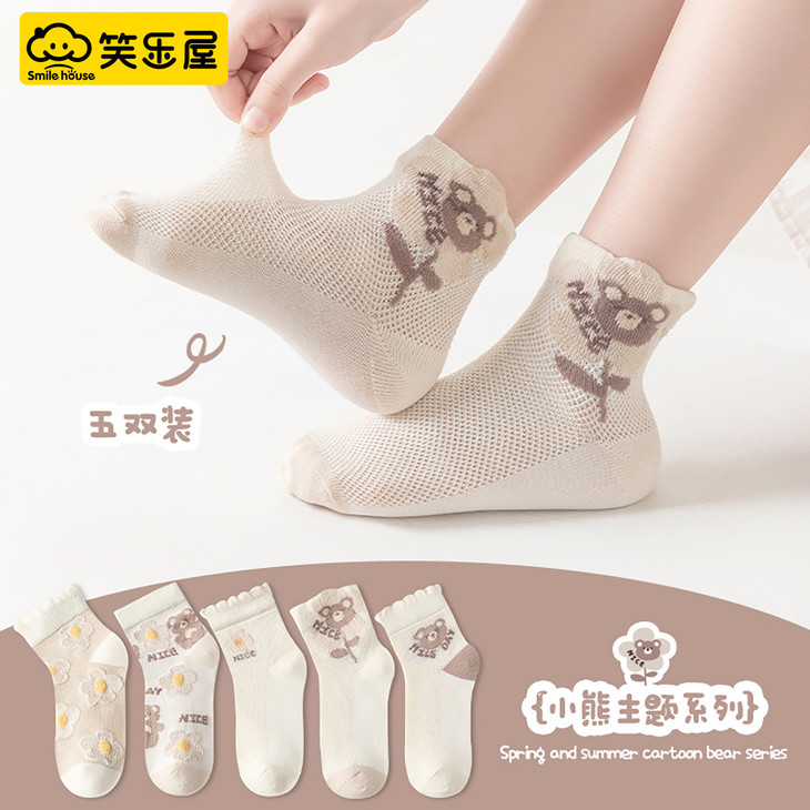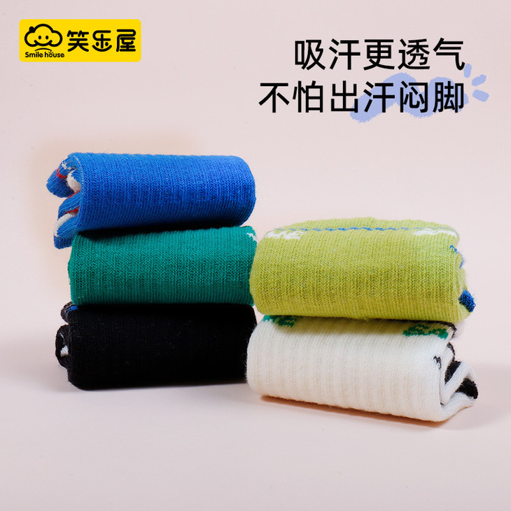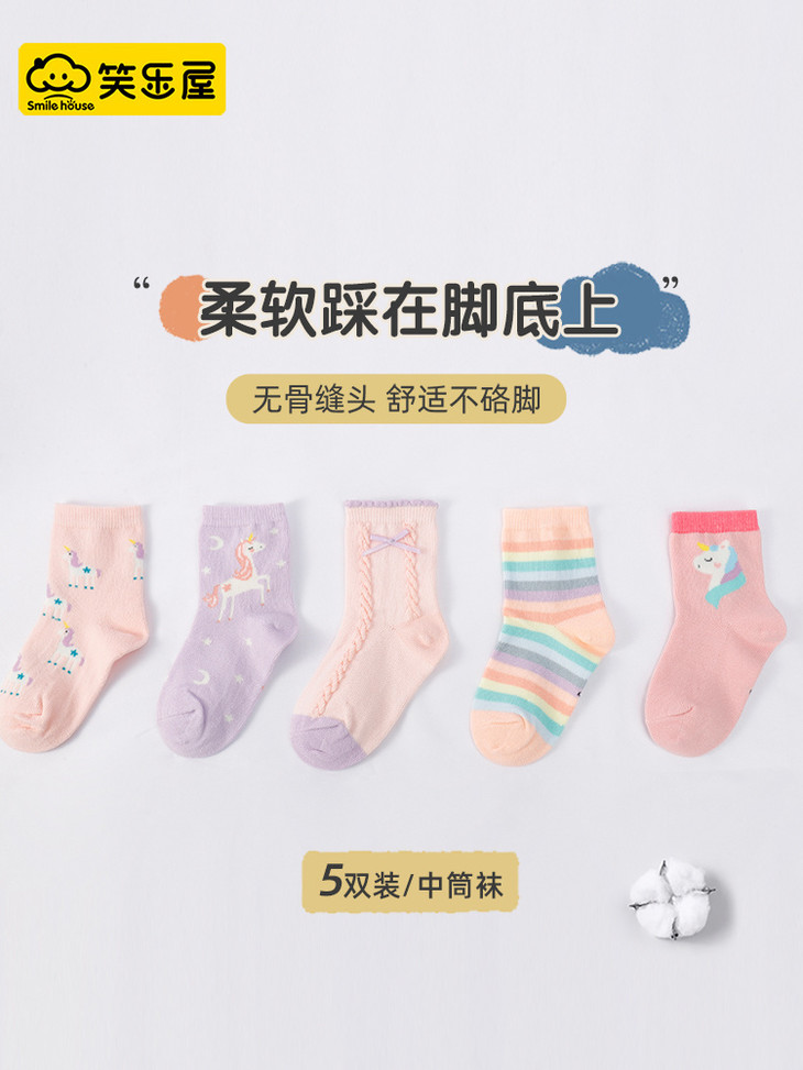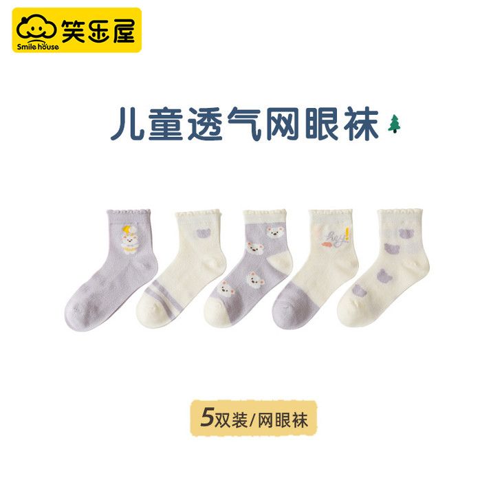 笑乐屋 春夏儿童40支精梳棉袜5双装