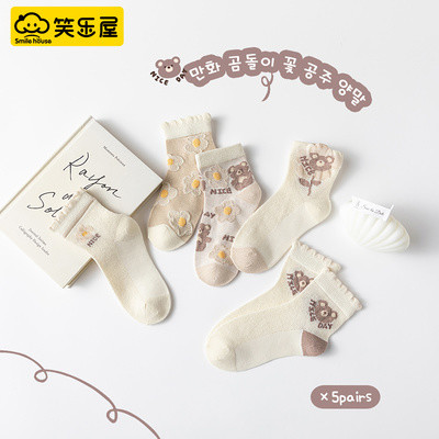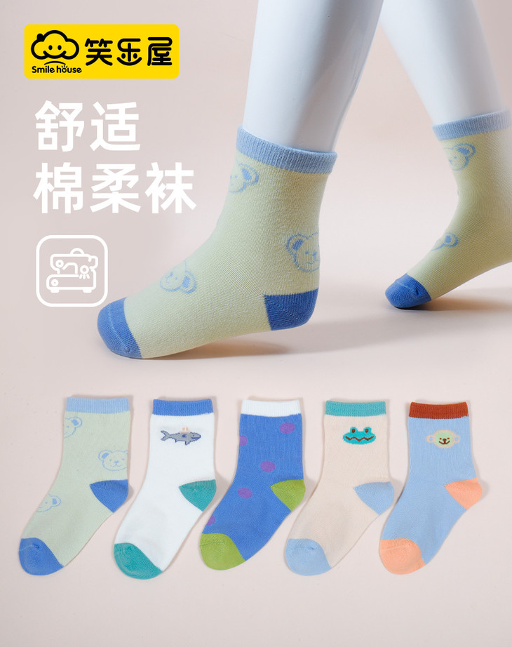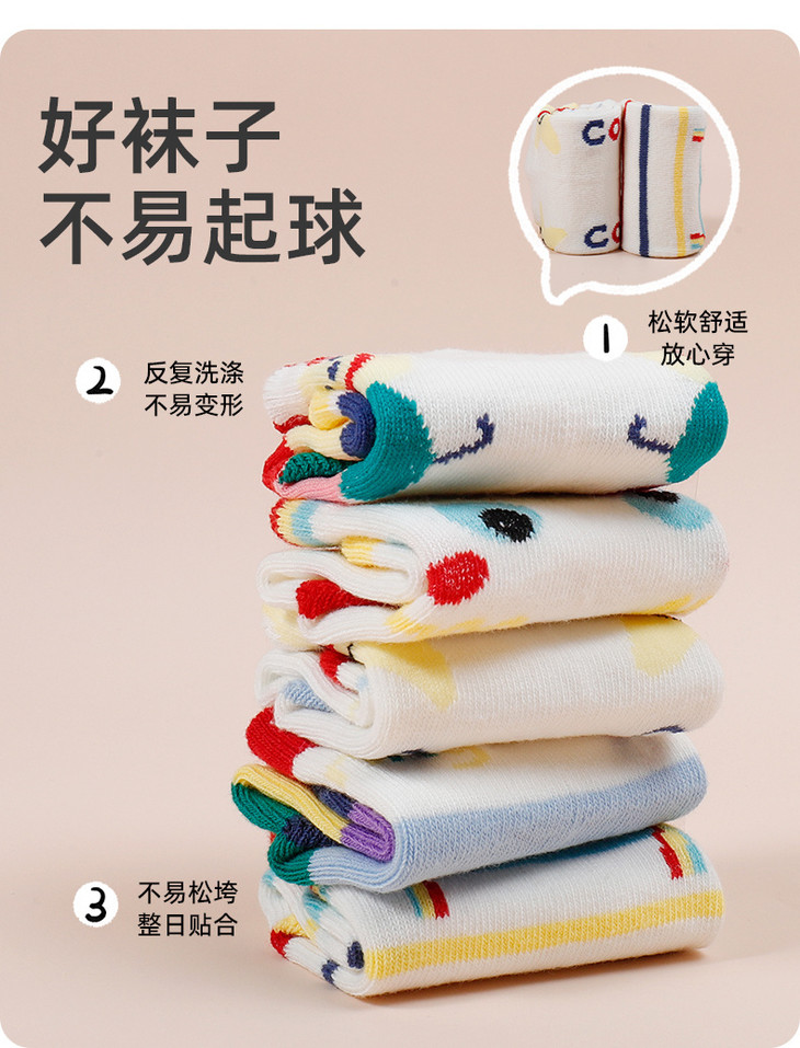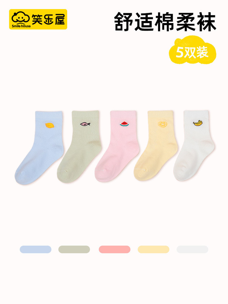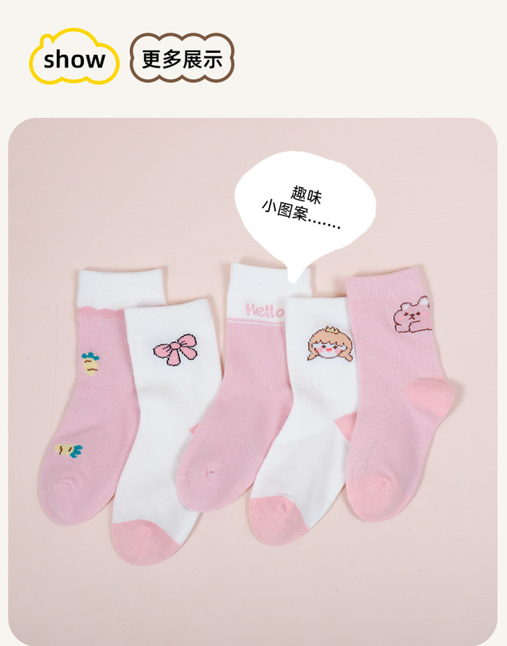 ☀️品牌直发【笑乐屋 春夏儿童40支精梳棉袜5双装】需💰26.9!一眼沦陷!颜值炸裂!春款儿童棉袜❗️洋气到能当穿搭博主❗️软糯如云朵❗️弹力不勒脚❗️花色多到挑花眼!