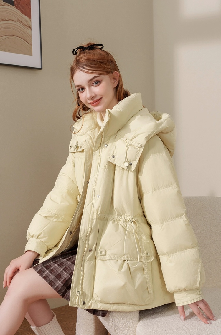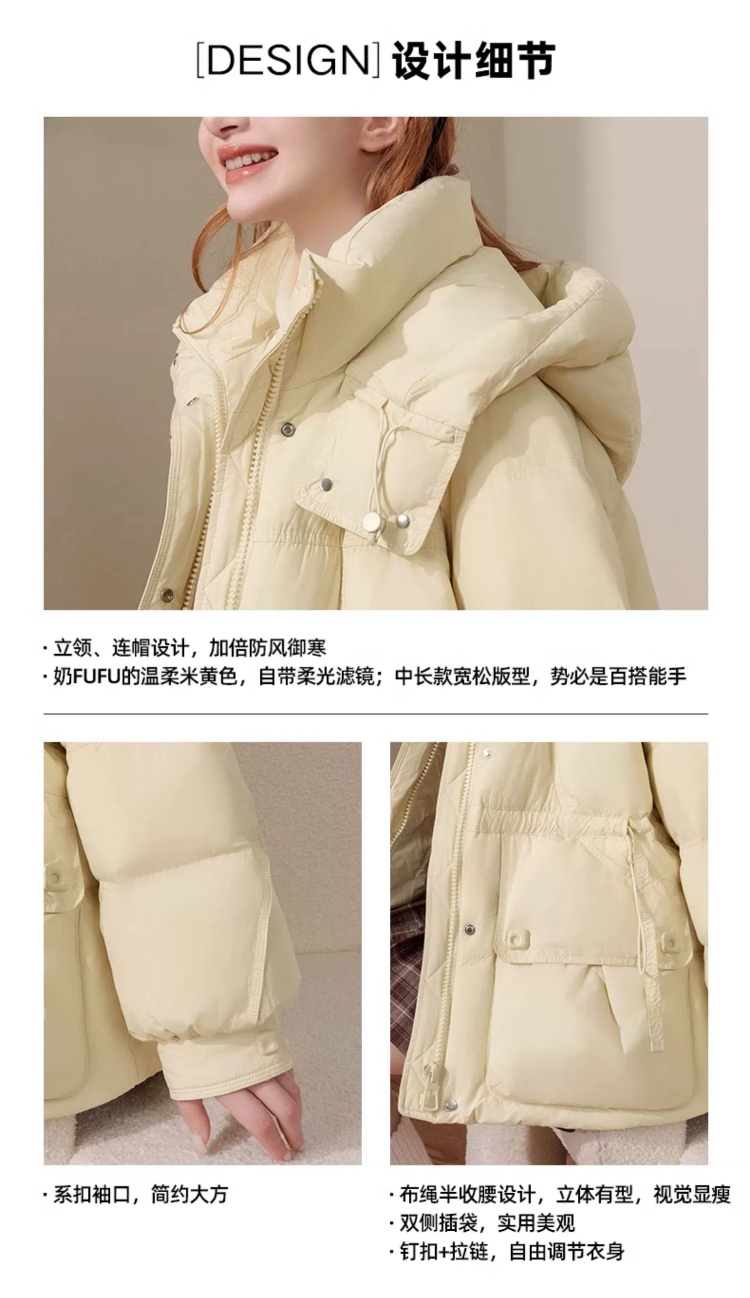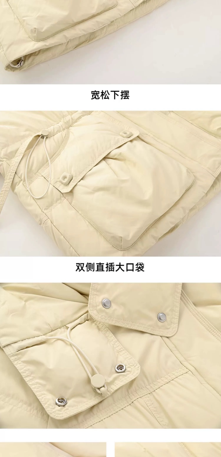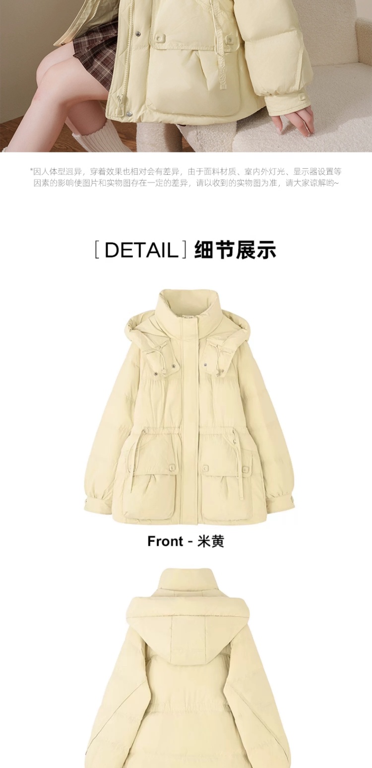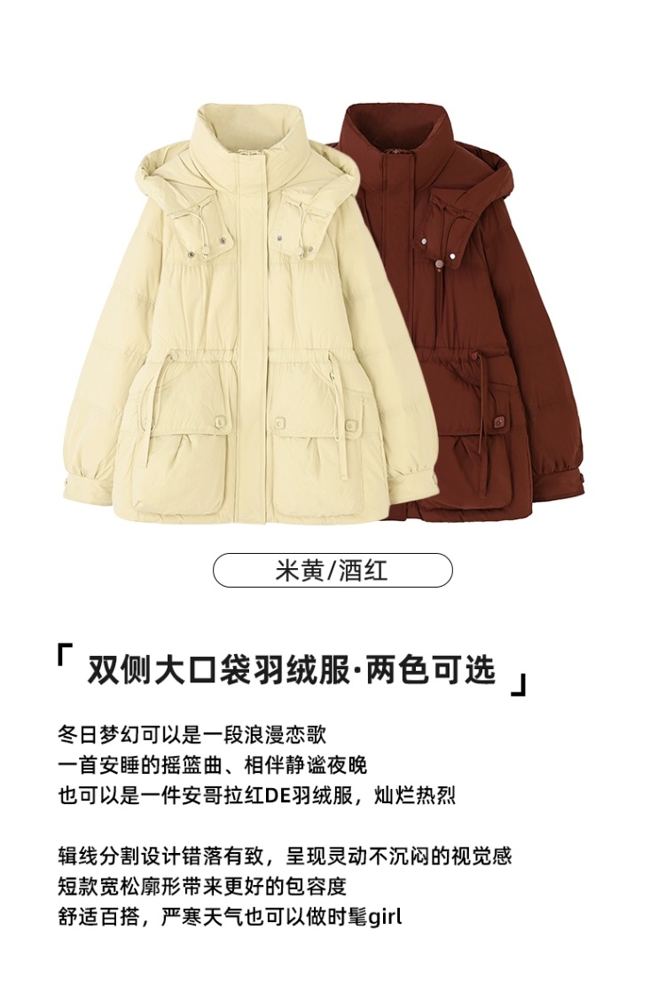 连帽布绳半收腰插袋款羽绒服女装2024冬季新款显瘦休闲百搭