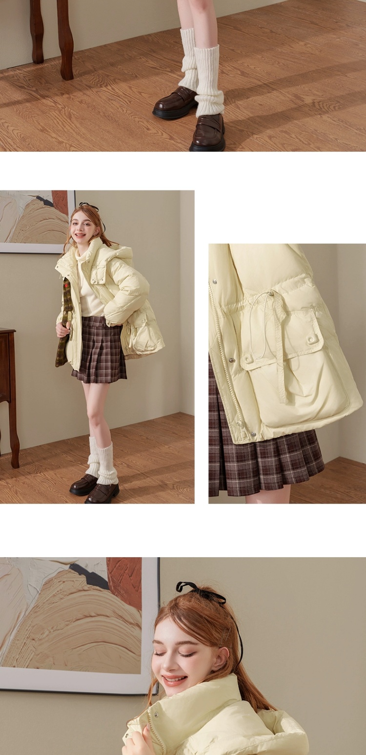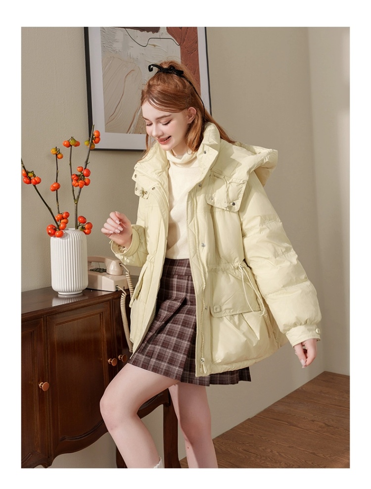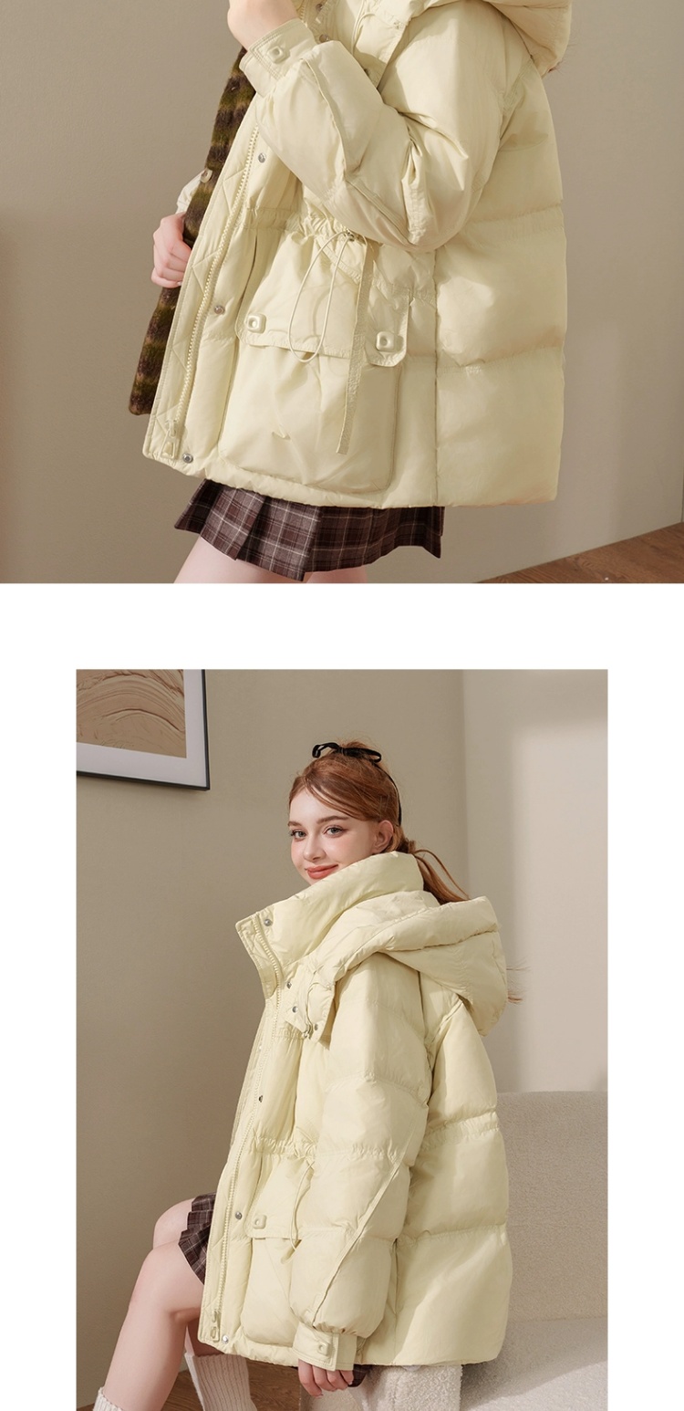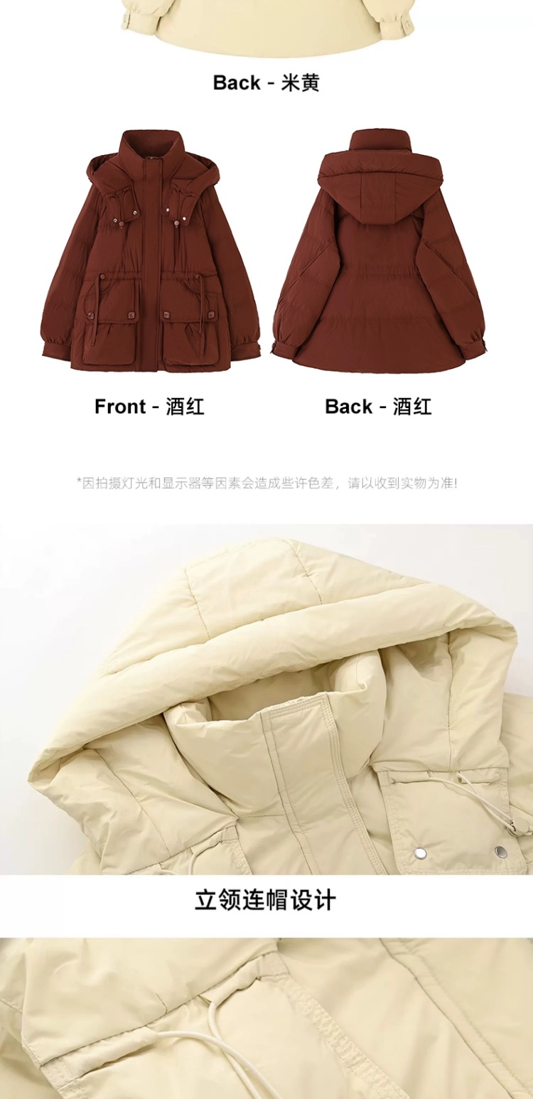 连帽布绳半收腰插袋款羽绒服女装2024冬季新款显瘦休闲百搭