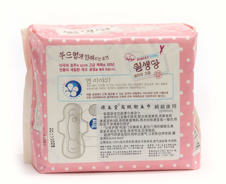 源生堂纯棉夜用高级卫生巾295mm16片装