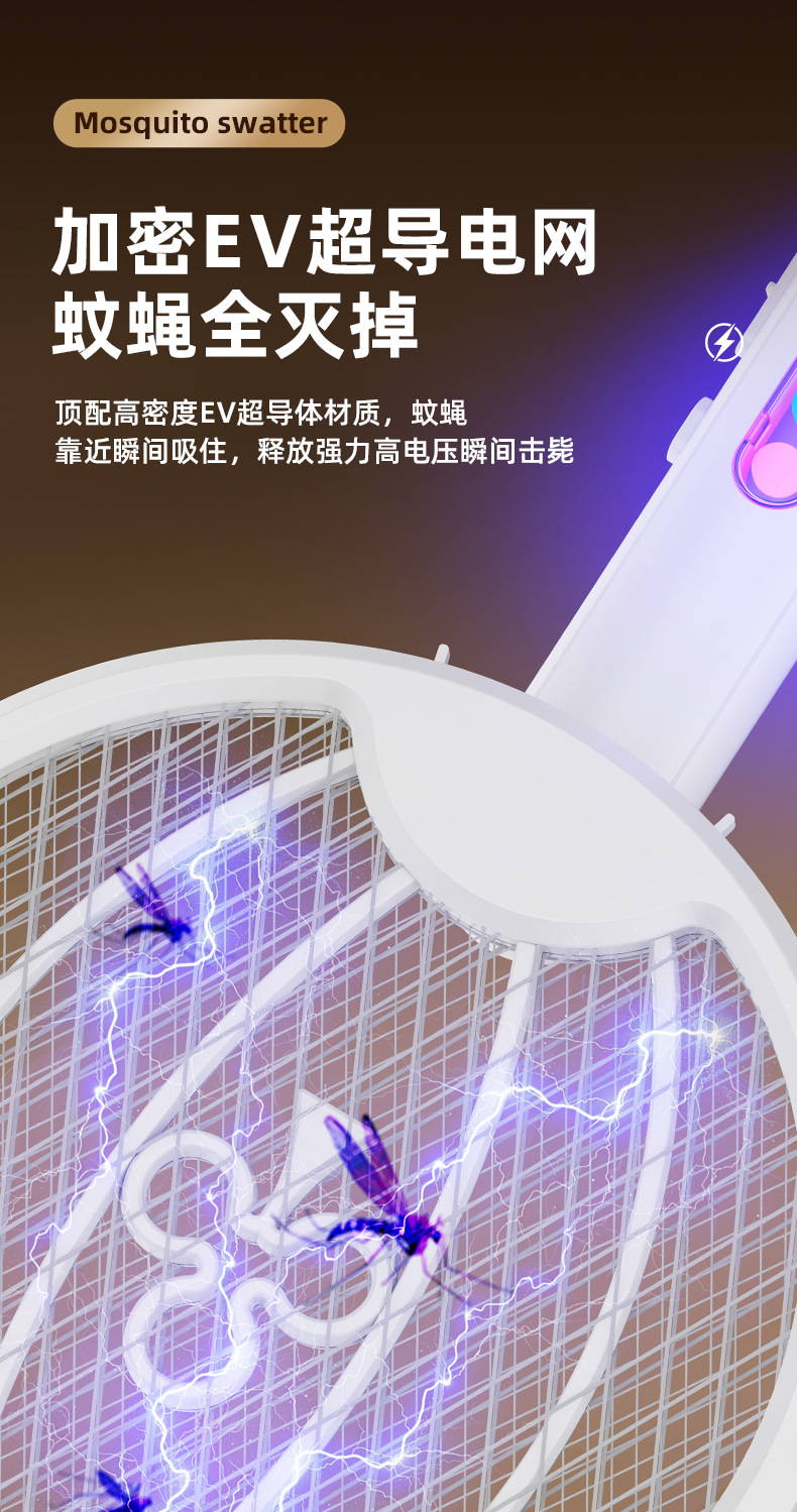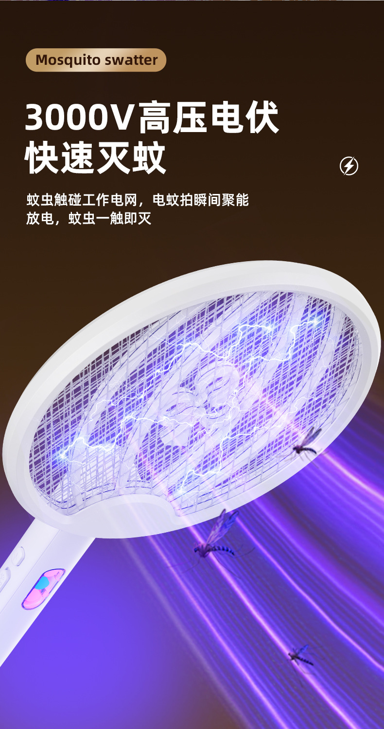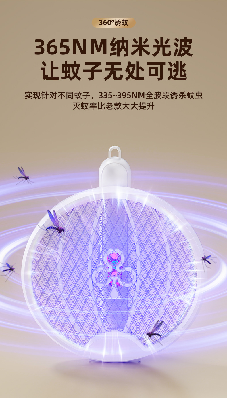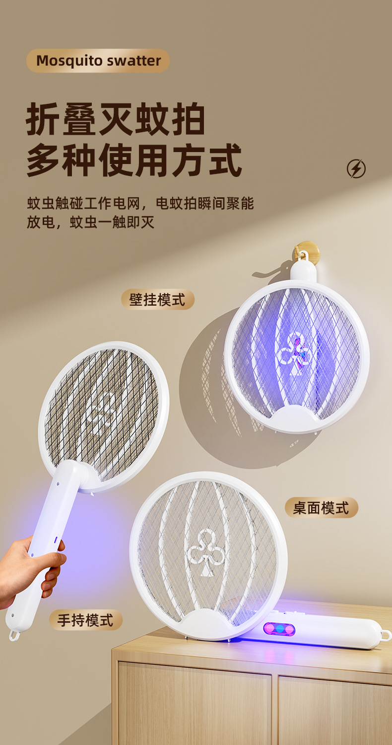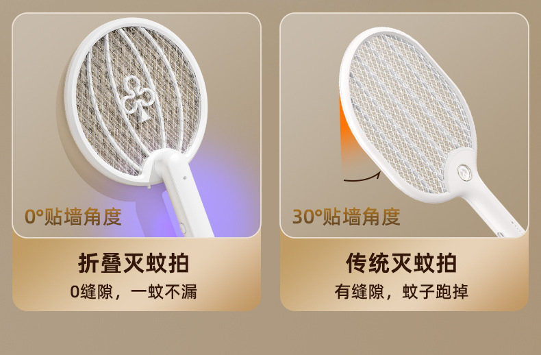 【三用形态❗️灵活适配】紫光诱蚊折叠电蚊拍无毒无辐射三层防触电可折叠两用灭蚊。rh
