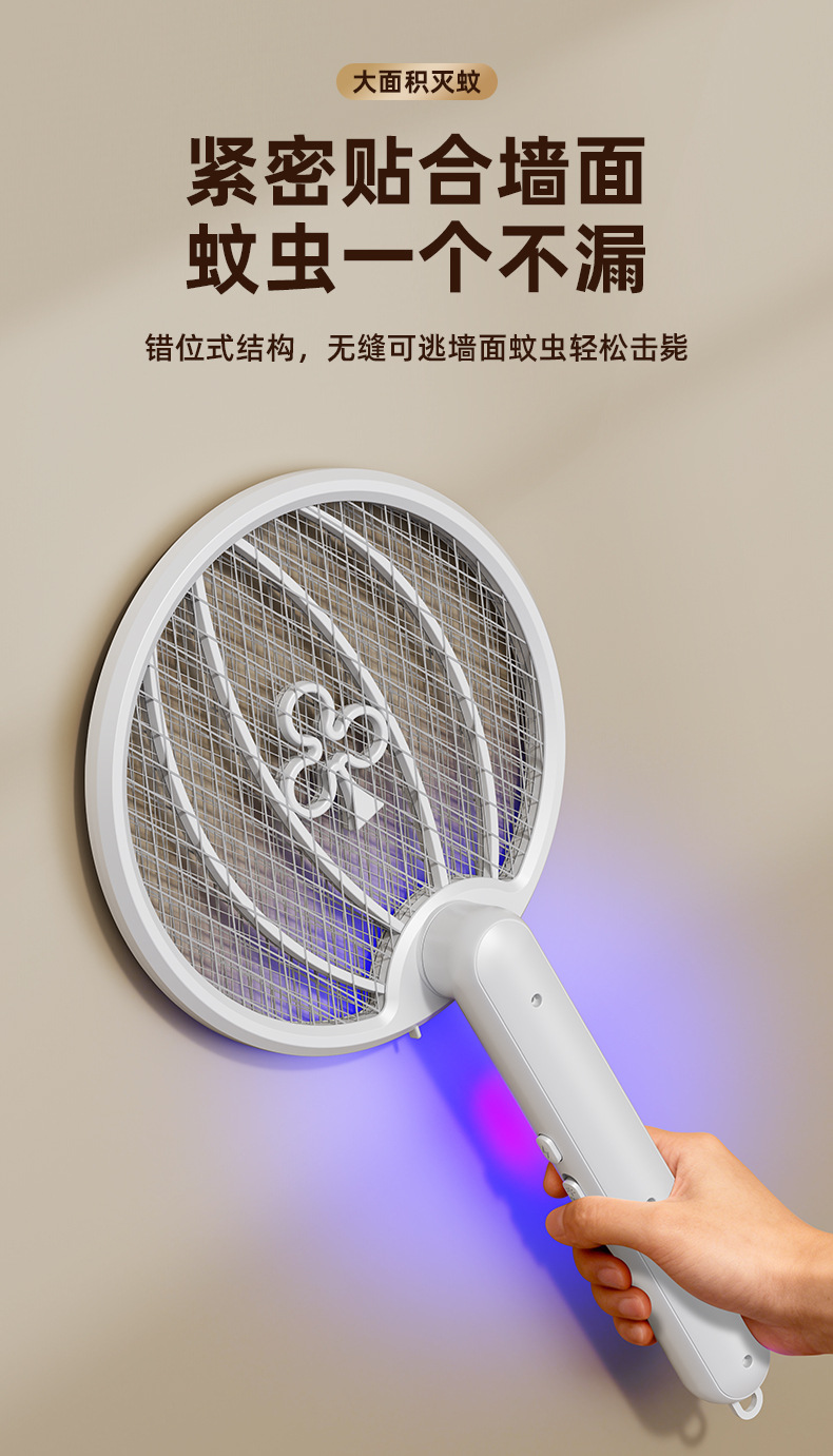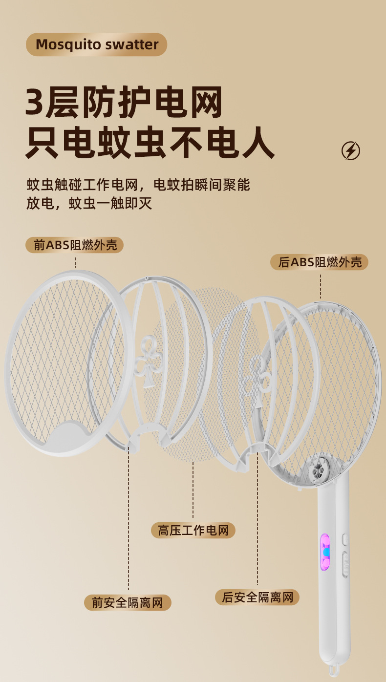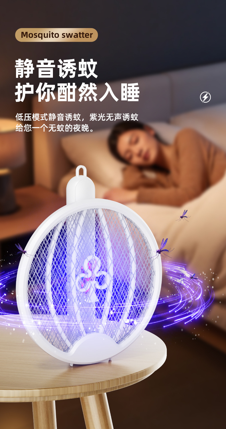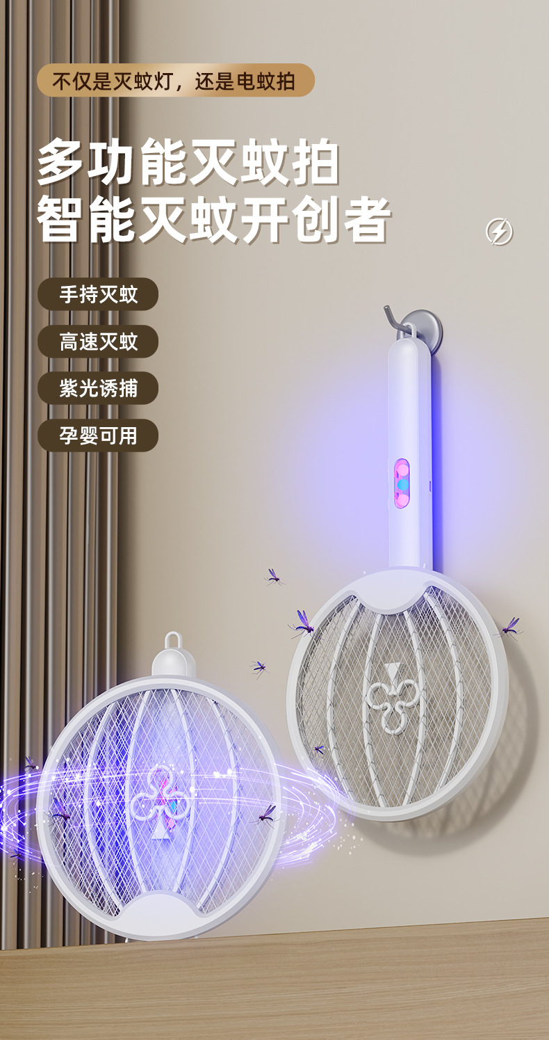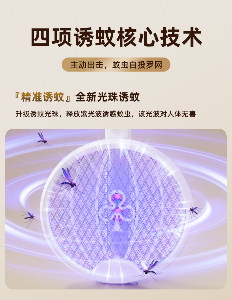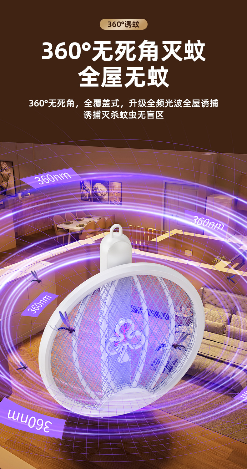 【三用形态❗️灵活适配】紫光诱蚊折叠电蚊拍无毒无辐射三层防触电可折叠两用灭蚊。rh