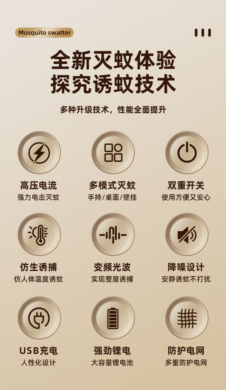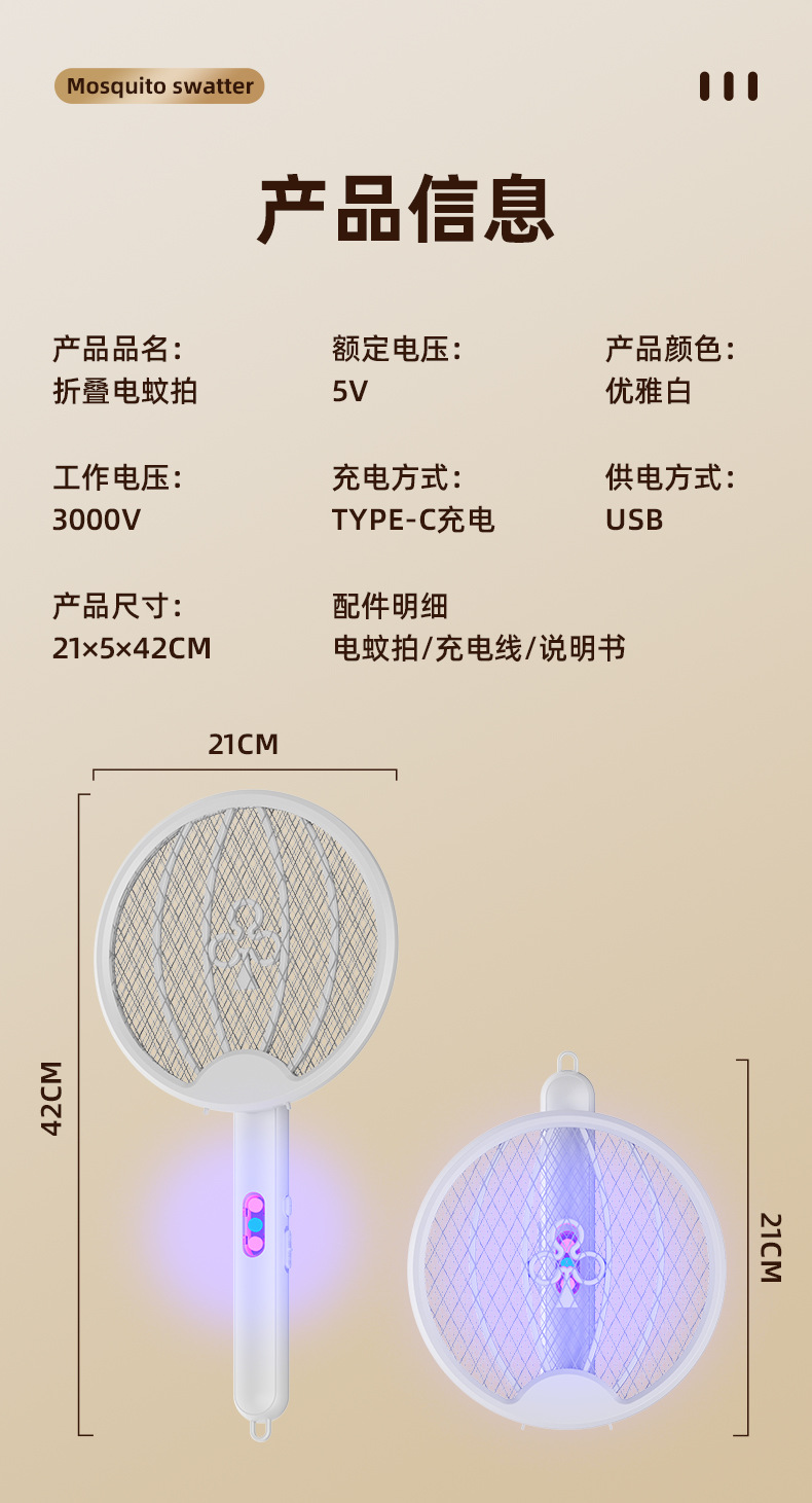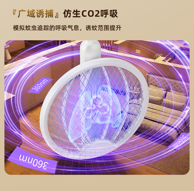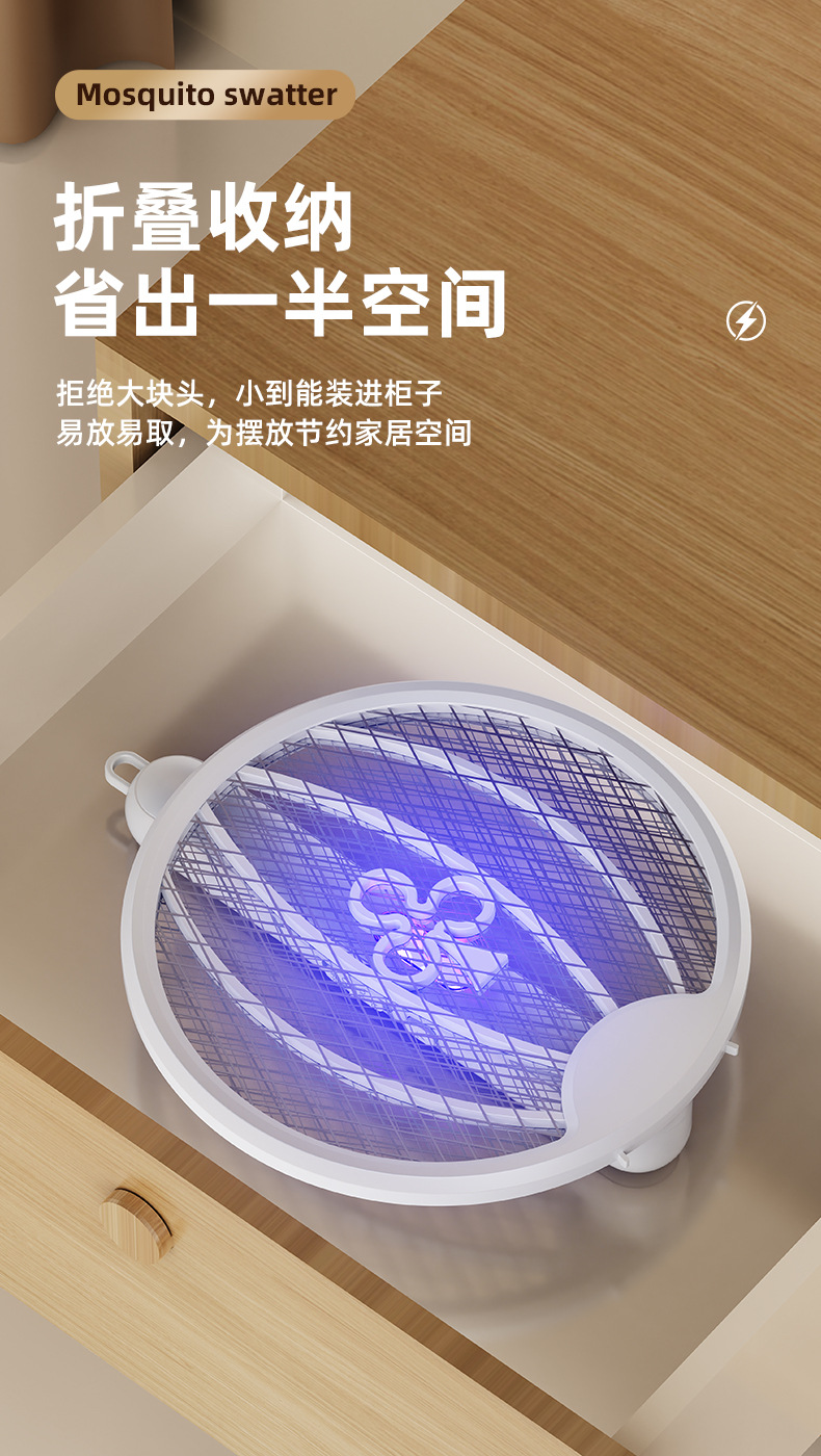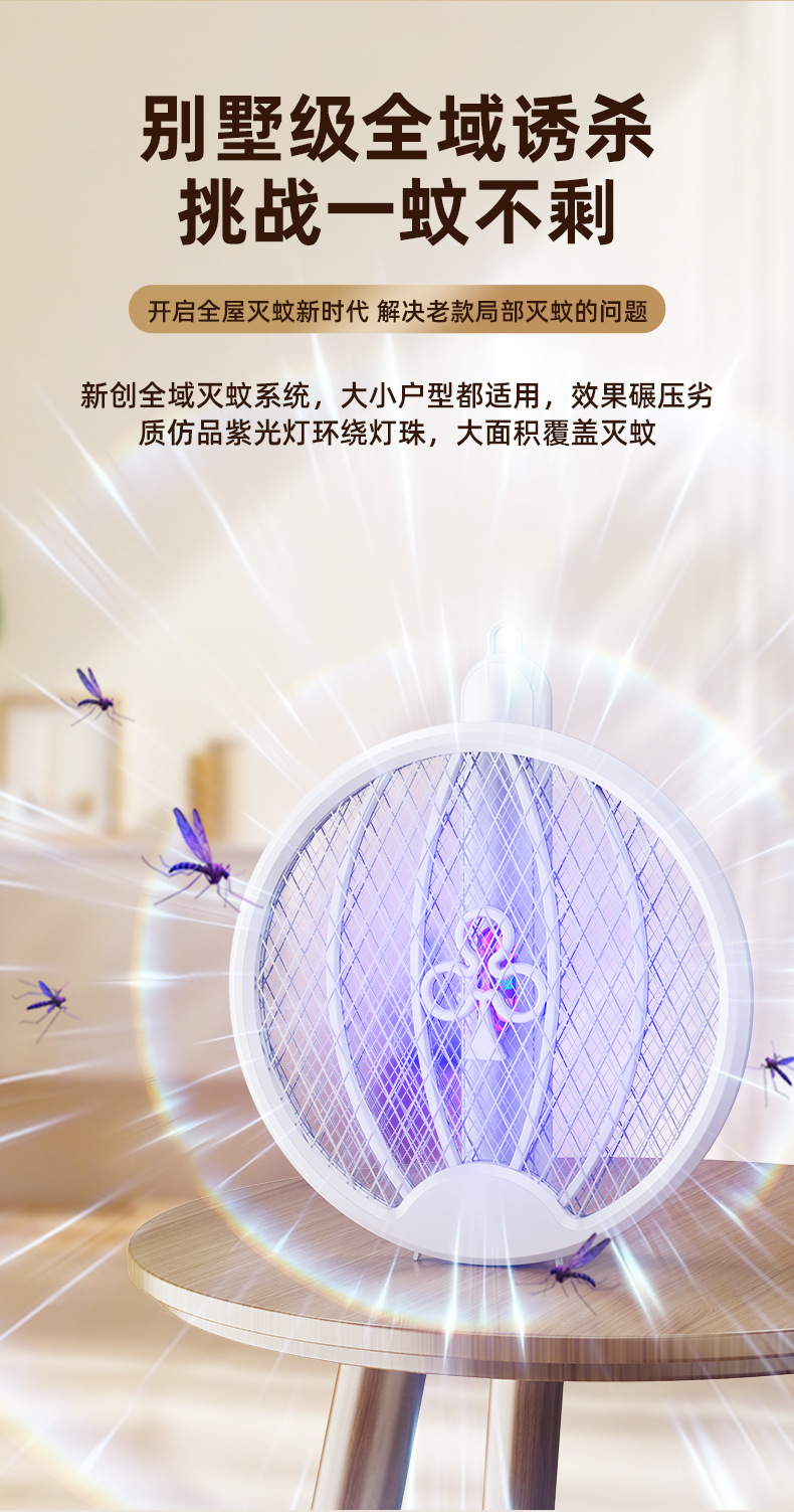 【三用形态❗️灵活适配】紫光诱蚊折叠电蚊拍无毒无辐射三层防触电可折叠两用灭蚊。rh