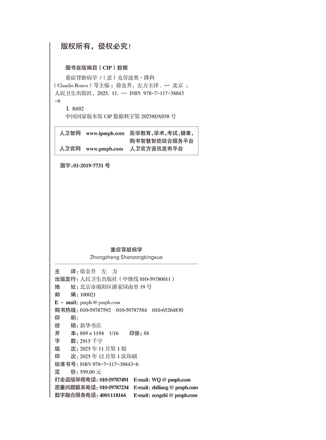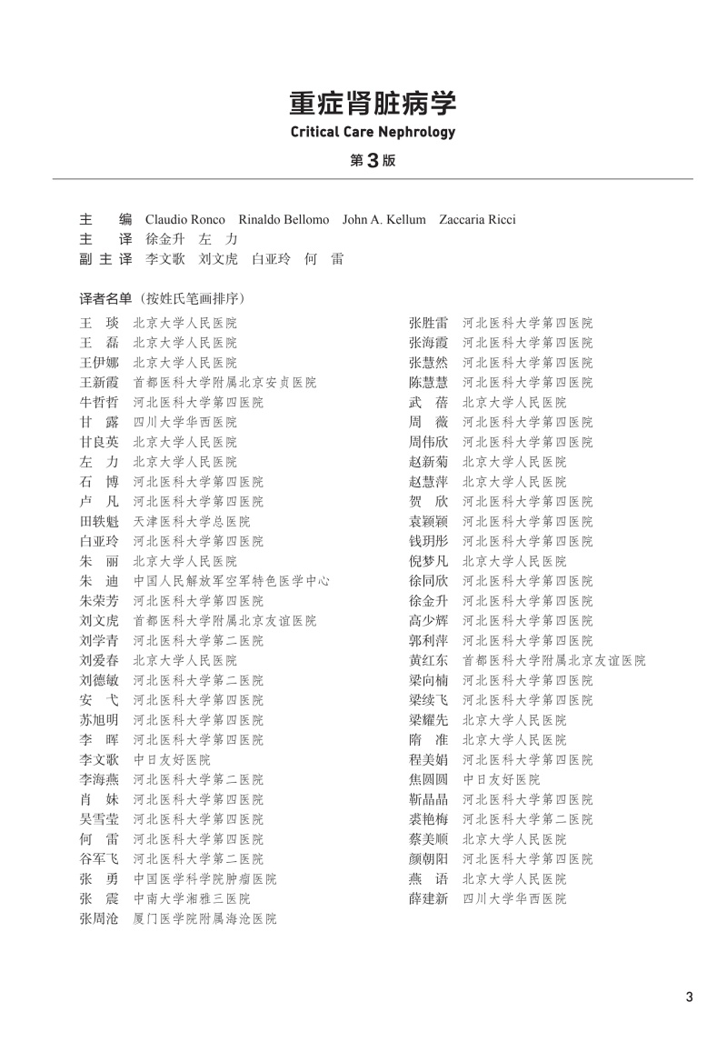 重症肾脏病学 第3版 徐金升 左力 主译 本书包括主要综合征的病理生理基础 与肾脏病相关的实验室基础知识等 人民卫生出版社