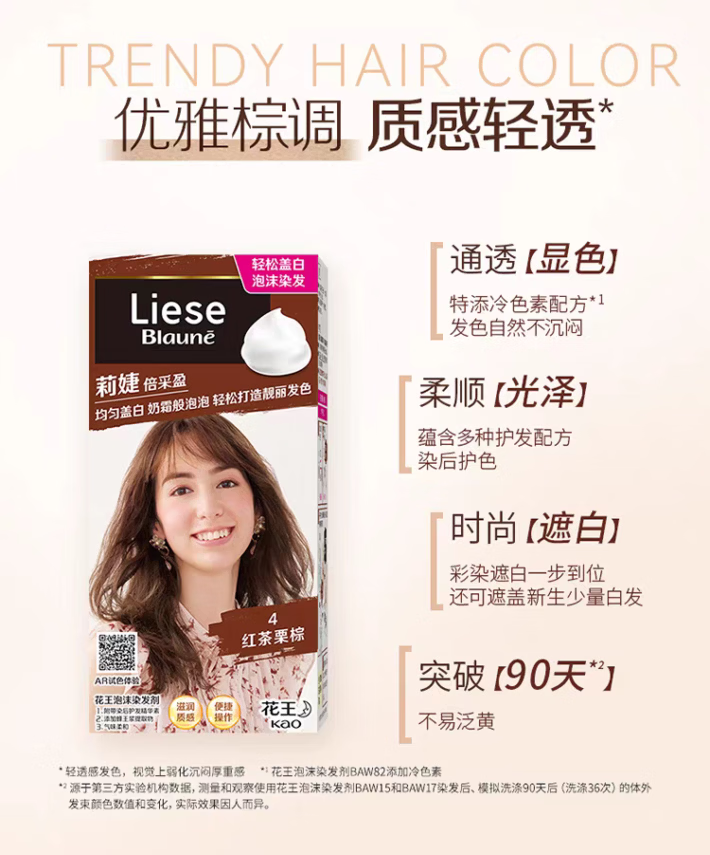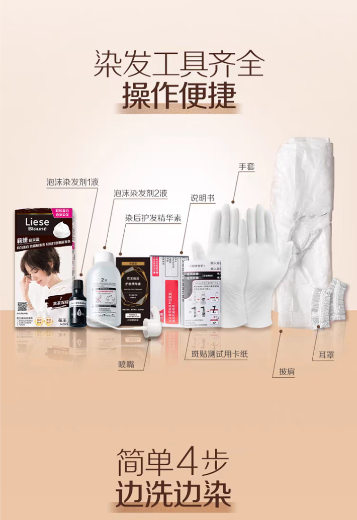 花王Liese莉婕泡泡染发剂泡沫染发膏遮白发盖白染发-奶茶粉棕 108ml