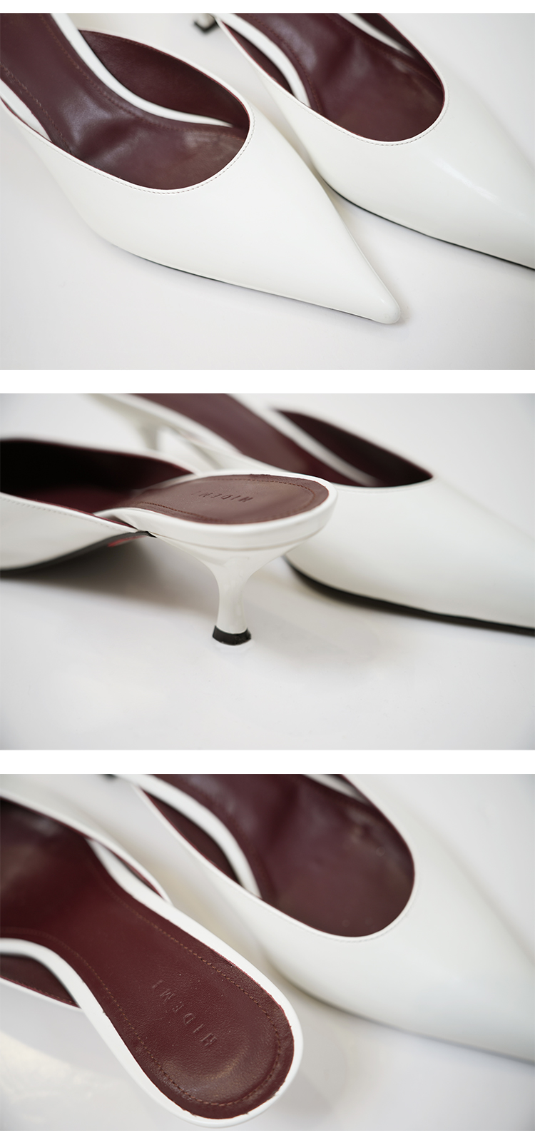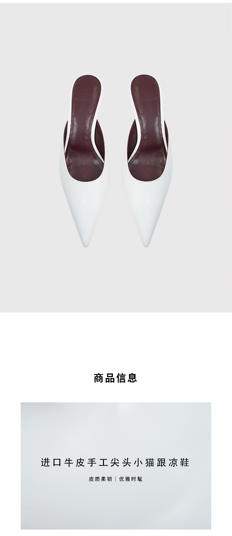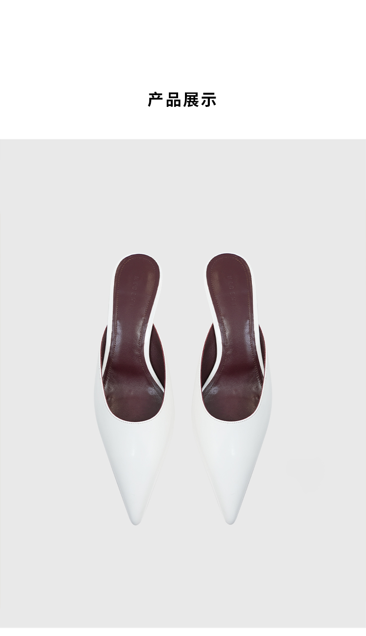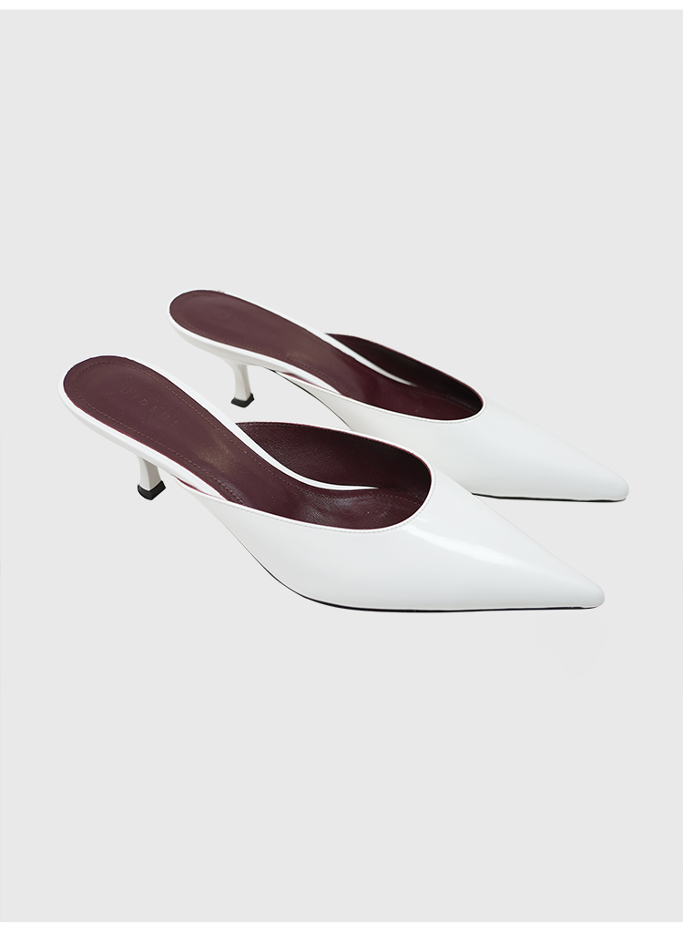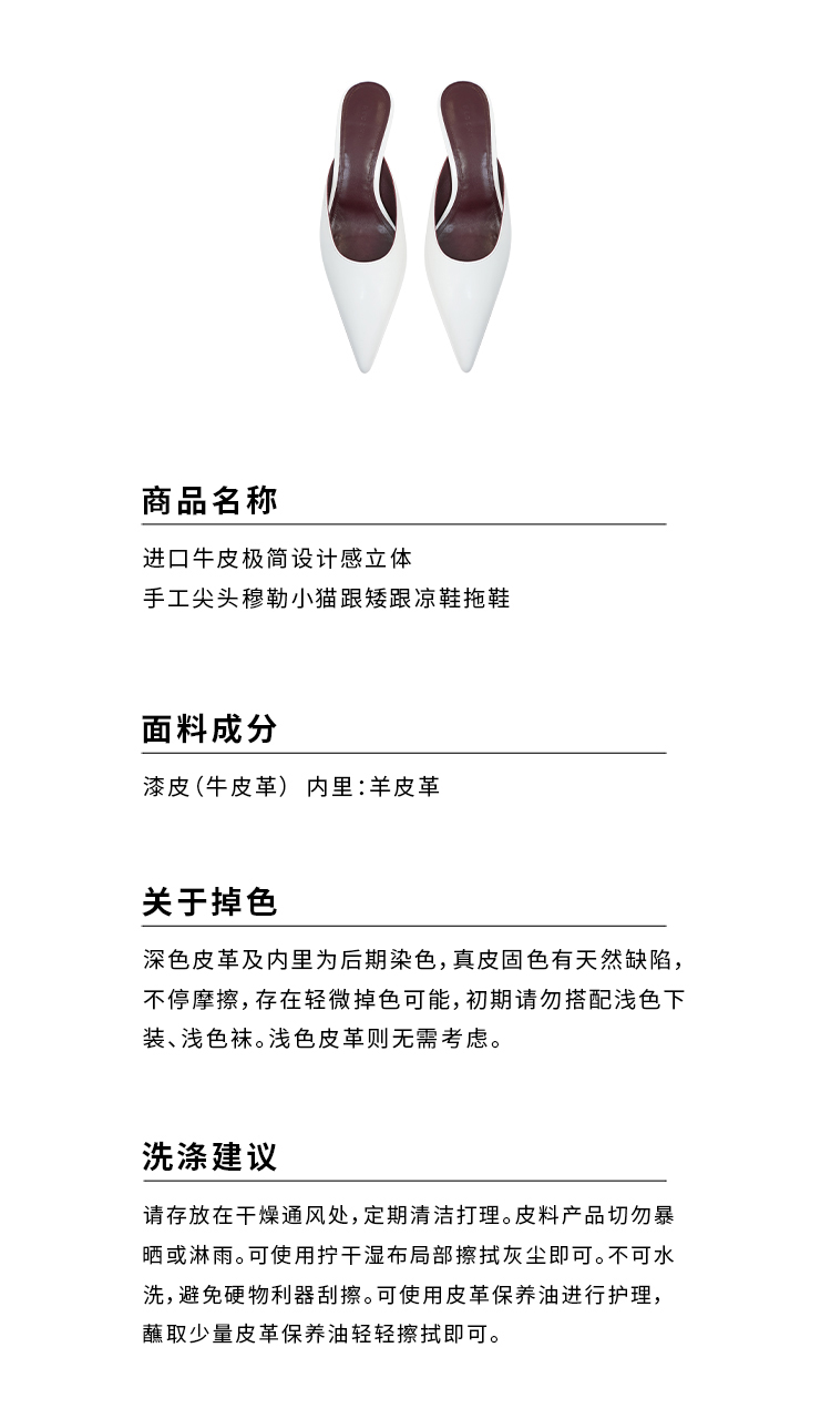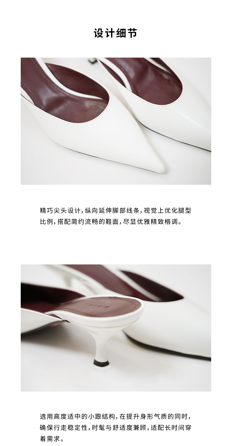 HIDEMI进口牛皮极简设计感立体手工尖头穆勒小猫跟矮跟凉鞋拖鞋