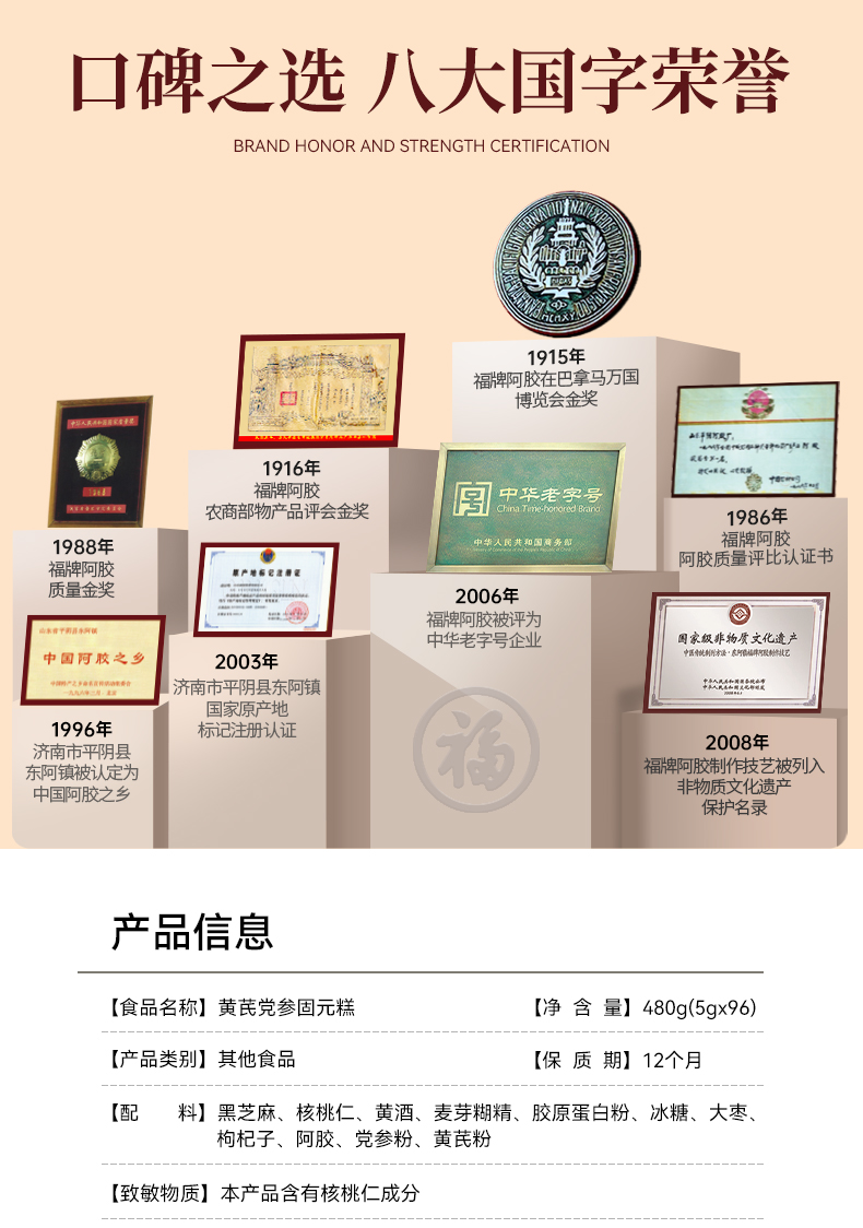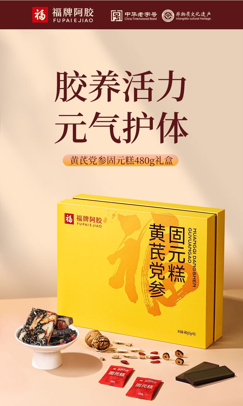 ⁵礼盒装【黄芪党参固元糕】一大盒96片 阿胶党参黄芪枸杞大枣等 480g一盒 ,手提袋*1 -H003 YY05-QTT-YTHP