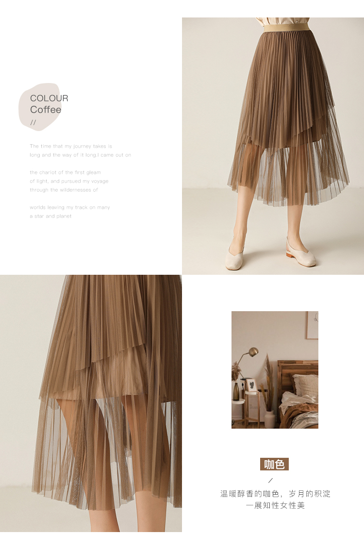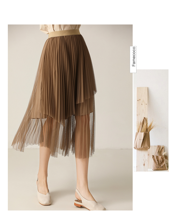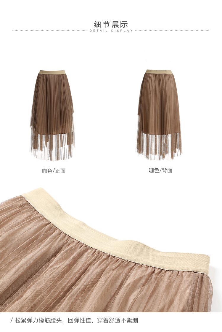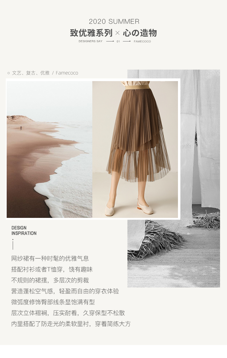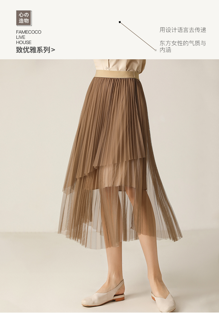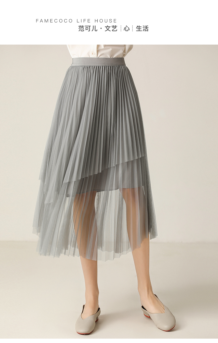 famecoco范可儿半身裙百搭高腰a字不规则网纱女F203HA015