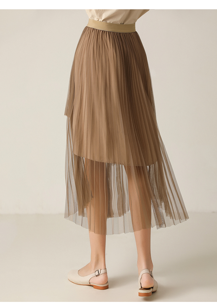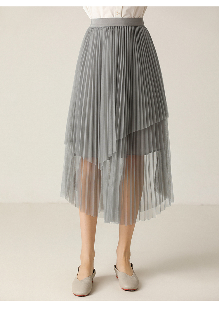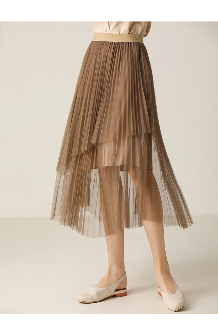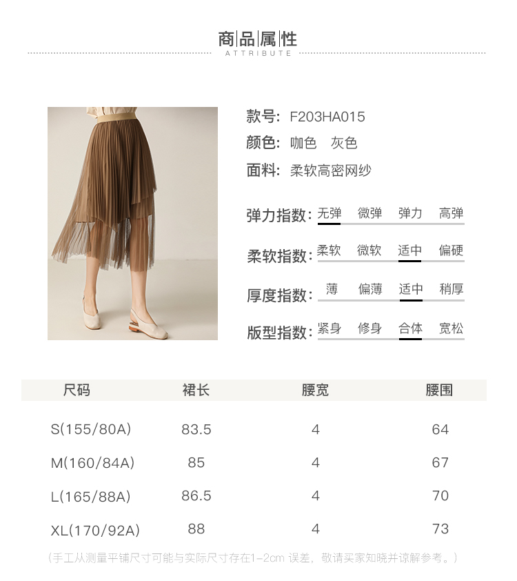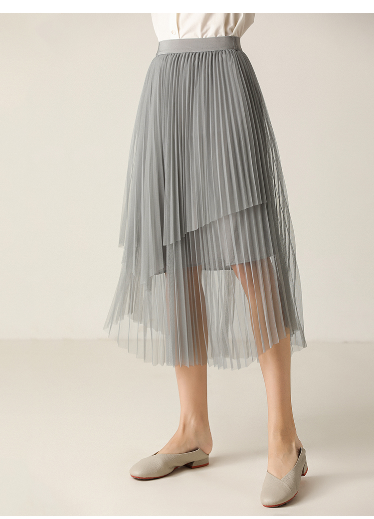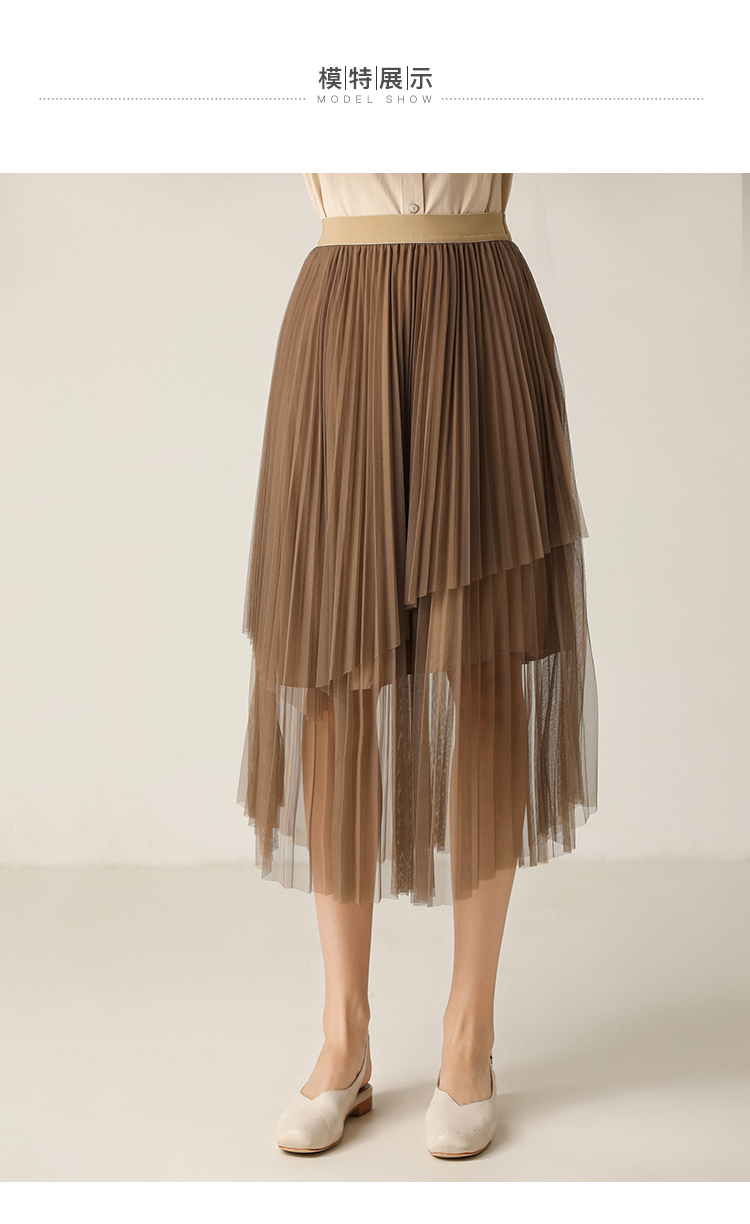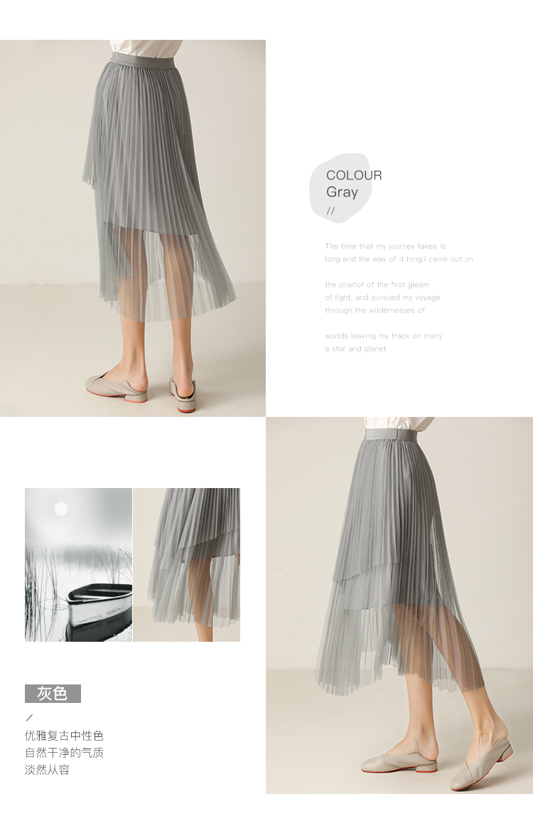 famecoco范可儿半身裙百搭高腰a字不规则网纱女F203HA015