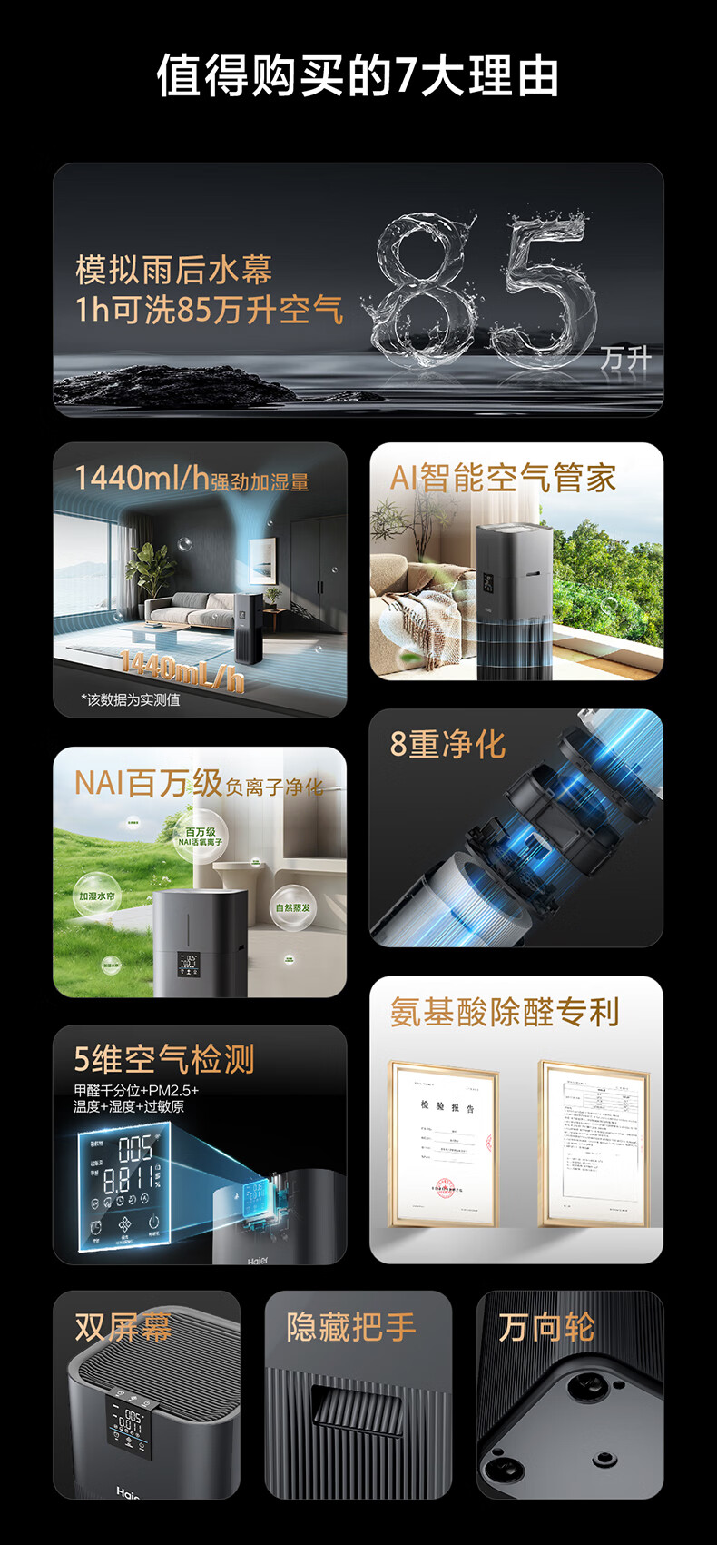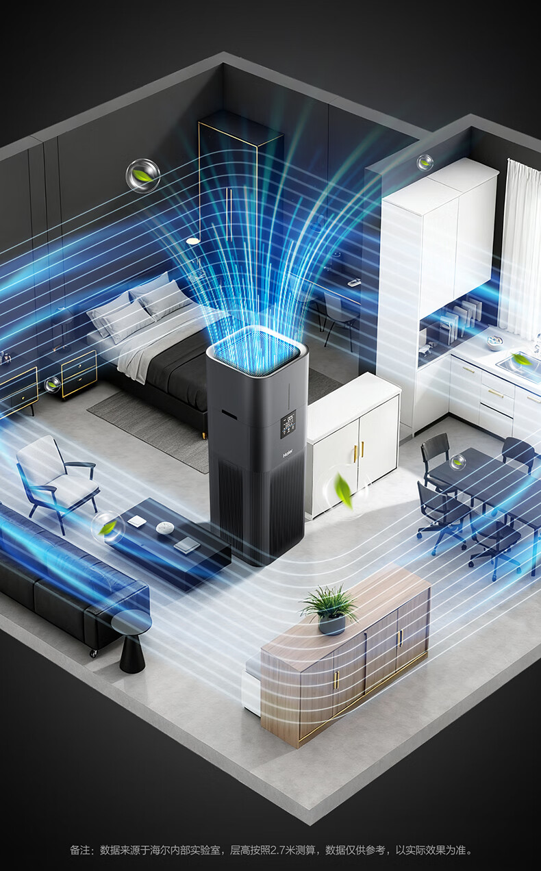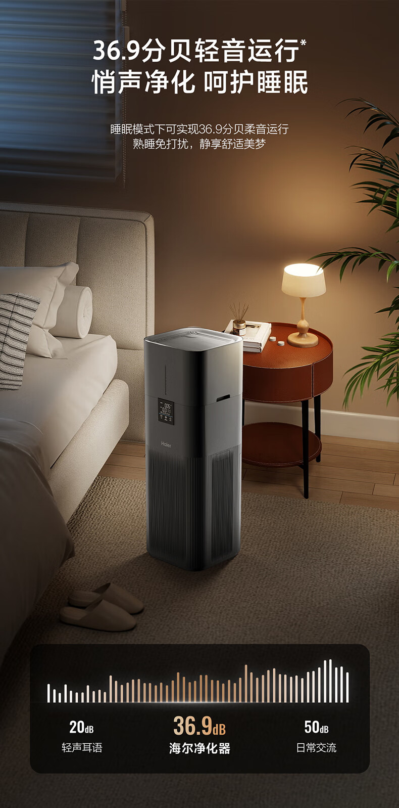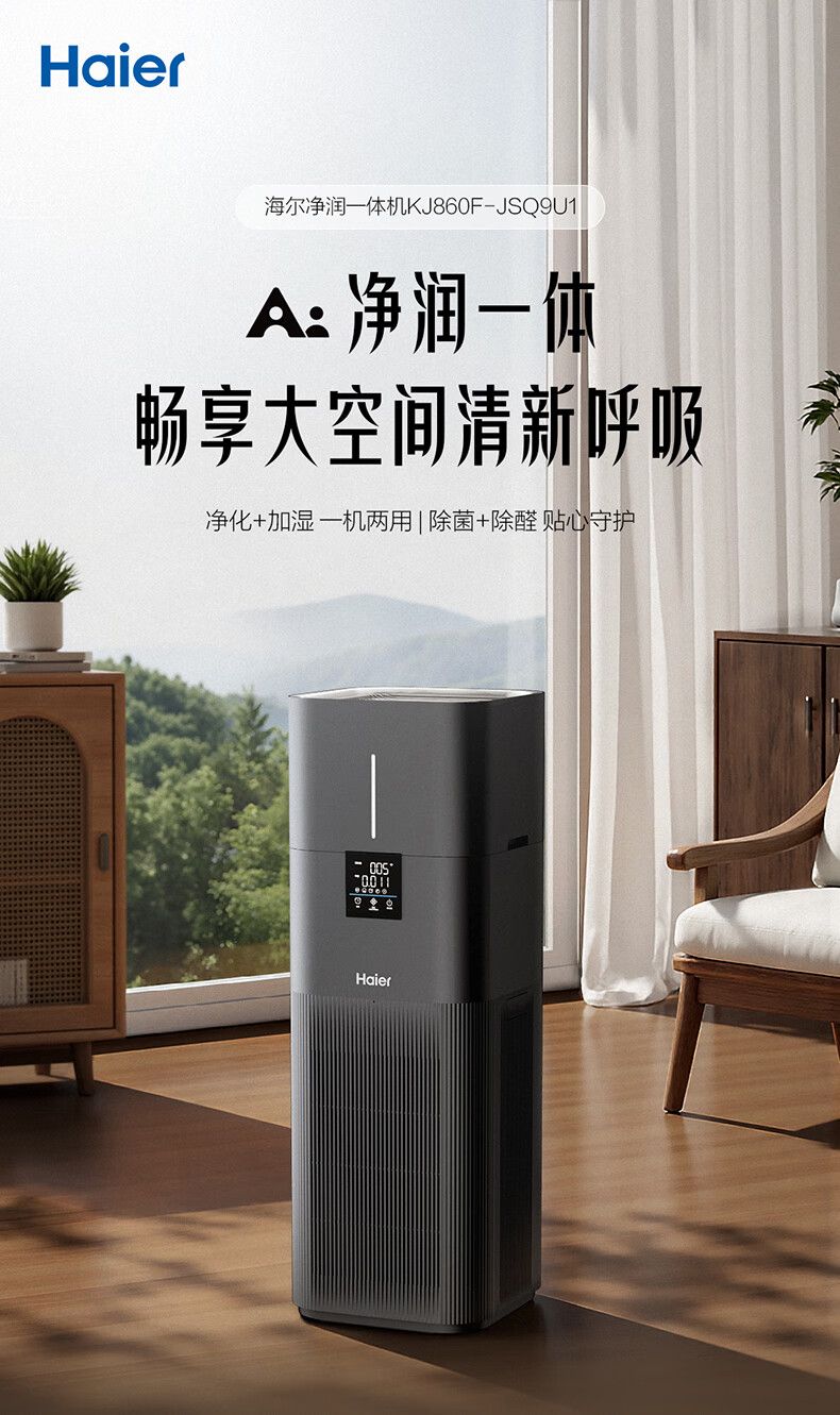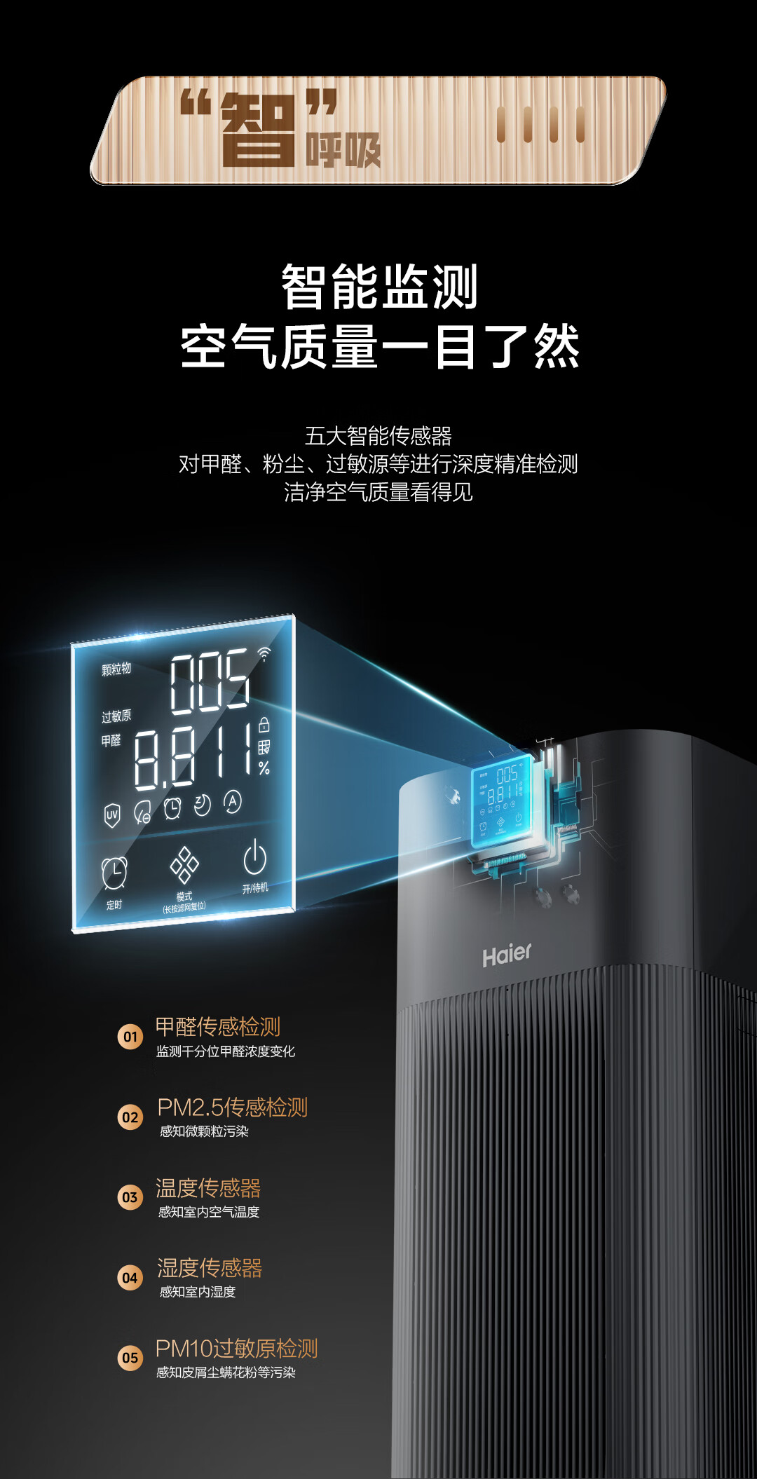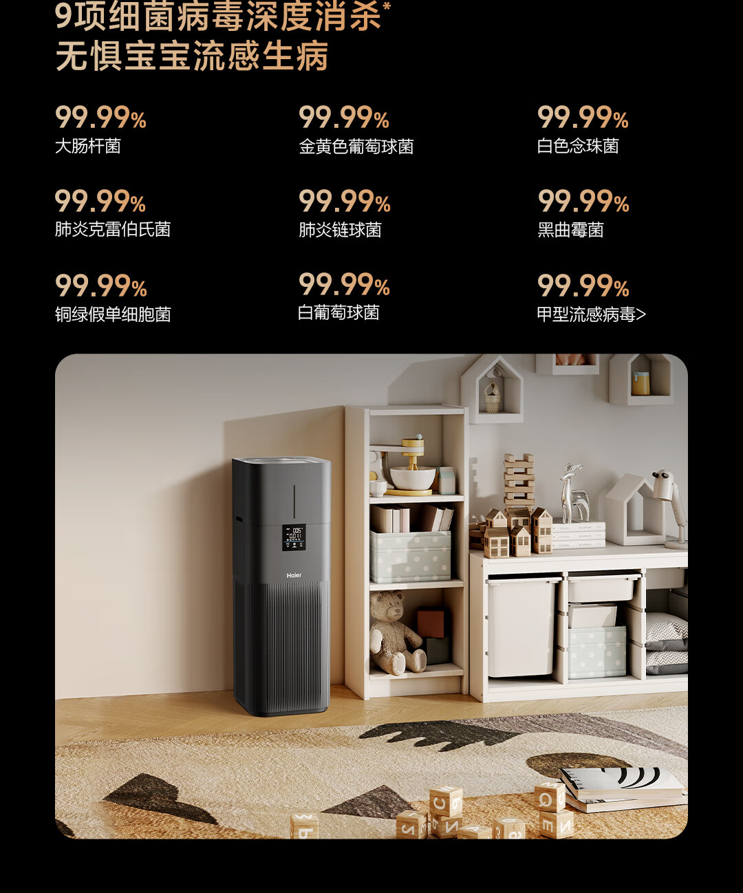 【新品机皇】海尔空气净化器加湿一体机除甲醛除烟味除异味除过敏原杀菌消毒家用KJ860F-JSQ9U1极夜灰加湿 宠物毛发除过敏原细菌病毒 空气消毒机 甲醛千分位显示