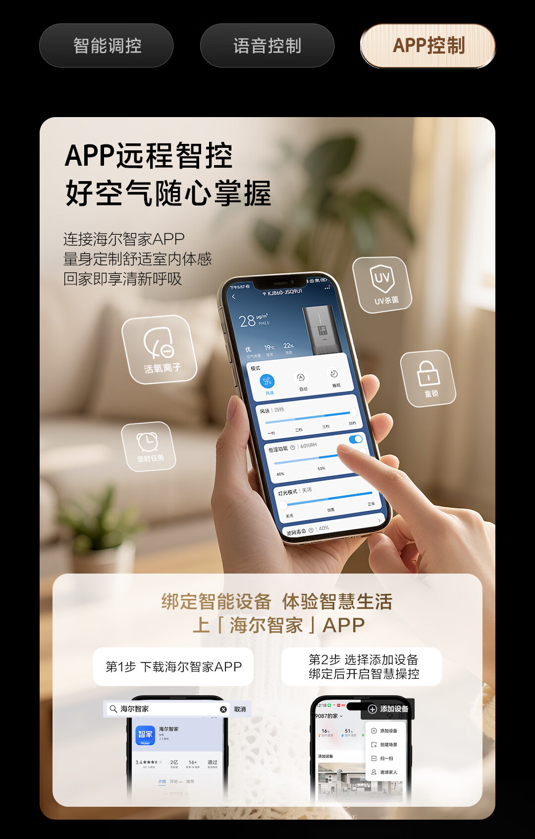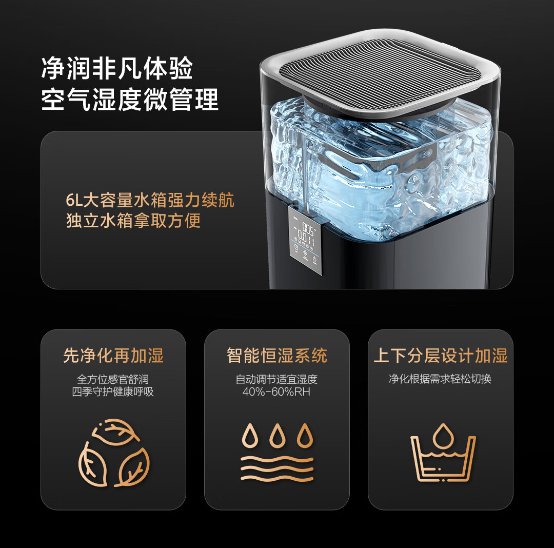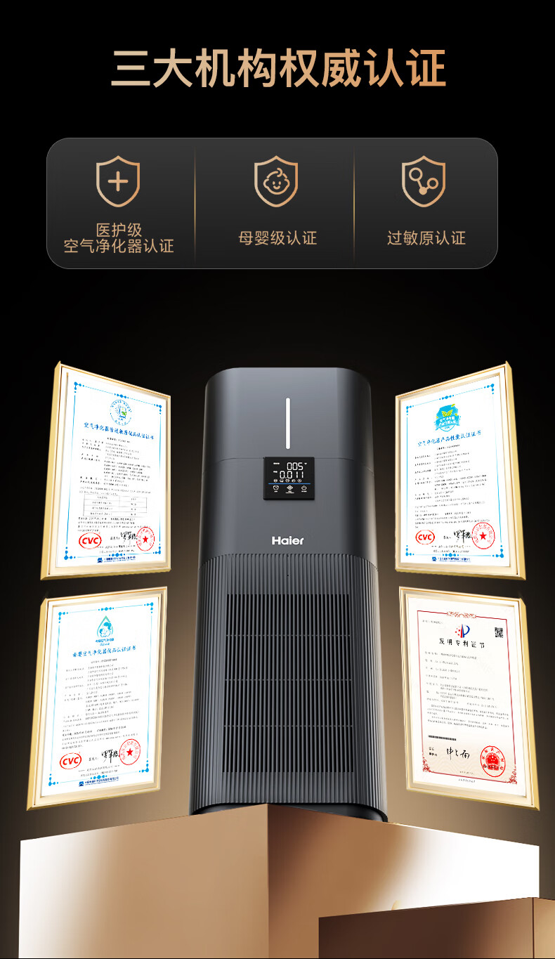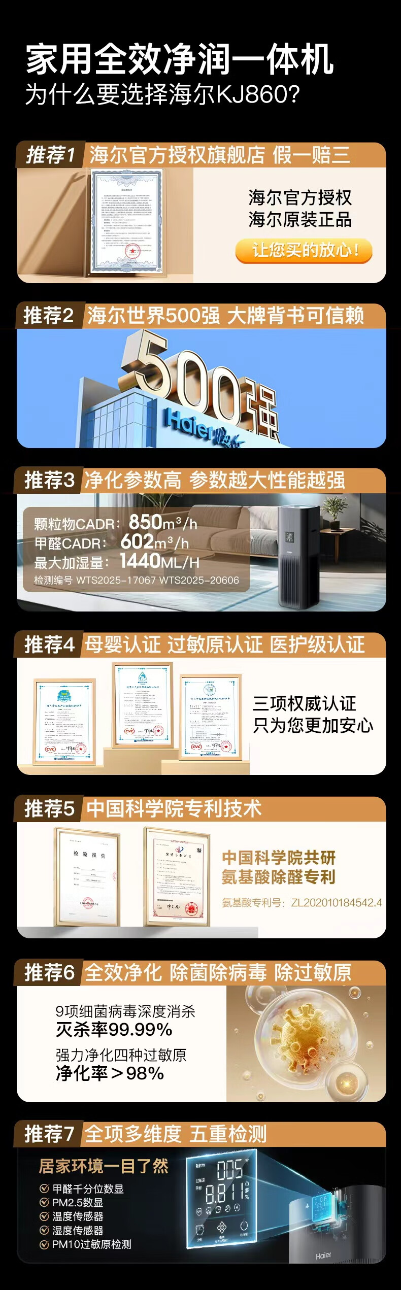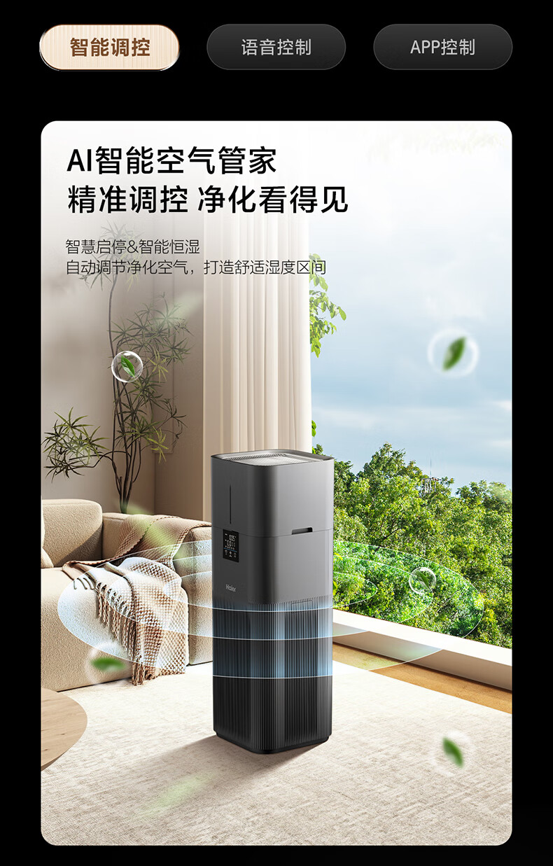 【新品机皇】海尔空气净化器加湿一体机除甲醛除烟味除异味除过敏原杀菌消毒家用KJ860F-JSQ9U1极夜灰加湿 宠物毛发除过敏原细菌病毒 空气消毒机 甲醛千分位显示