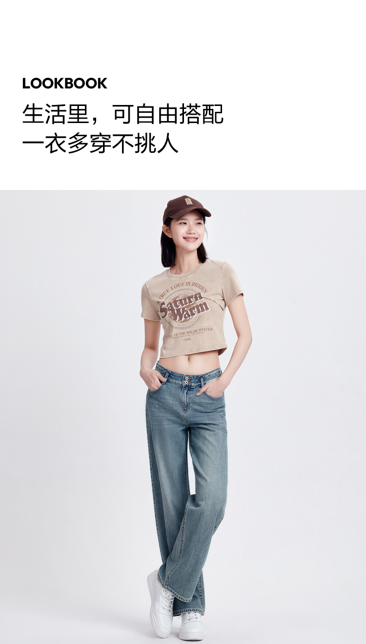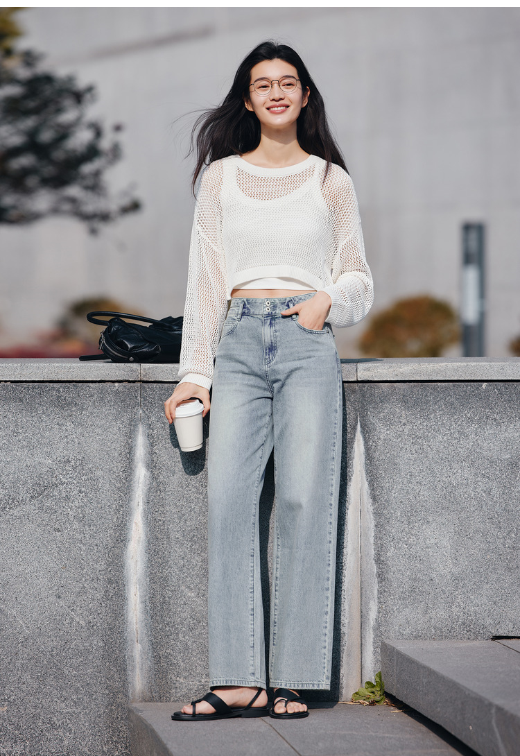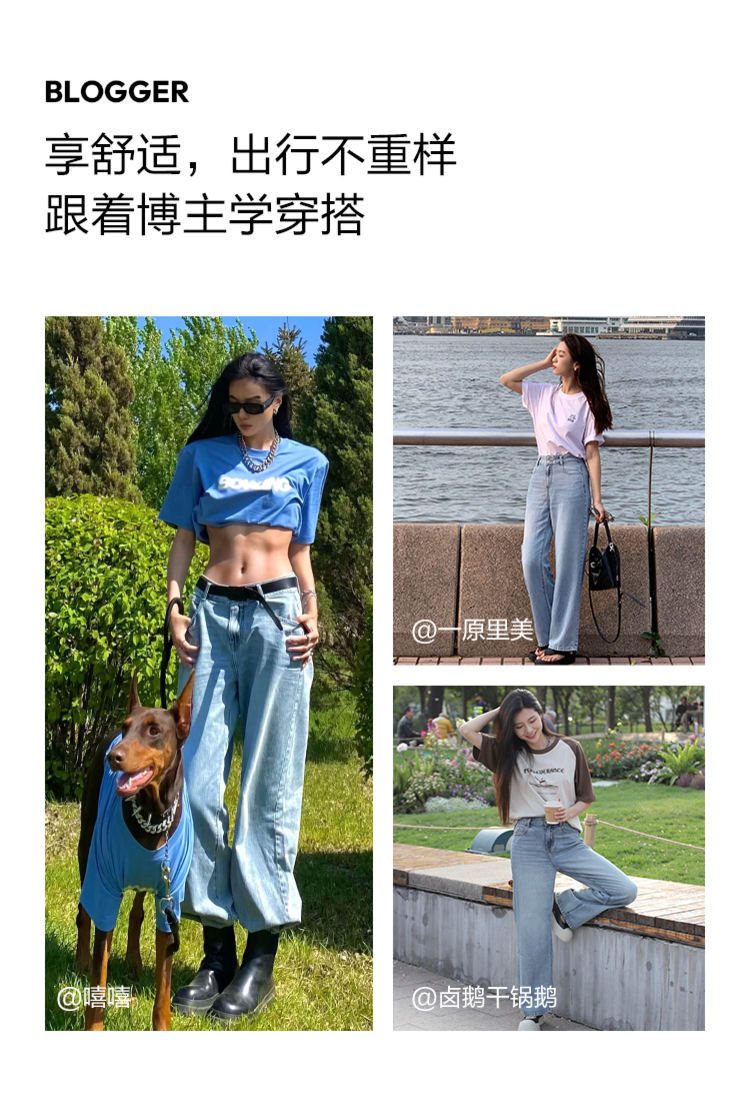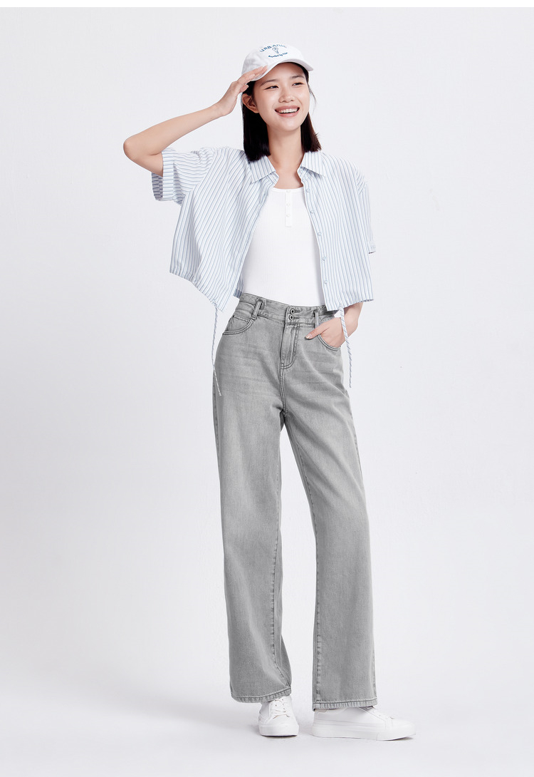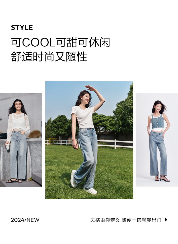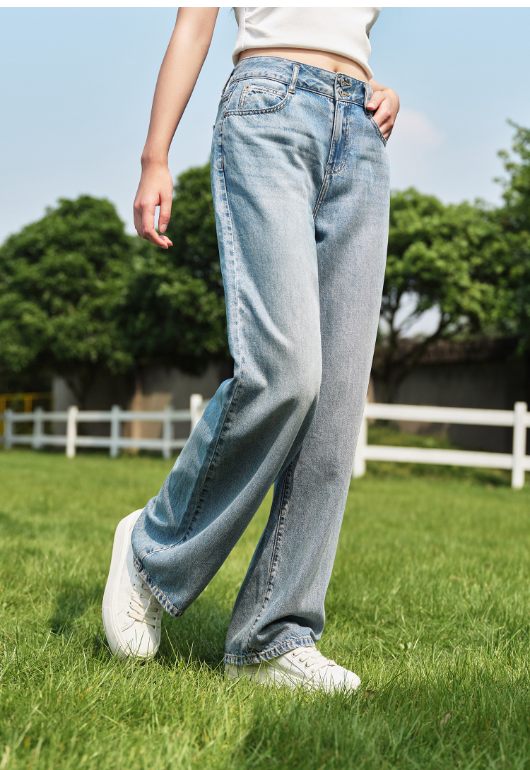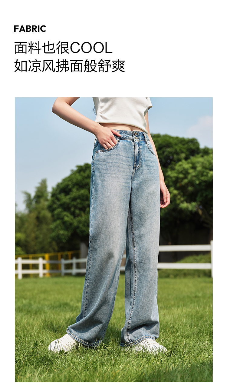 森柔牛仔|森马牛仔裤女凉感阔腿裤2024夏季新款高腰长裤