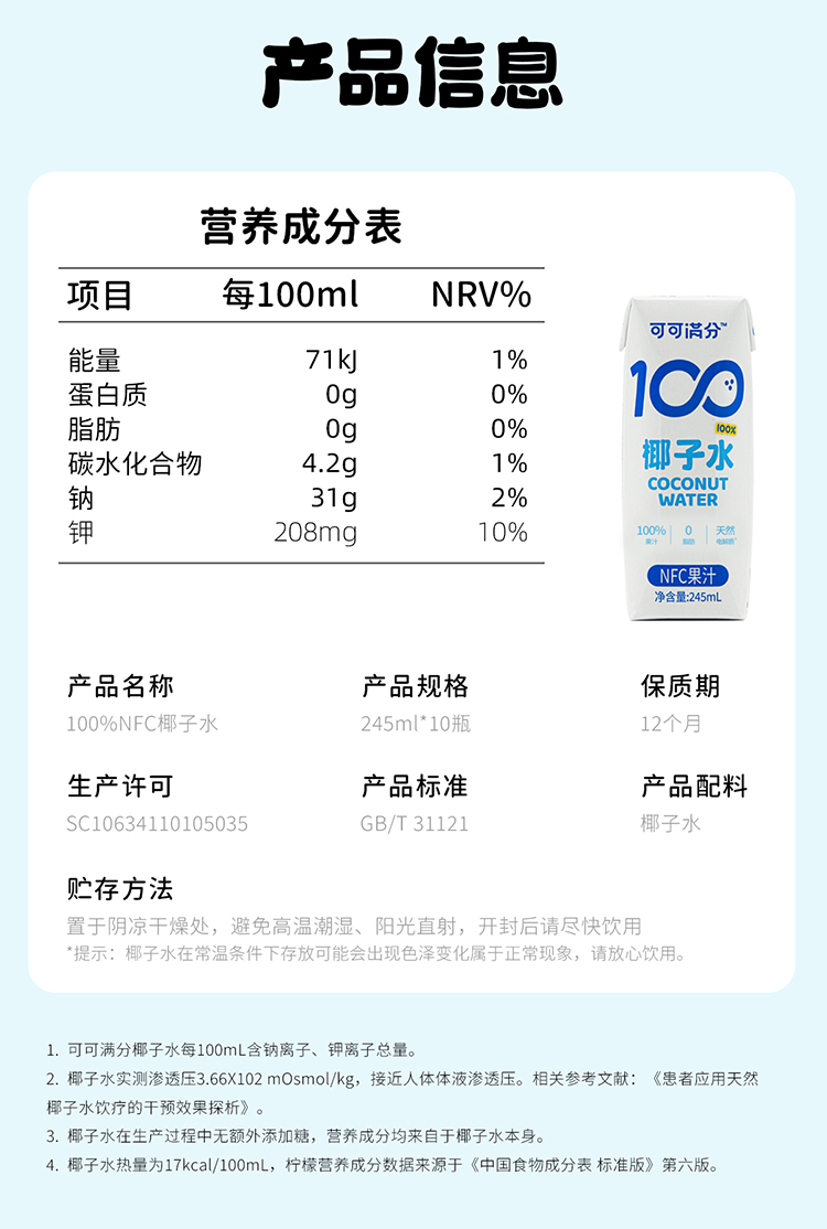 可可满分椰子水245ml*10盒