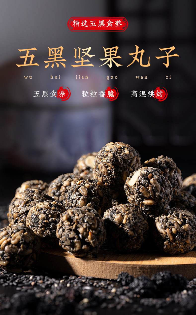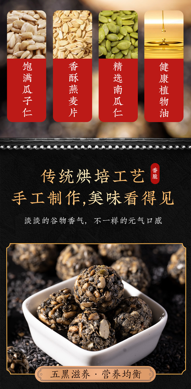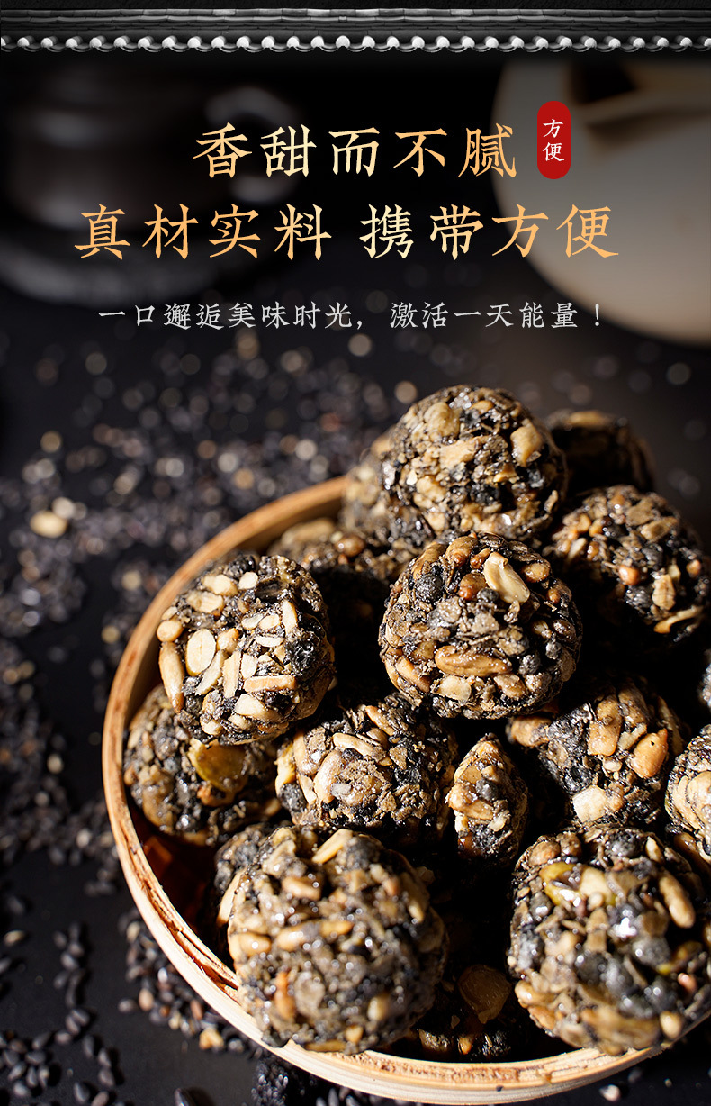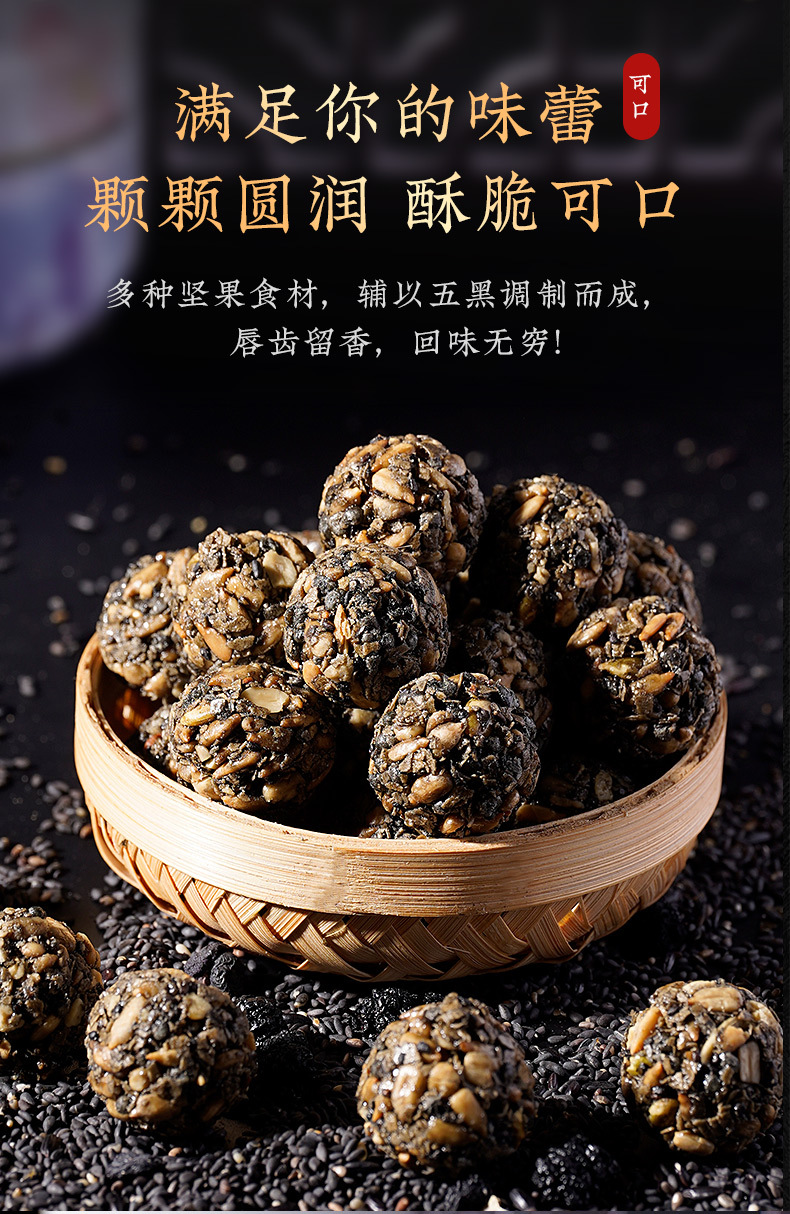 【五黑食养!五黑坚果丸子芝麻丸】酥脆可口唇齿留香,营养丰富健康美味,粒粒香脆颗颗圆润,桑葚枸杞米豆粗粮谷物营养代餐糕点健康
