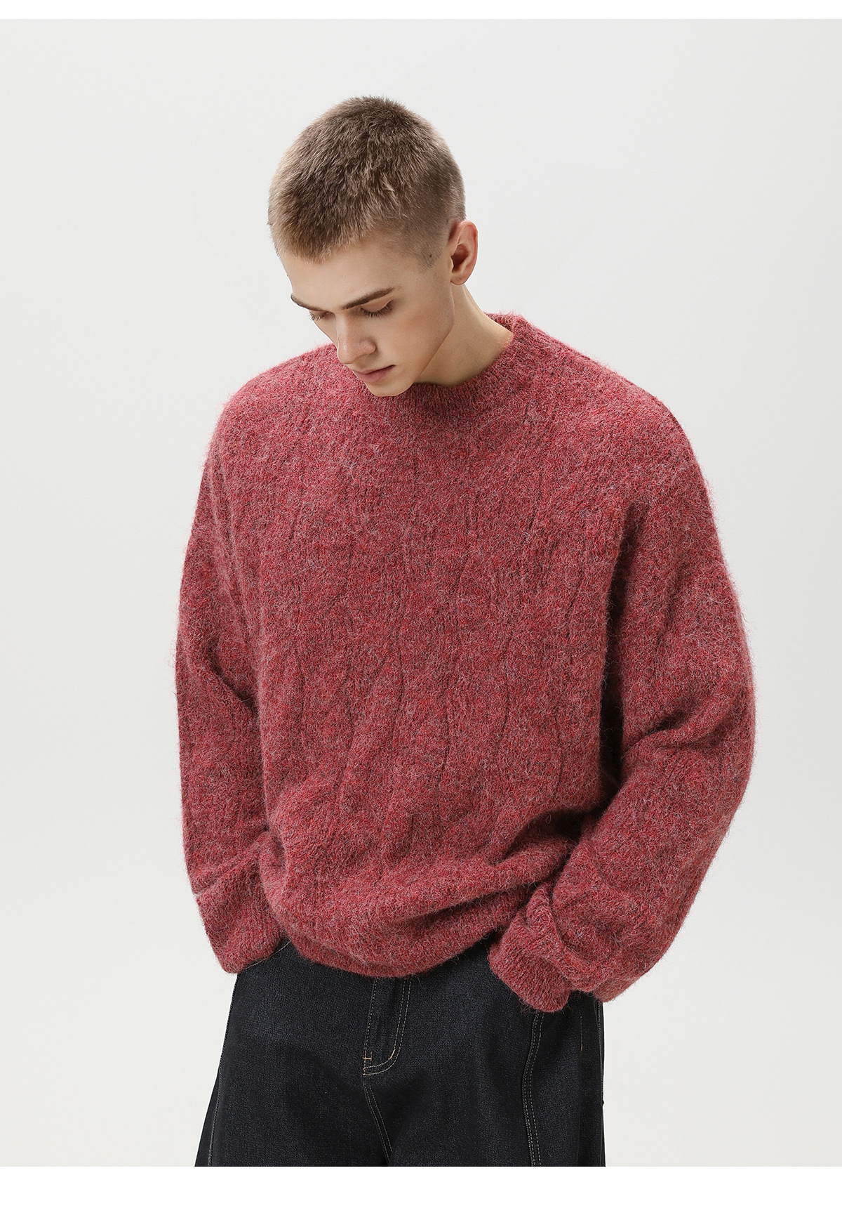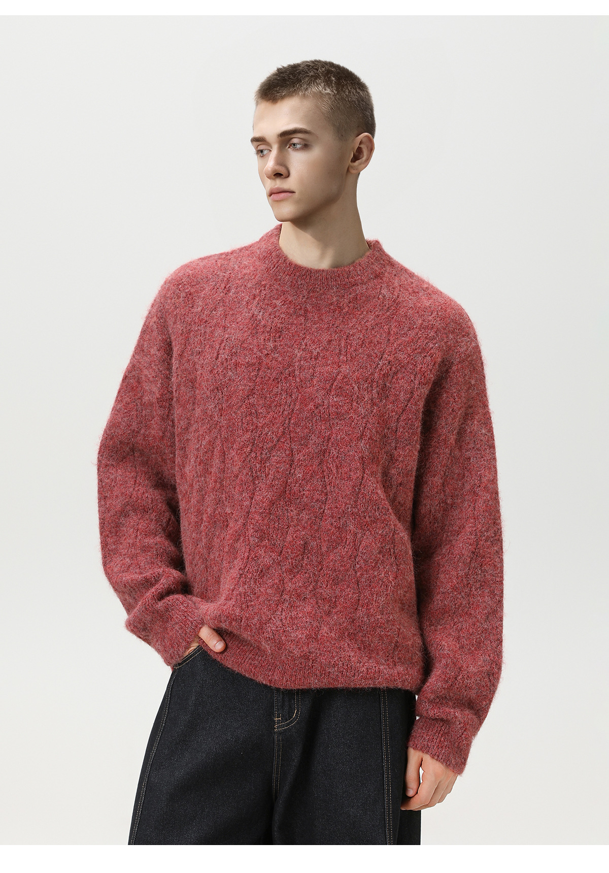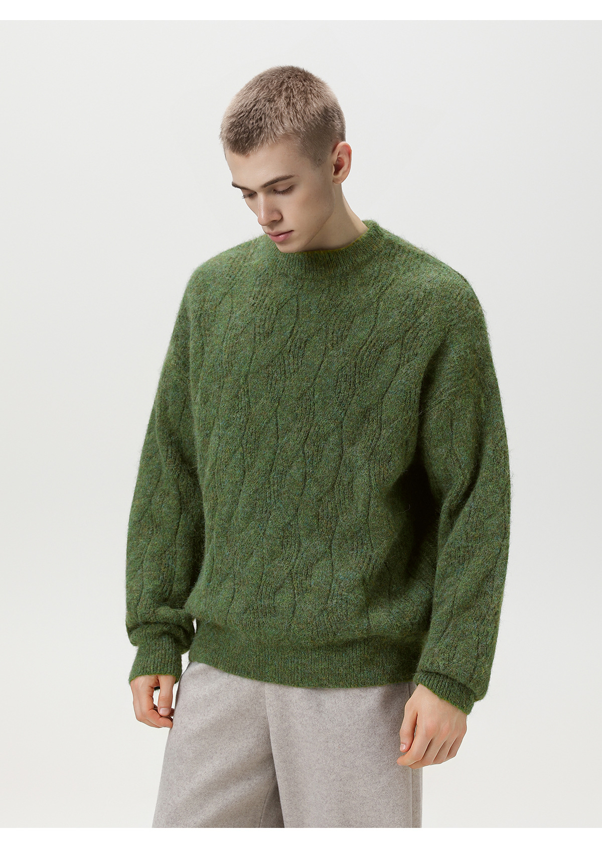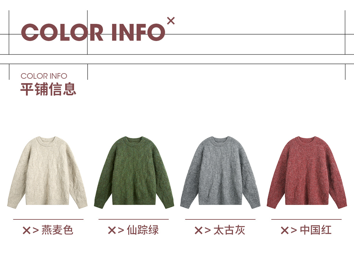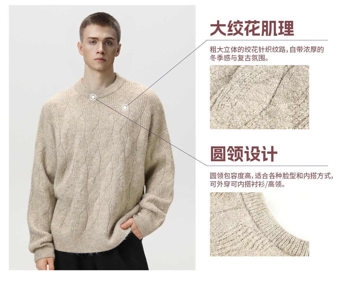 【YW】无忧购“礼物季”半高领圣诞质感绞花圆领毛衣男纯色软糯针织衫MM4147(截单后3-5天发货)