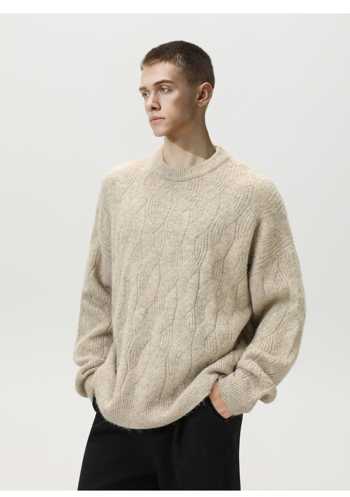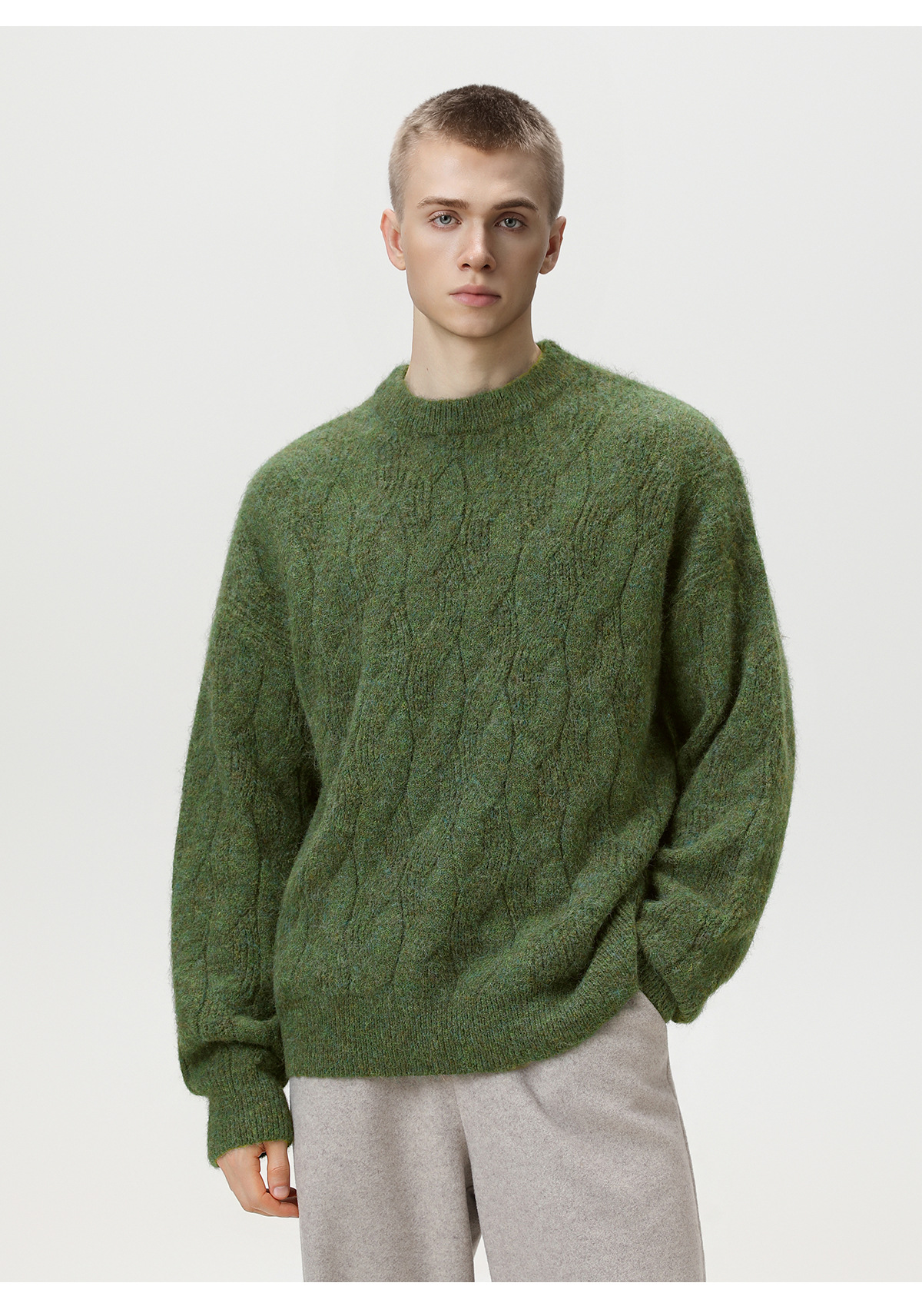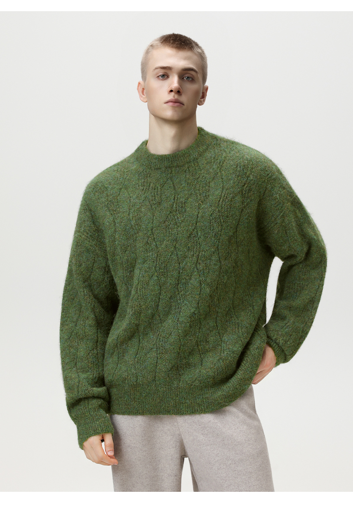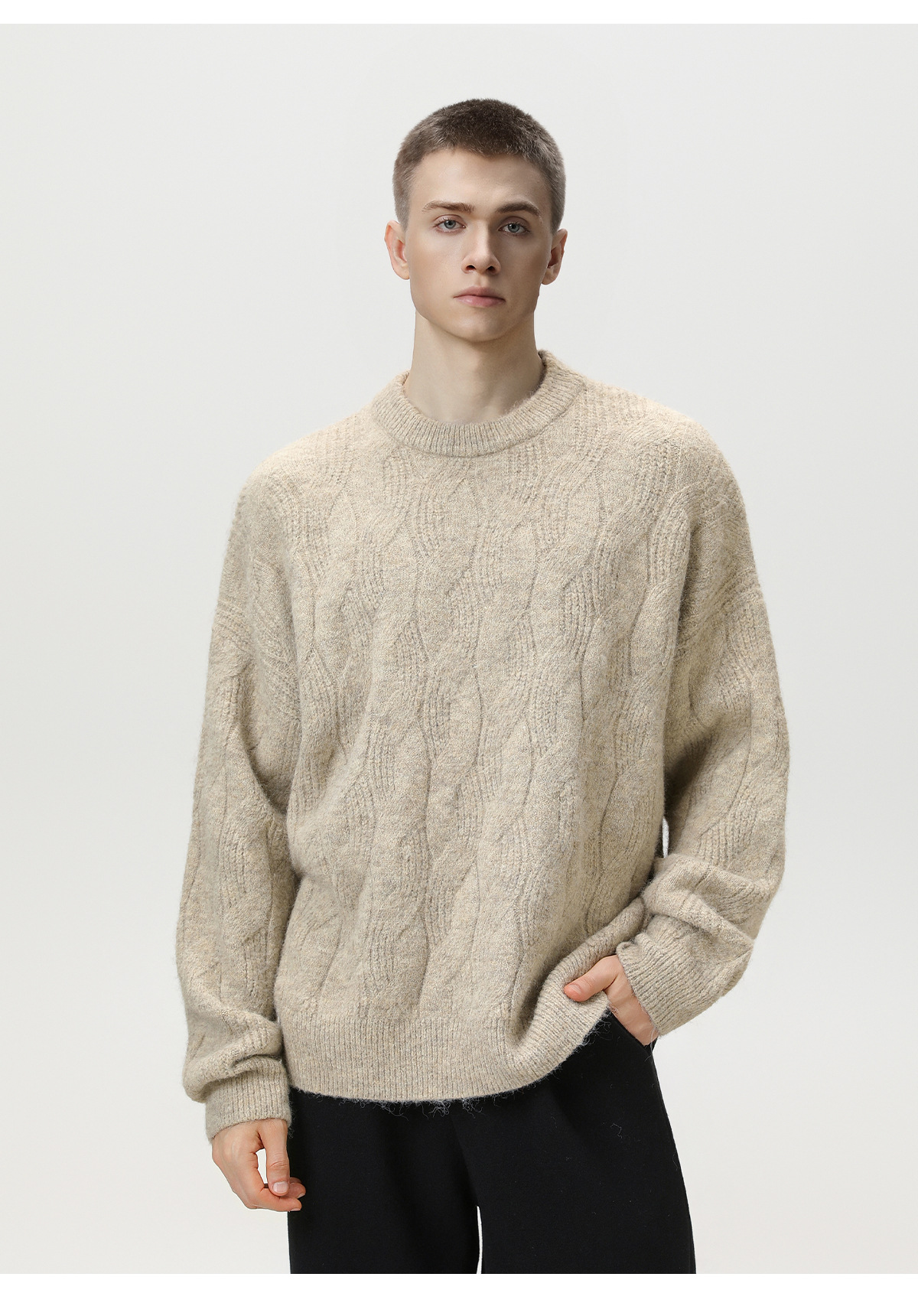 【YW】无忧购“礼物季”半高领圣诞质感绞花圆领毛衣男纯色软糯针织衫MM4147(截单后3-5天发货)