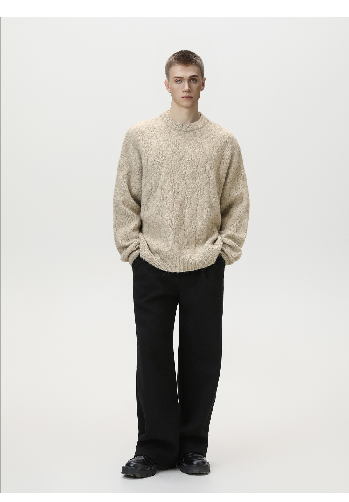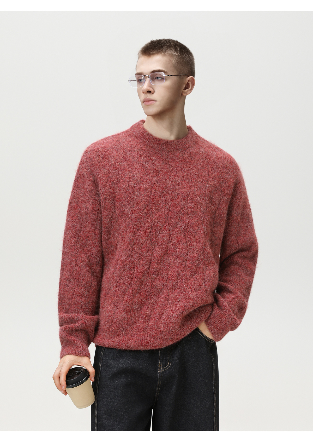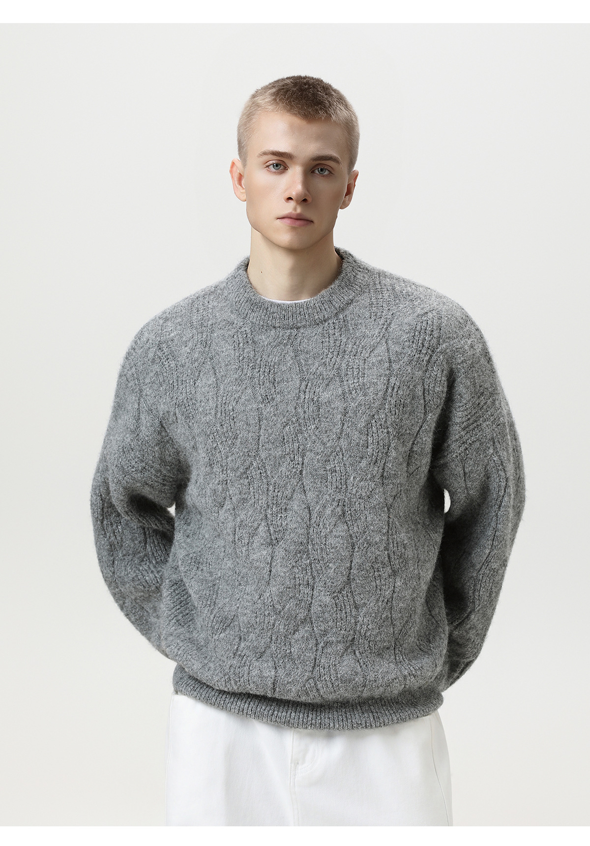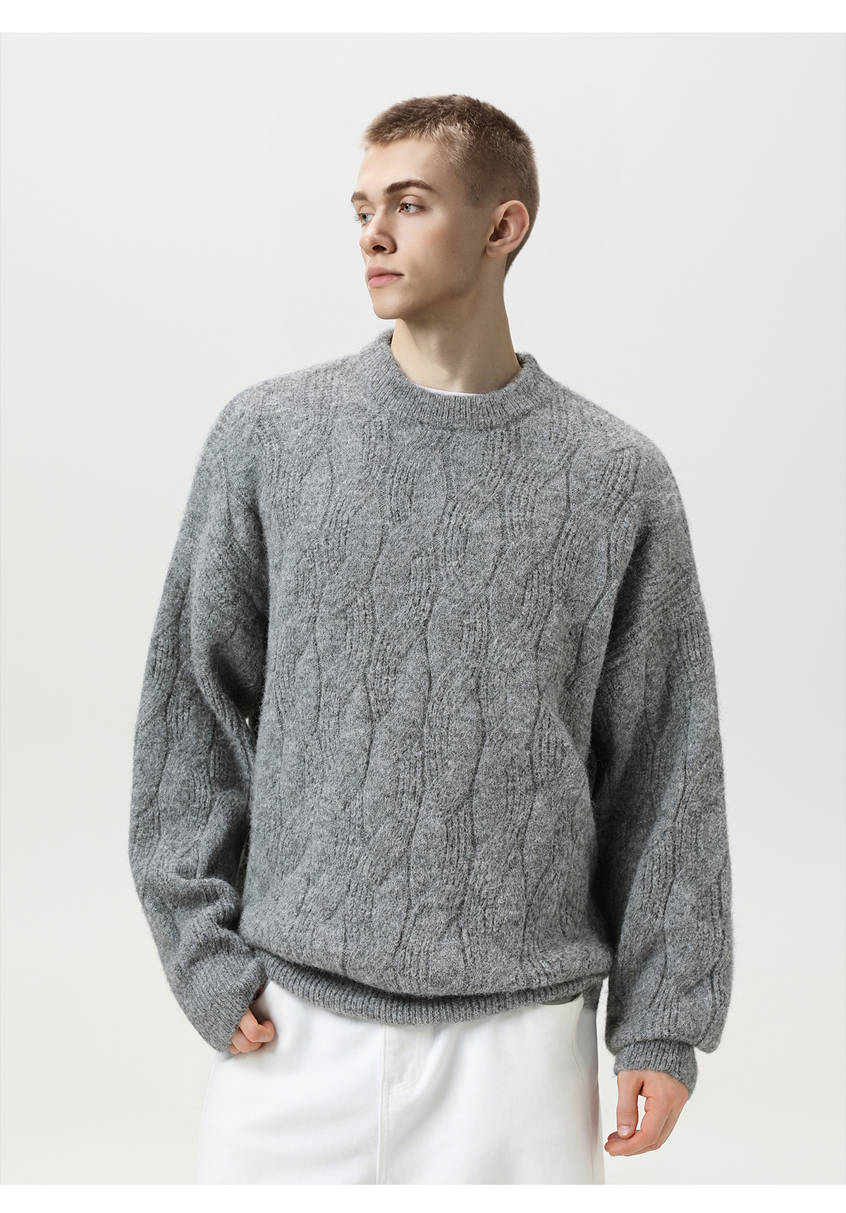 【YW】无忧购“礼物季”半高领圣诞质感绞花圆领毛衣男纯色软糯针织衫MM4147(截单后3-5天发货)