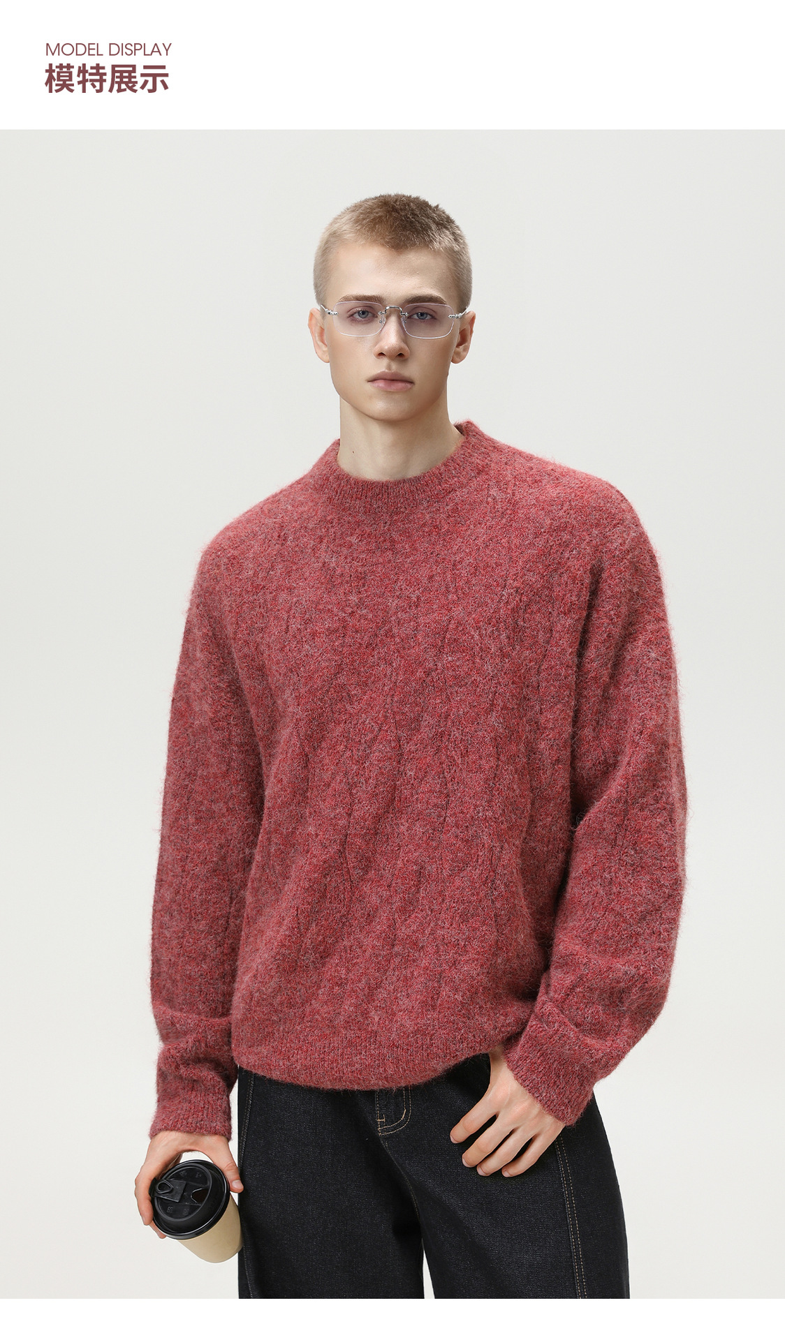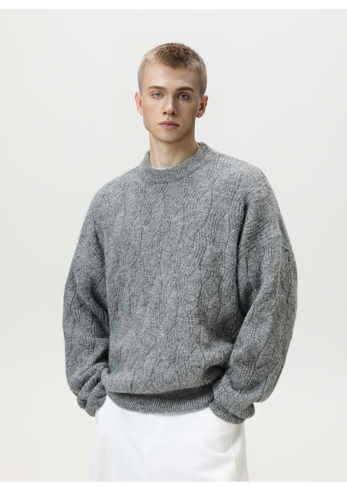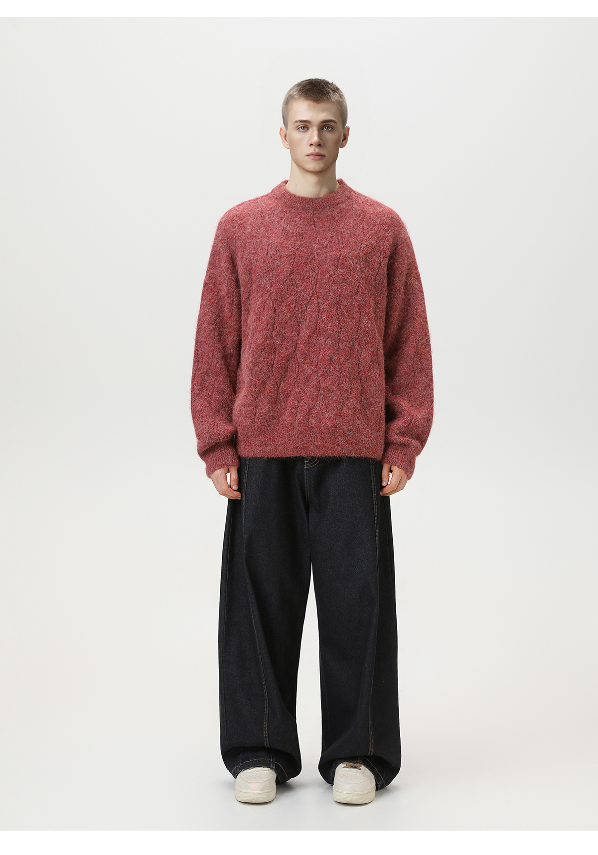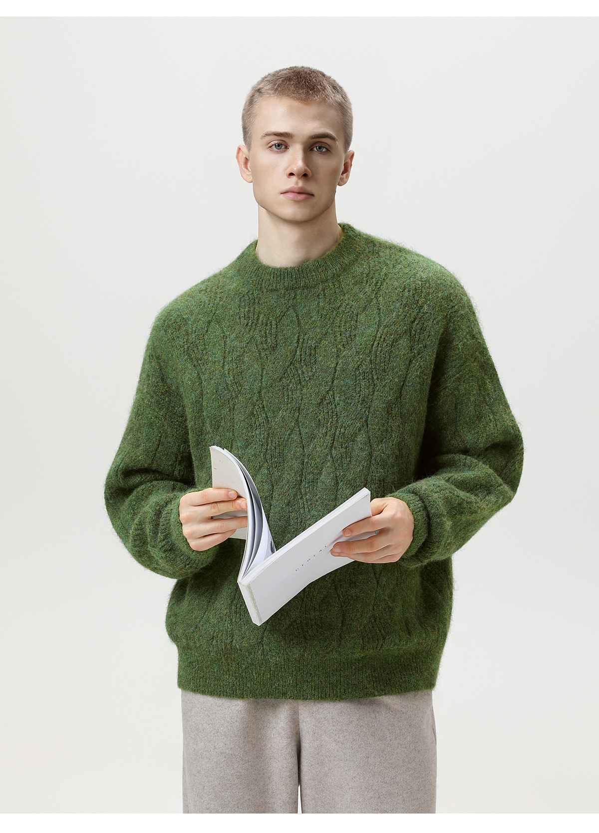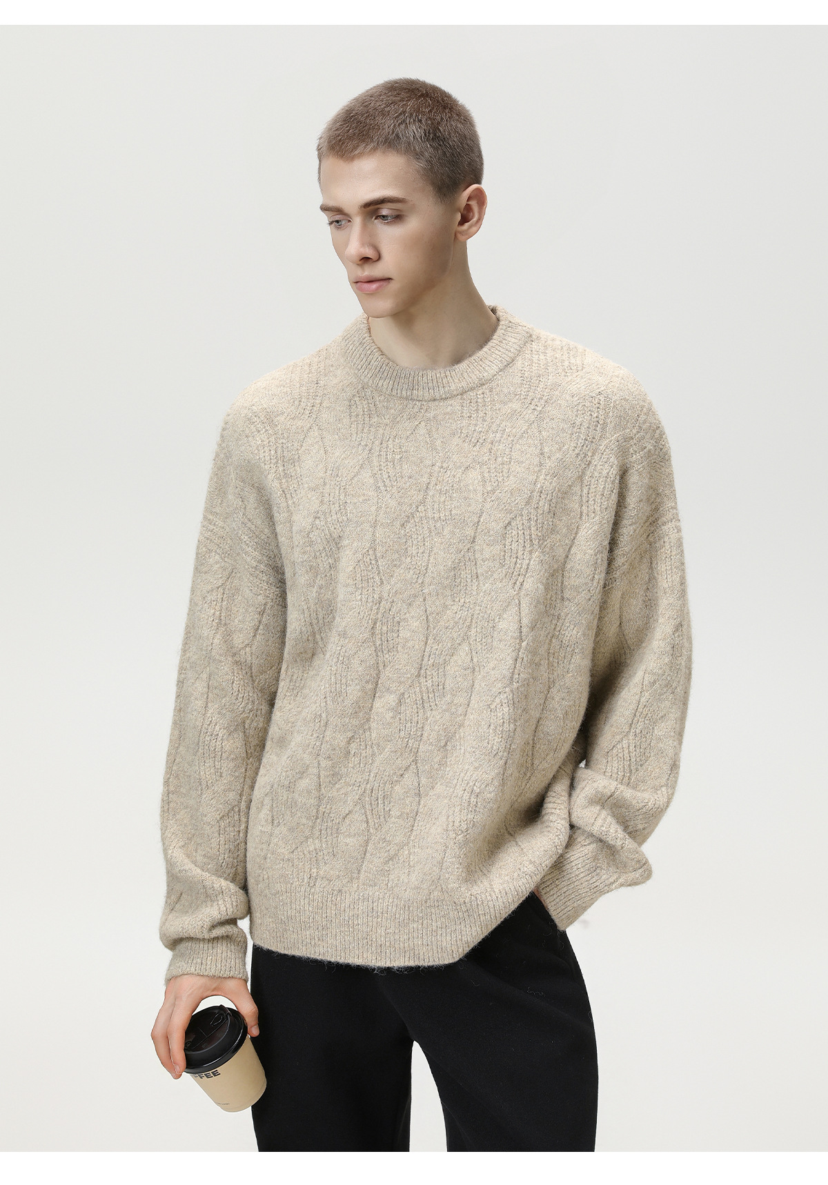 【YW】无忧购“礼物季”半高领圣诞质感绞花圆领毛衣男纯色软糯针织衫MM4147(截单后3-5天发货)
