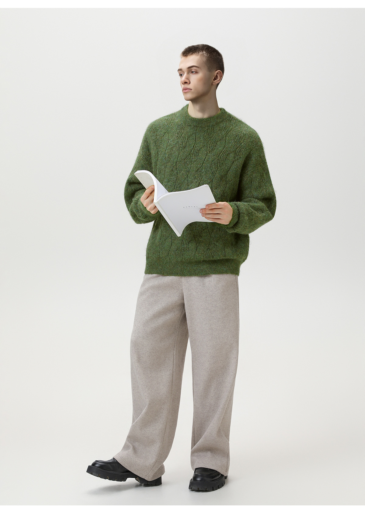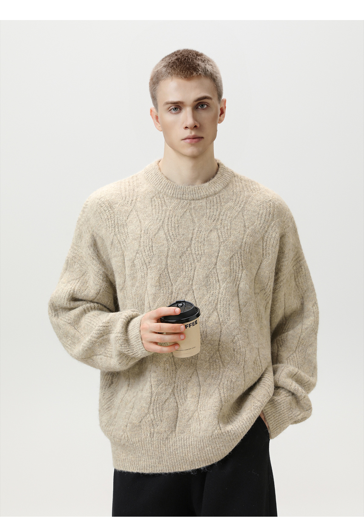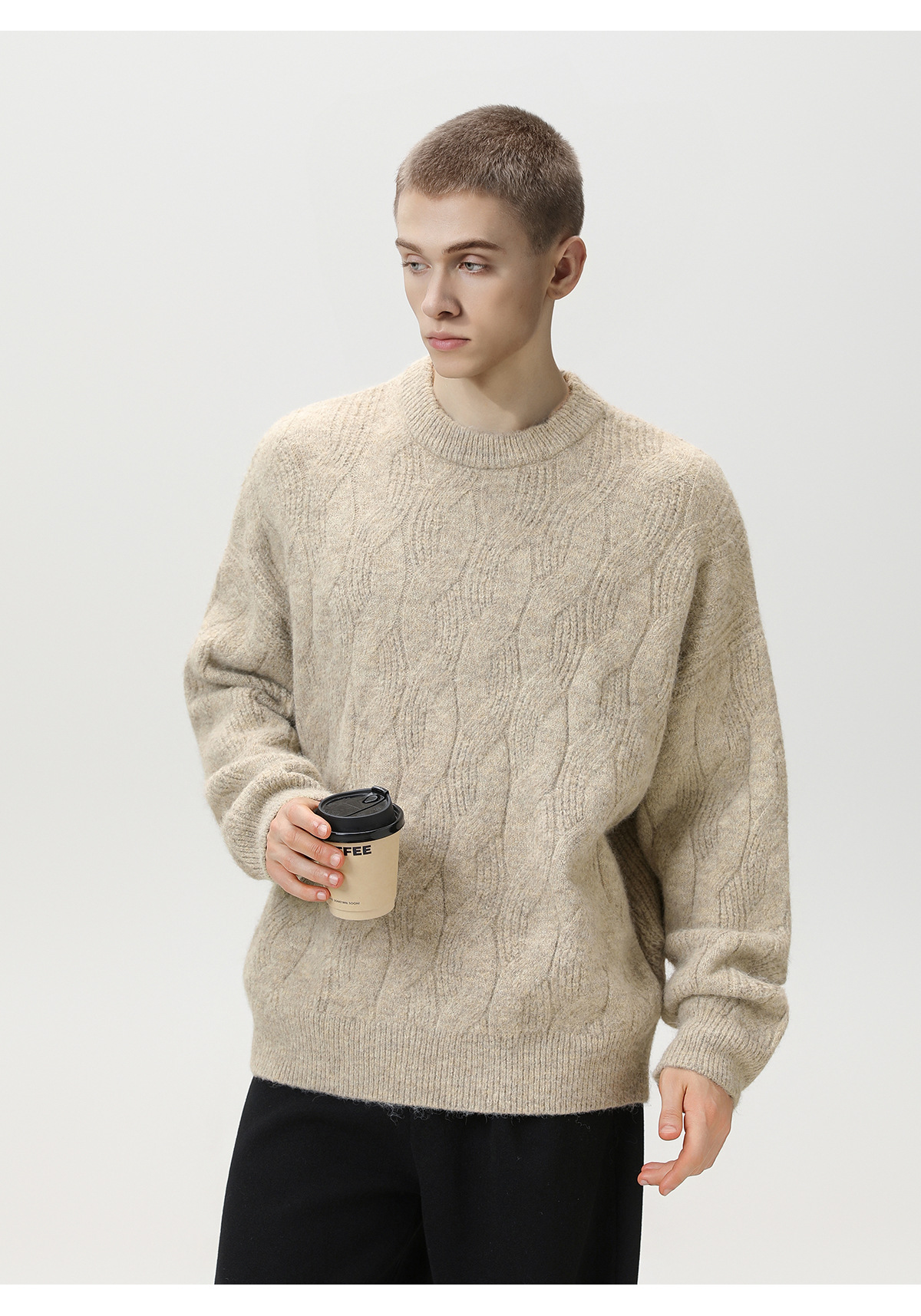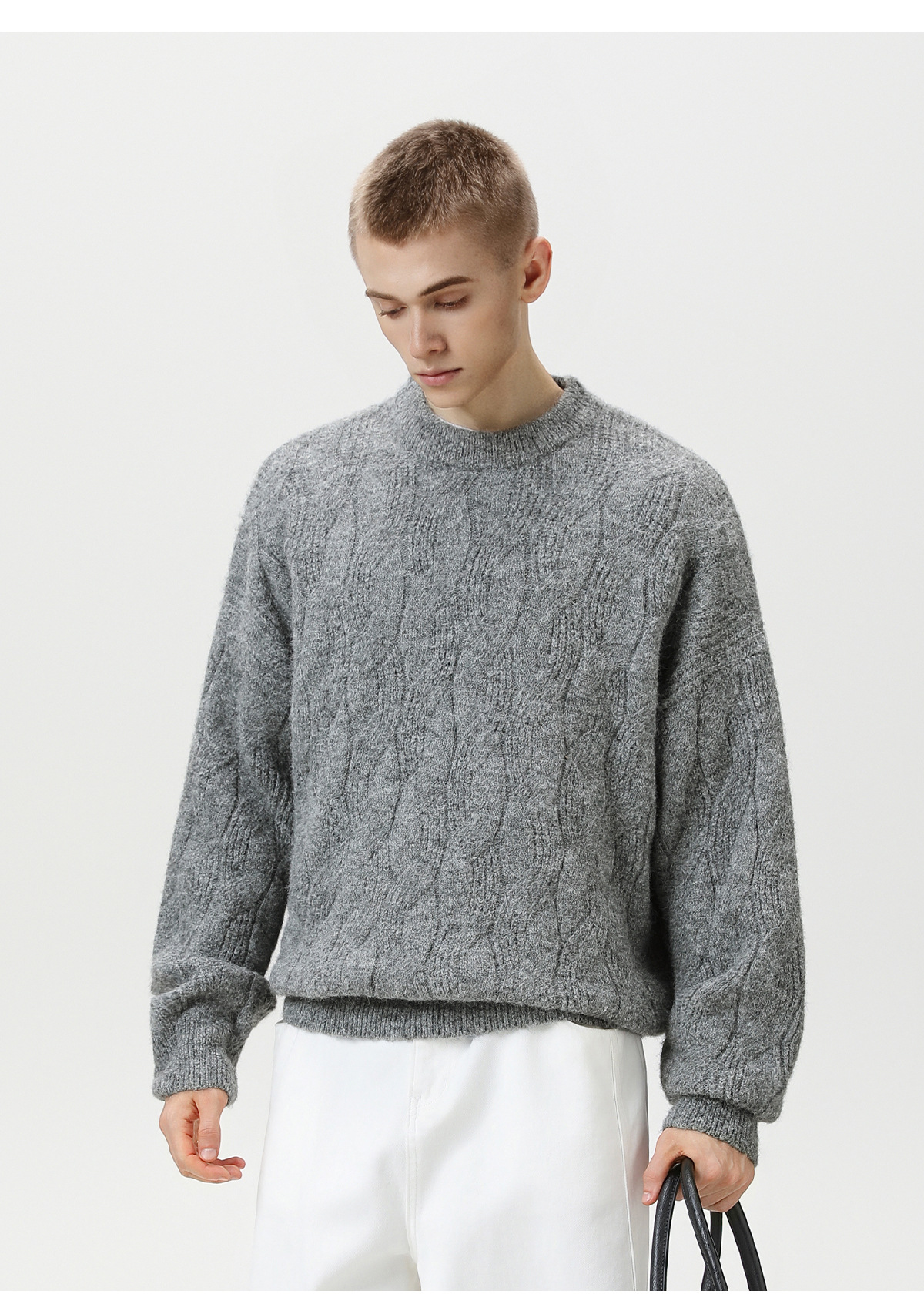 【YW】无忧购“礼物季”半高领圣诞质感绞花圆领毛衣男纯色软糯针织衫MM4147(截单后3-5天发货)