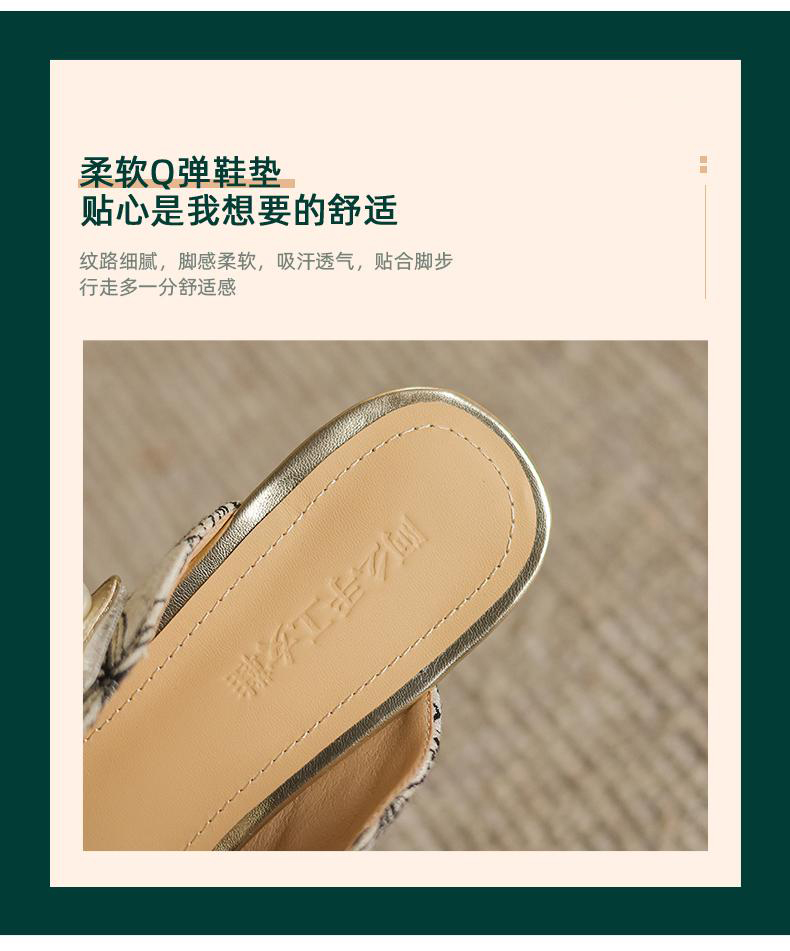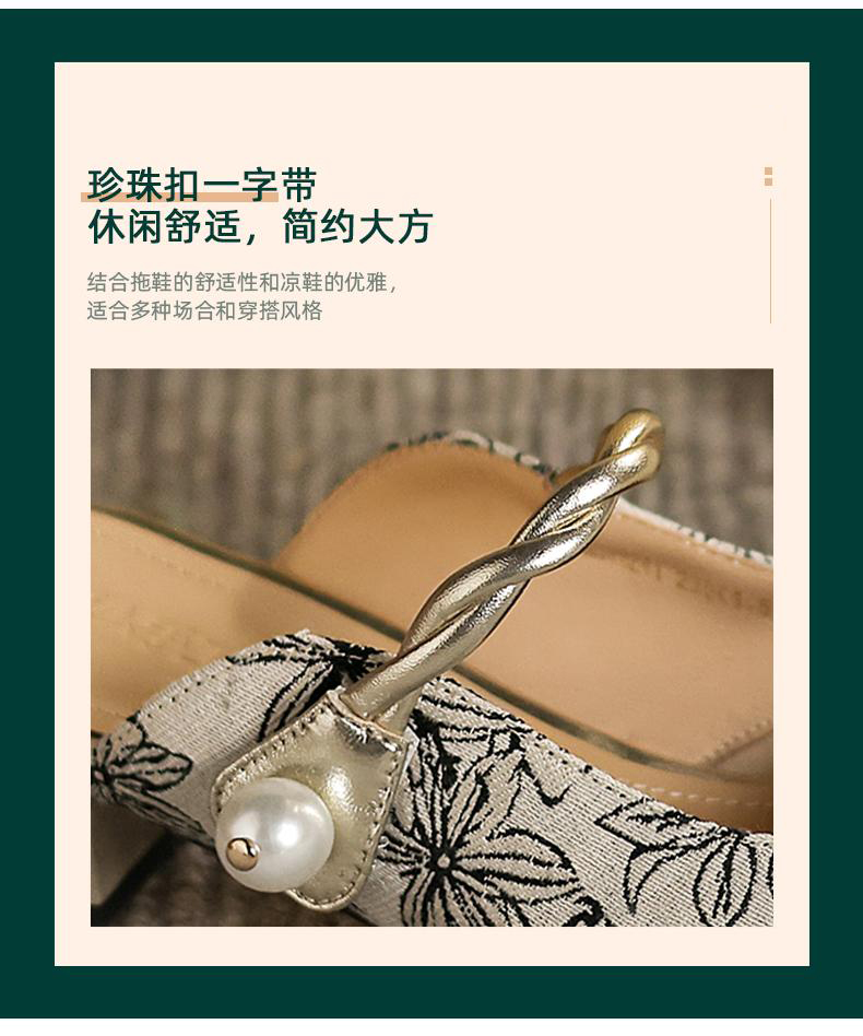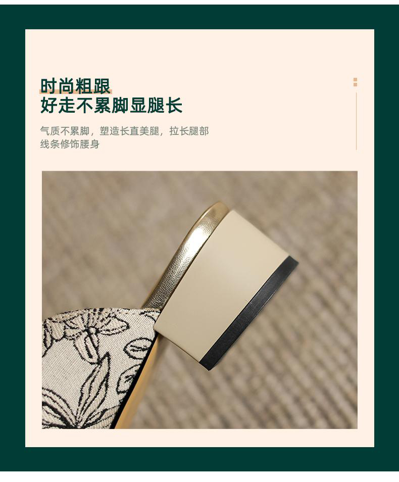 手工女鞋2025新中式粗跟穆勒拖3CM夏季雕花方头拖鞋百搭 商品图3