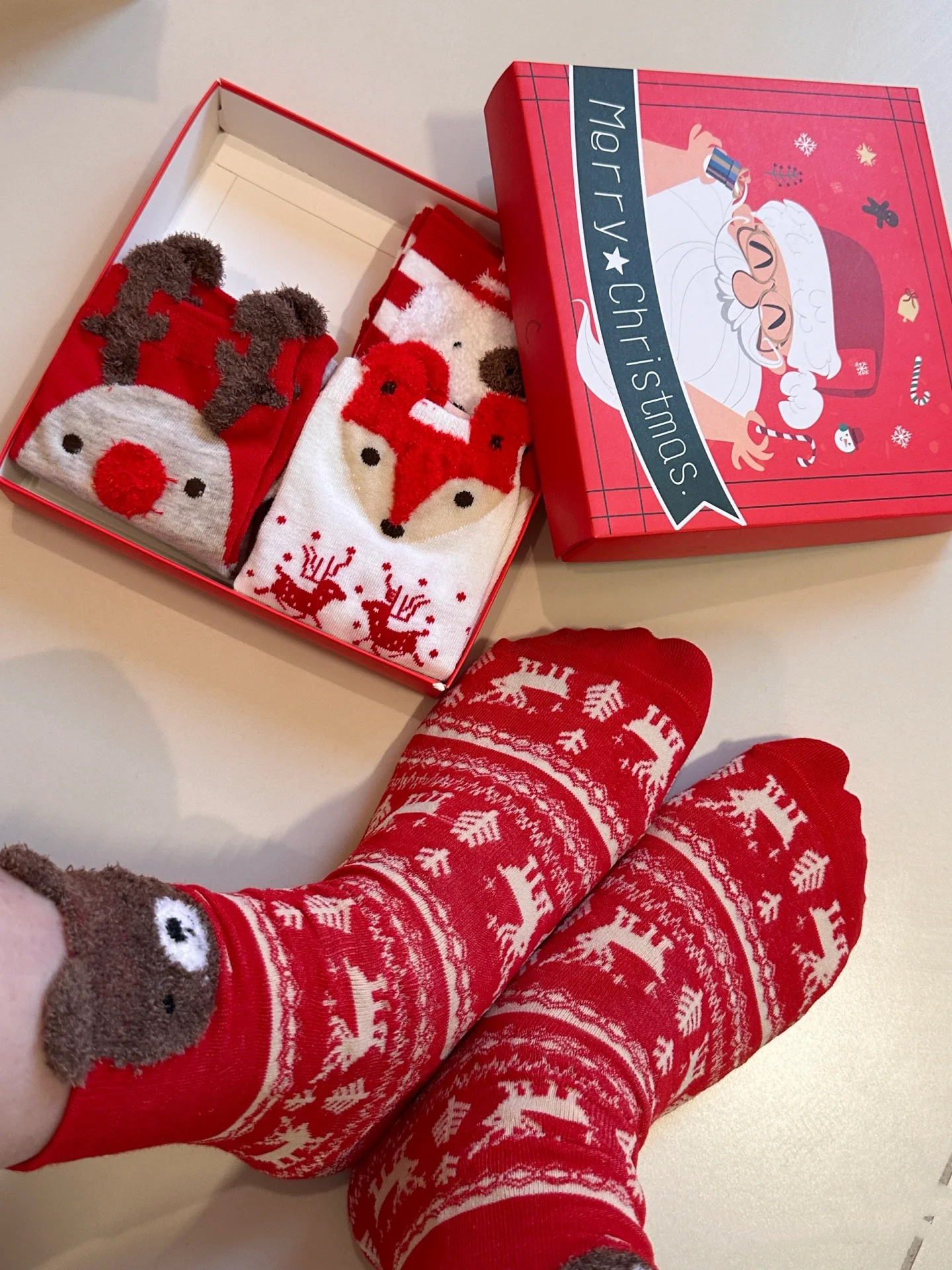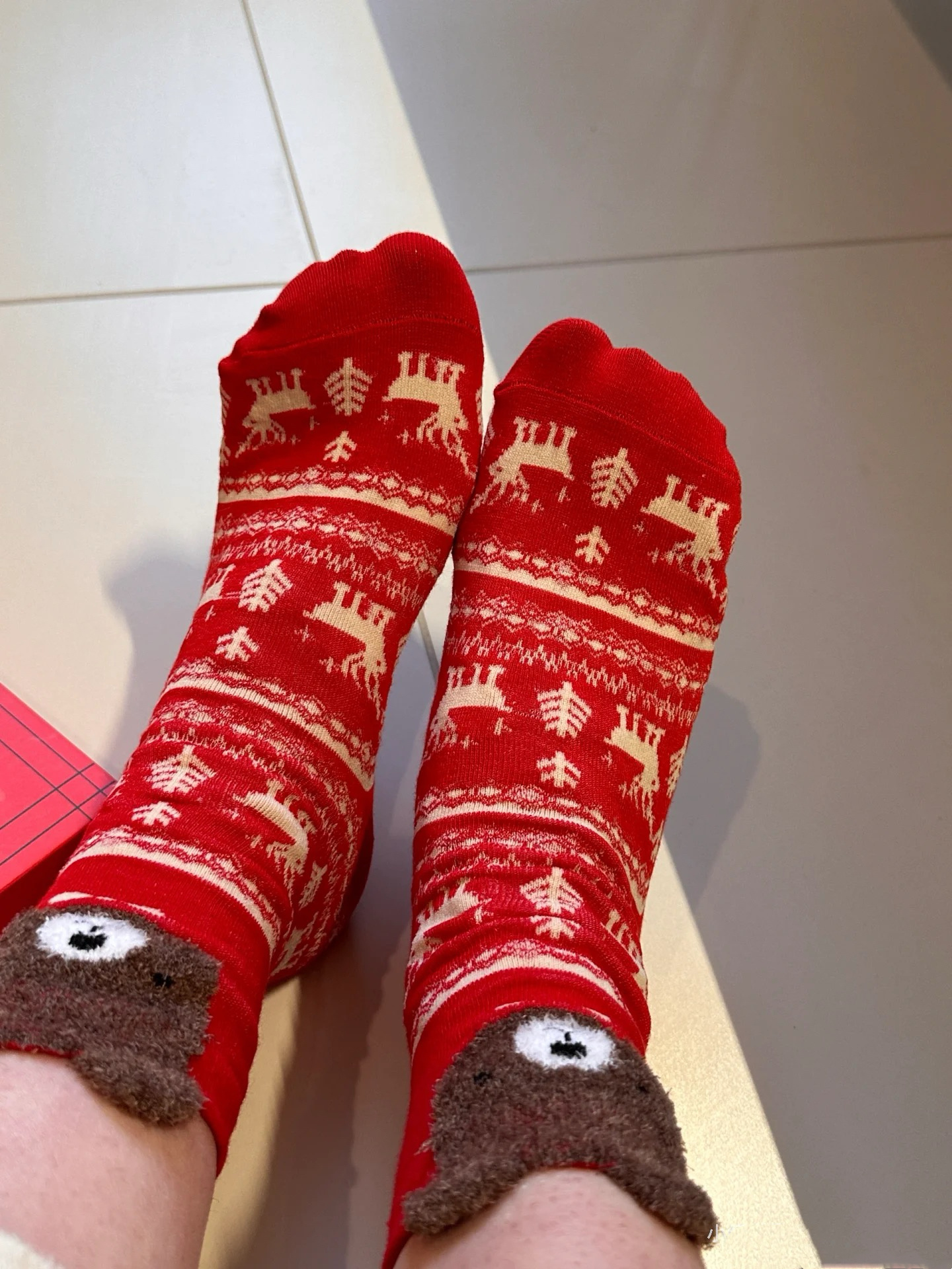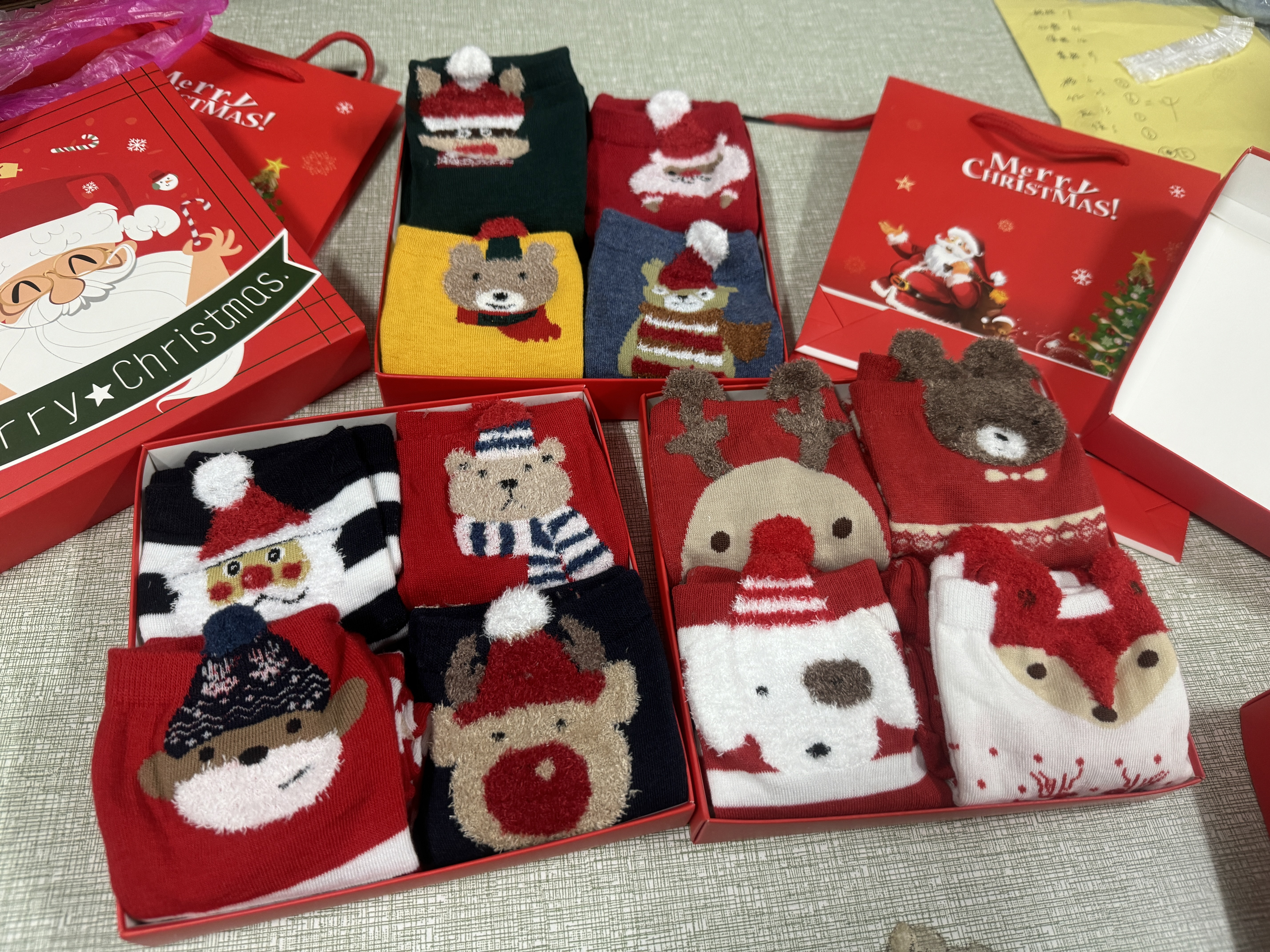 圣诞袜礼物盒圣诞圣诞🤶圣诞祙 圣诞袜鸿运袜好运暴击 还有一个多月圣诞马上到啦 的家人们圣诞袜子 囤起来红红火火快来沾沾喜气... 一定要和男朋友一起穿圣诞! 嘿嘿,自己在卖的圣诞袜,和老公上脚先试了试,感觉好可爱呀哈哈哈哈,棉质面料很舒服刚好圣诞节