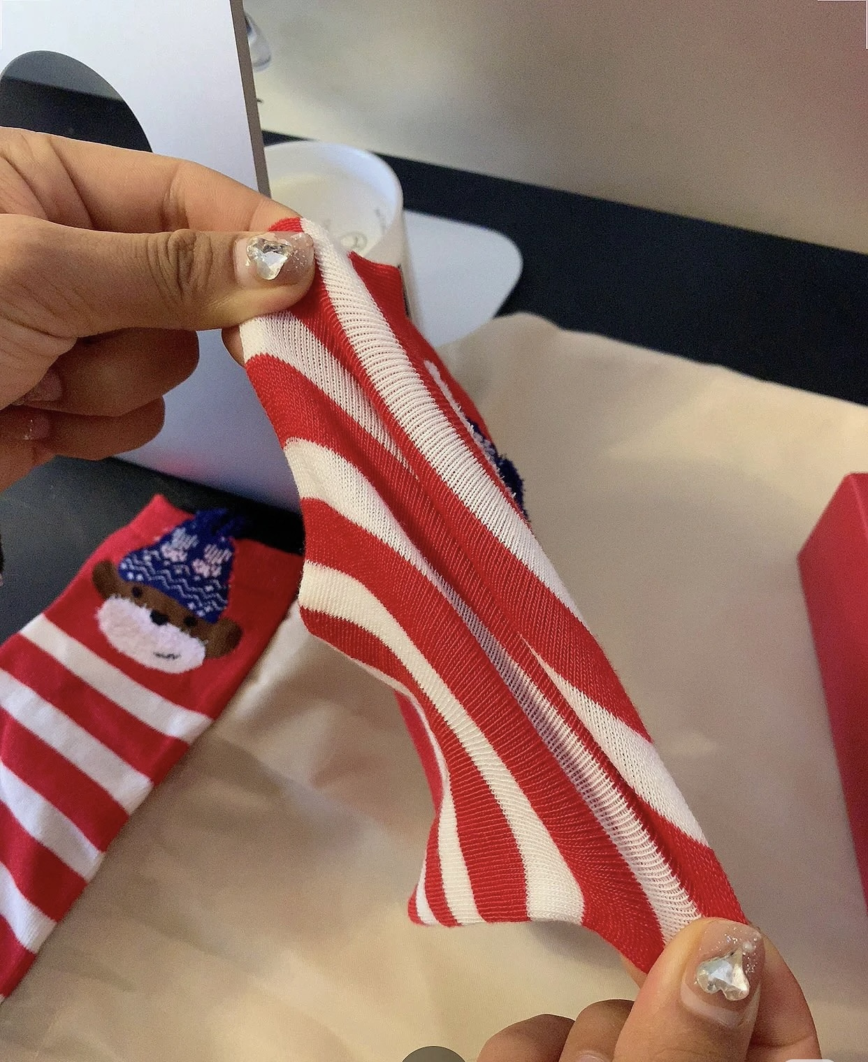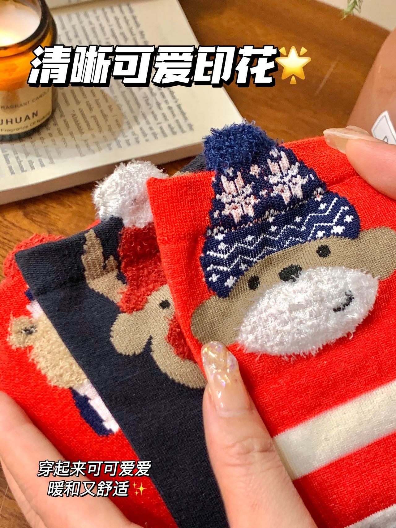 把圣诞元素与卡通设计融合起来 便造就了一双独一无二的圣诞袜 袜子的样式真的是美炸了 实物质感超级好