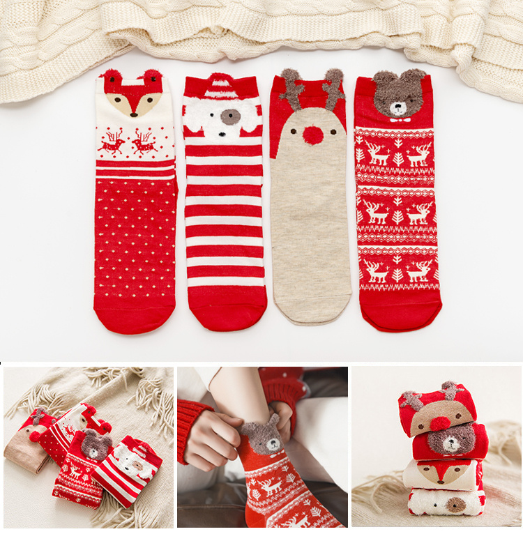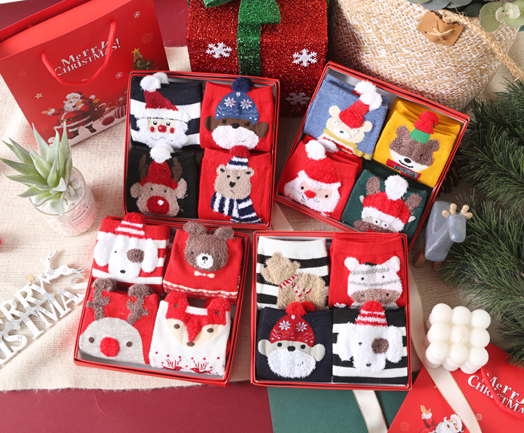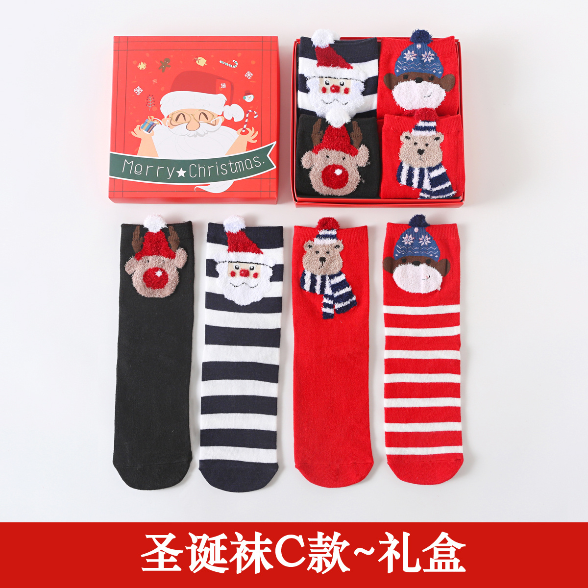 【商品名称】Musssaa圣诞袜礼盒 【规格说明】4双/盒 【材质说明】棉15%聚酯纤维80%氨纶5% 【尺码说明】均码,35-40 【发货时效】72h内发货 【物流说明】西藏、新疆不发,北京上海+1元 【售后说明】1.不支持七天无理由退换;2.质量、缺件问题请签收后24小时内反馈,过期无法为您处理喔;3.快递送货外观有严重破损的请拒收。
