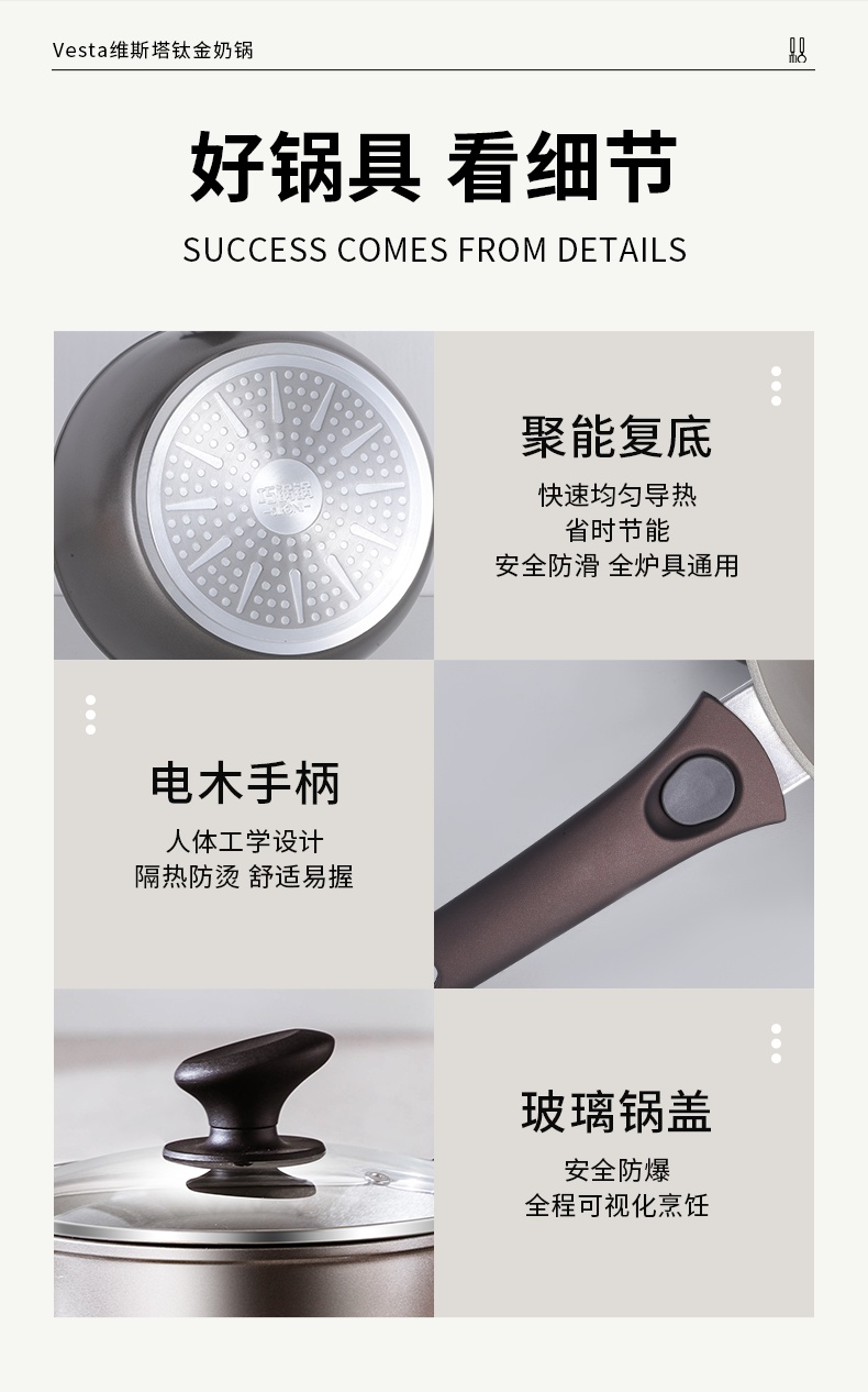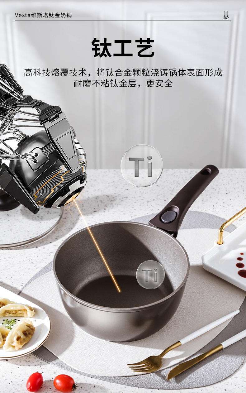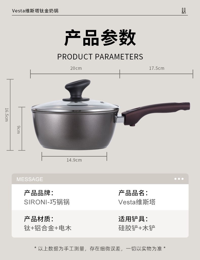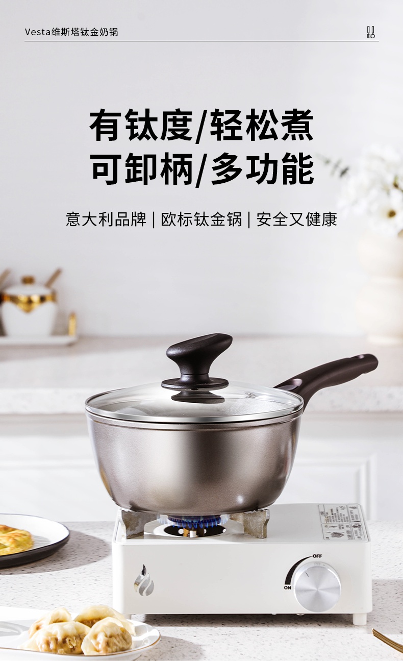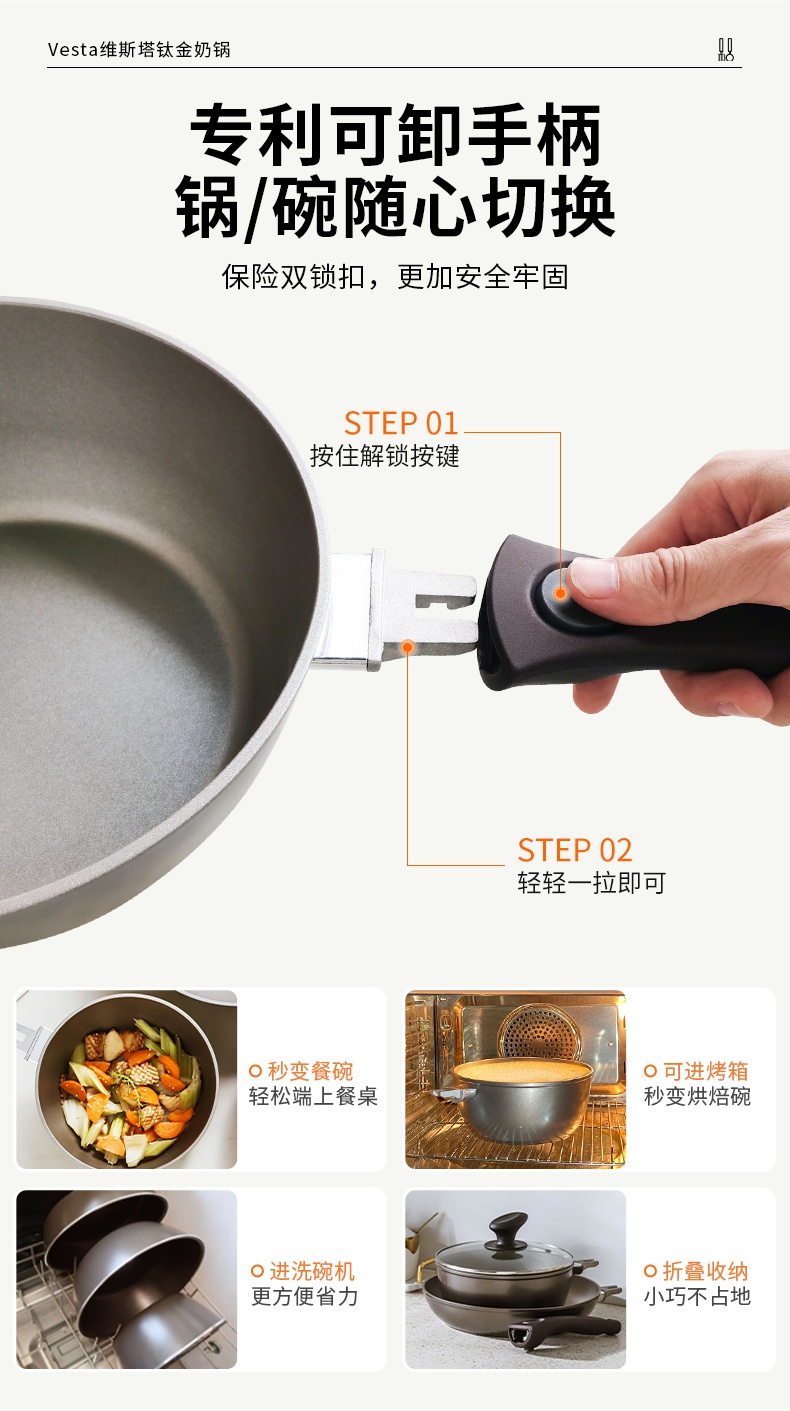 【欧标钛金锅】斯罗尼SIRONI巧锅锅维斯塔奶锅 专利可卸手柄 锅/碗随心切换 持久耐磨 不怕刮擦 折叠收纳 小巧不占地20CM