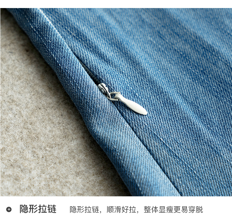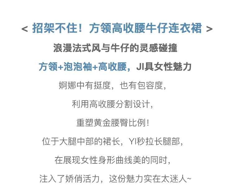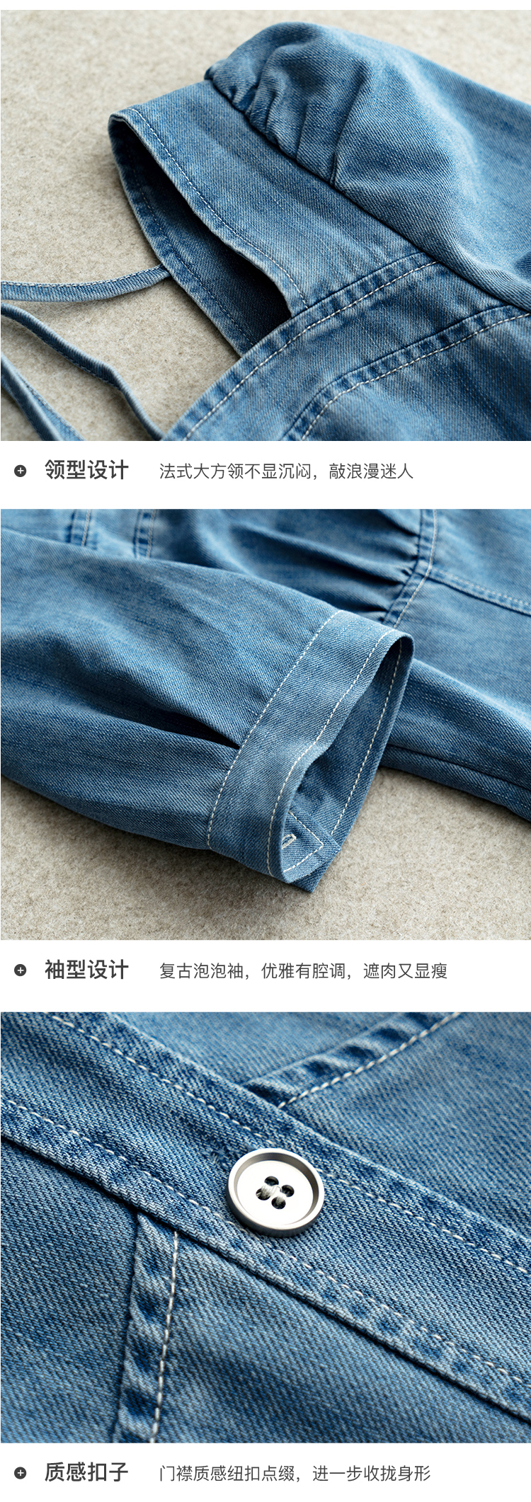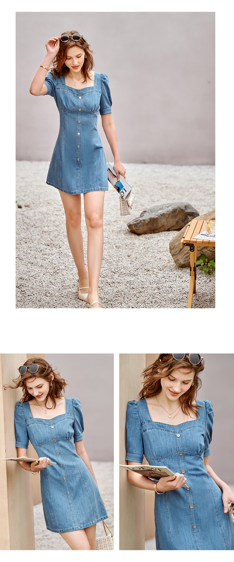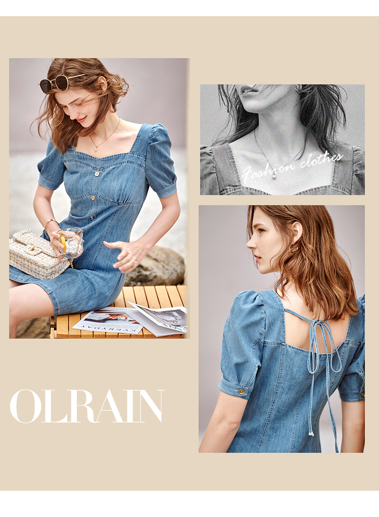 欧芮儿牛仔连衣裙女2022夏季新款收腰显瘦方领泡泡袖气质时髦裙子