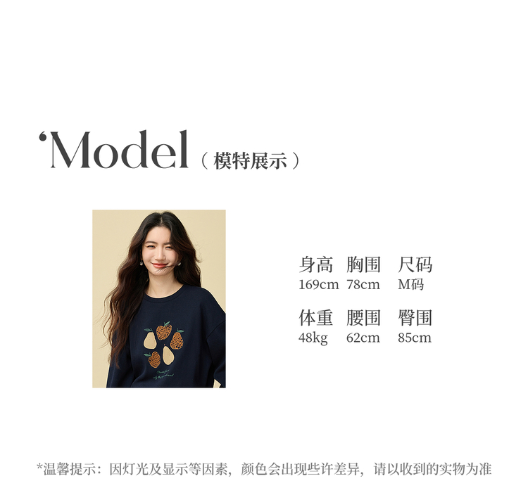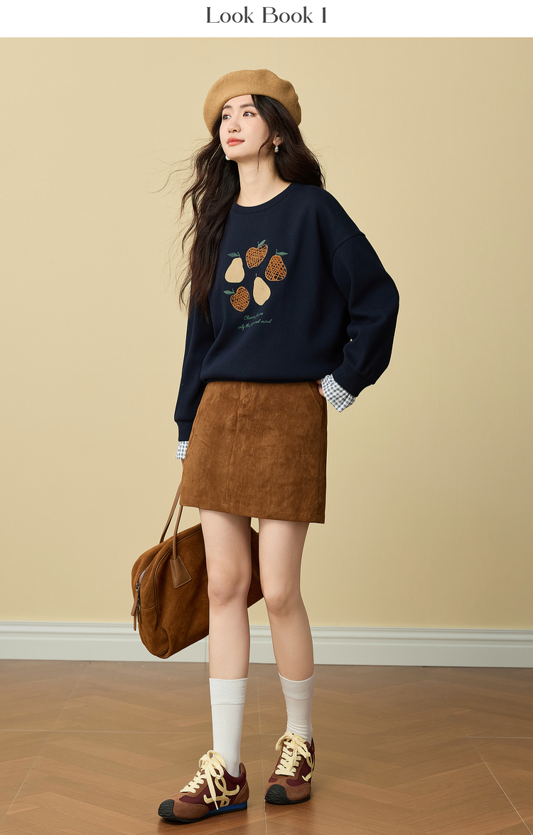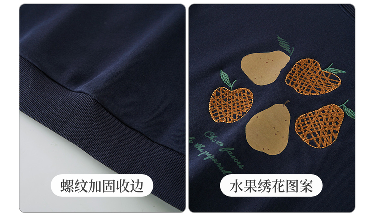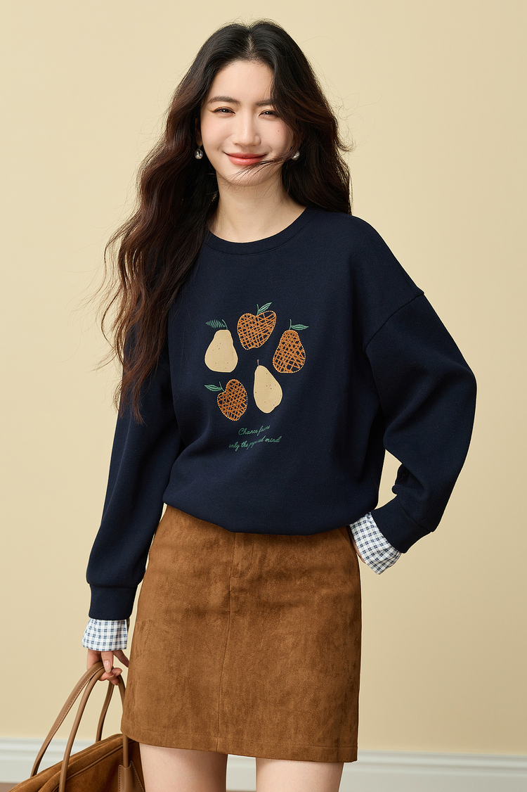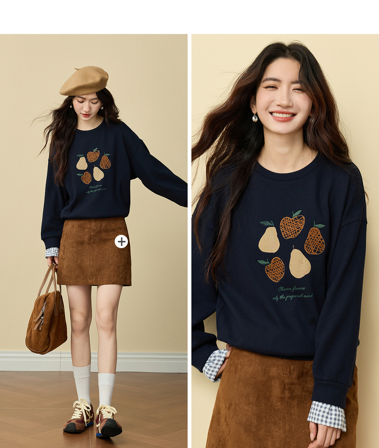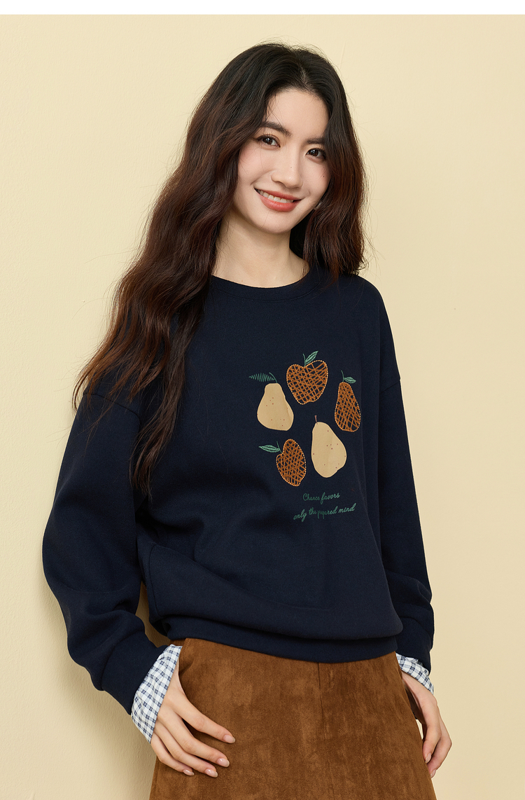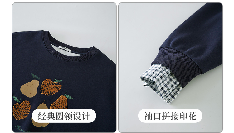 【年货节】熙世界香梨刺绣加绒卫衣韩系慵懒风女秋冬假两件格纹长袖拼接上衣