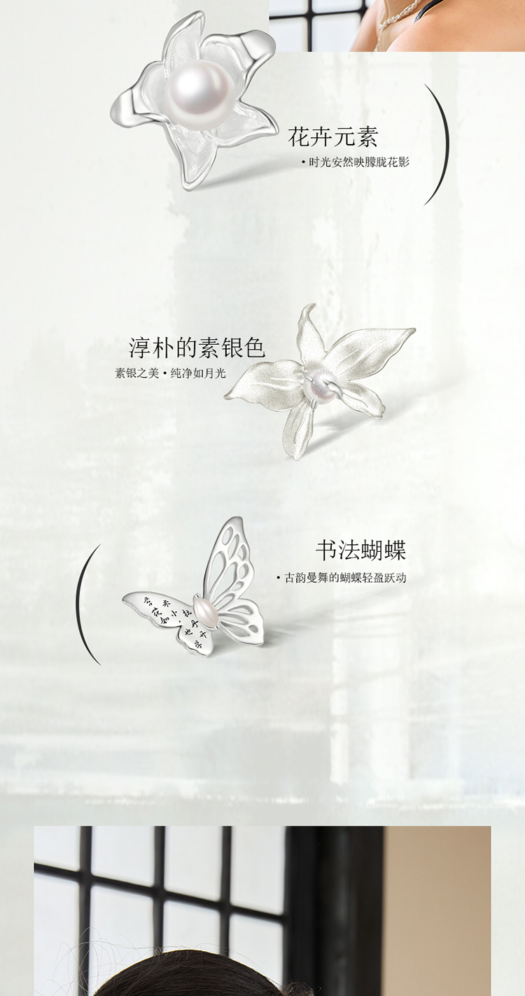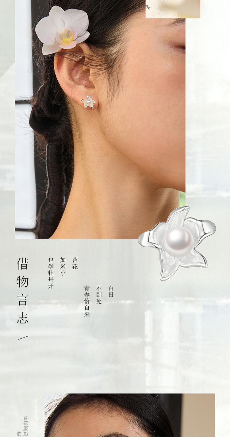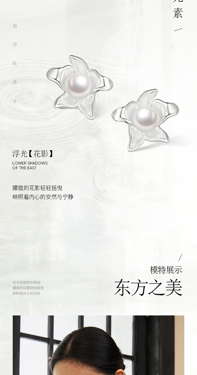 ZEGL设计师东方花影系列人造珍珠耳钉女轻奢高级感耳环大气耳饰品