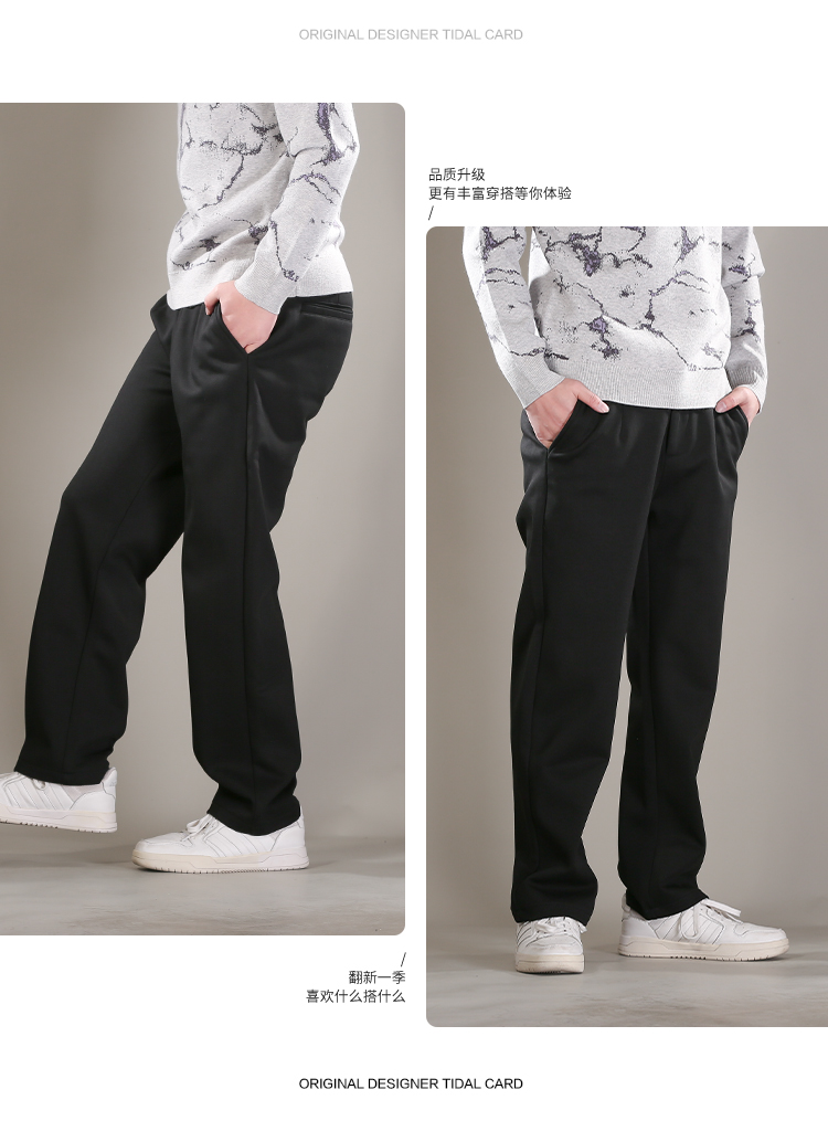 DRONKOO 2025 正常腰前左后右折线加织唛复合绒小直筒厚休闲长裤