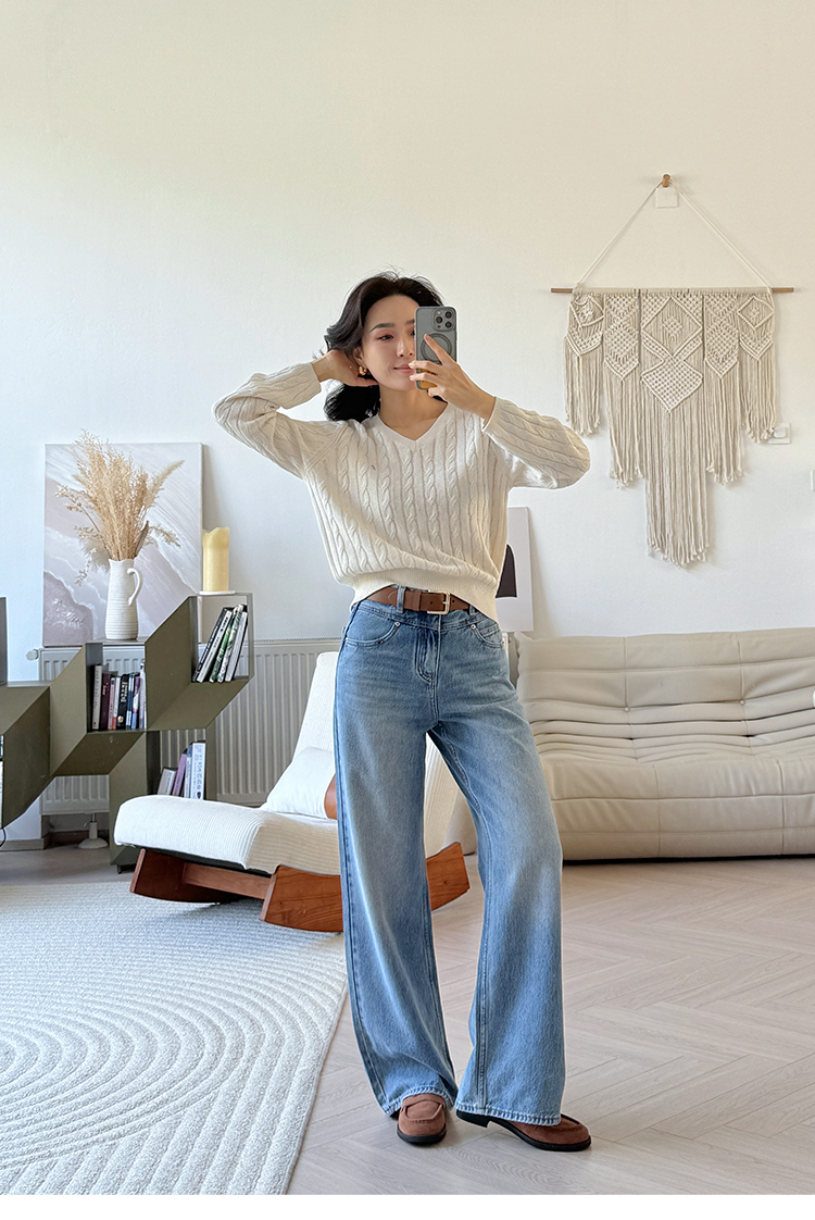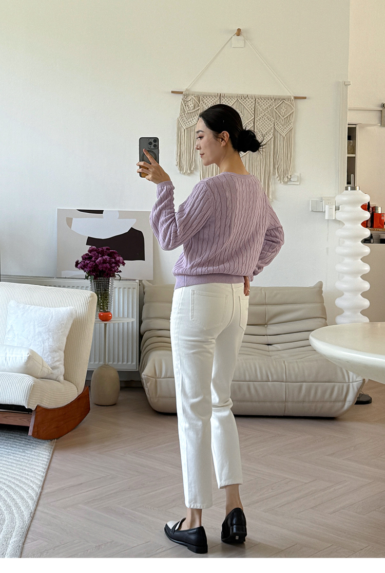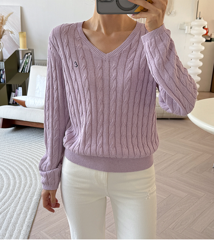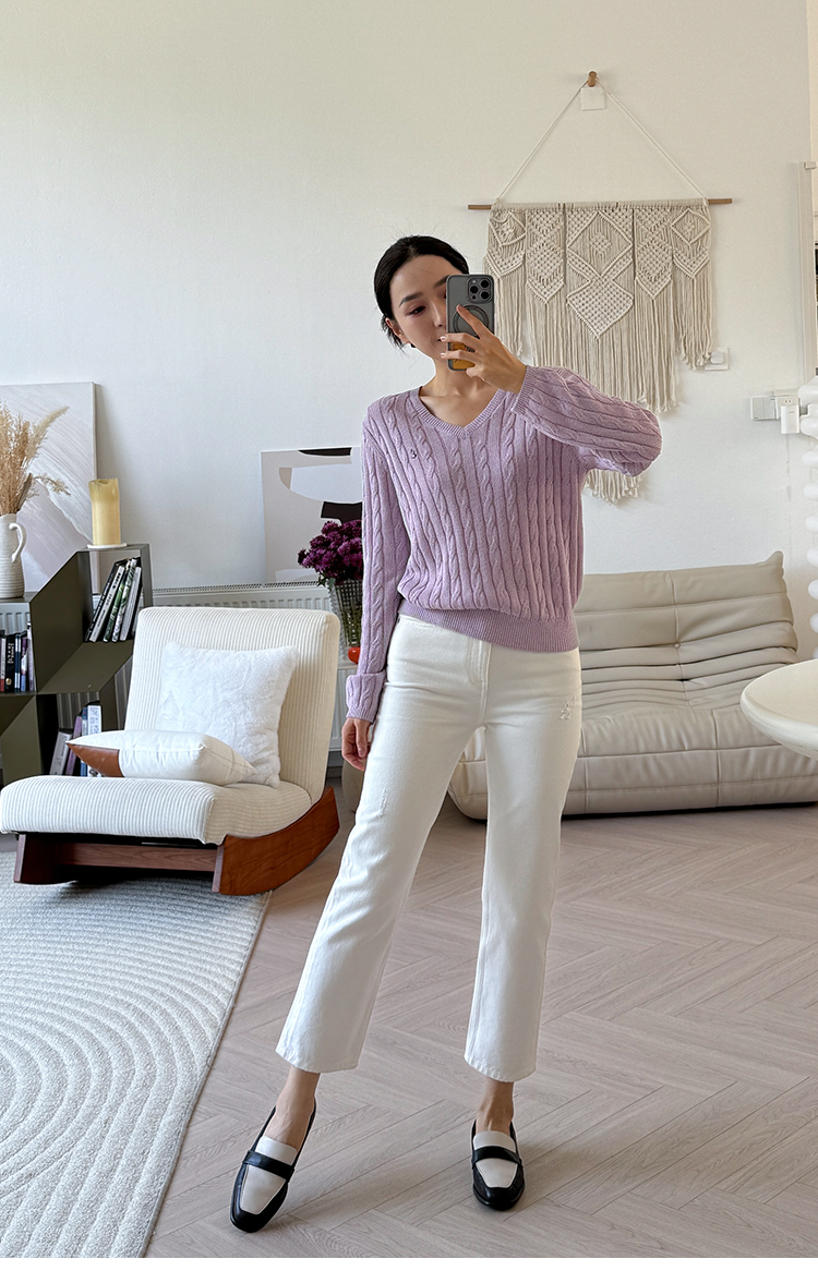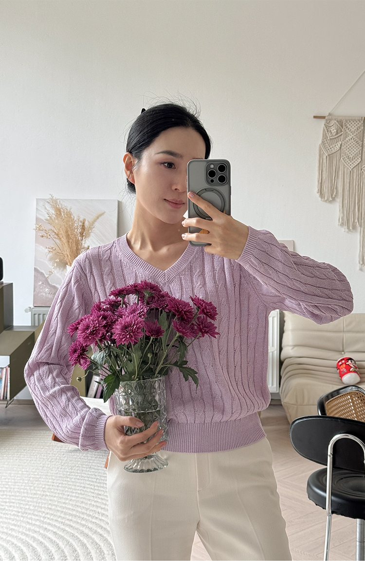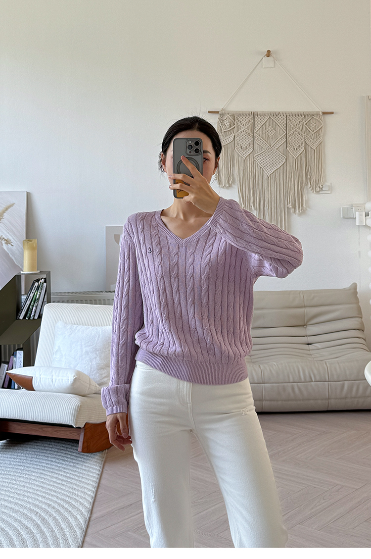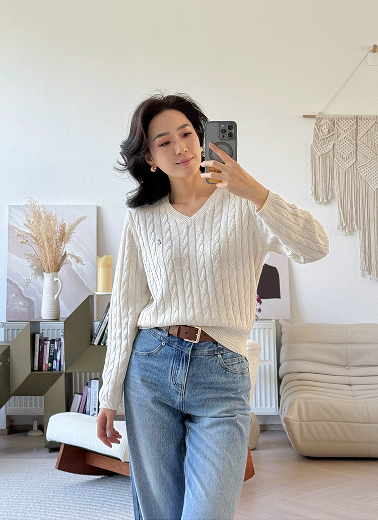 和纸纱 复古绞花 V领针织毛衣
