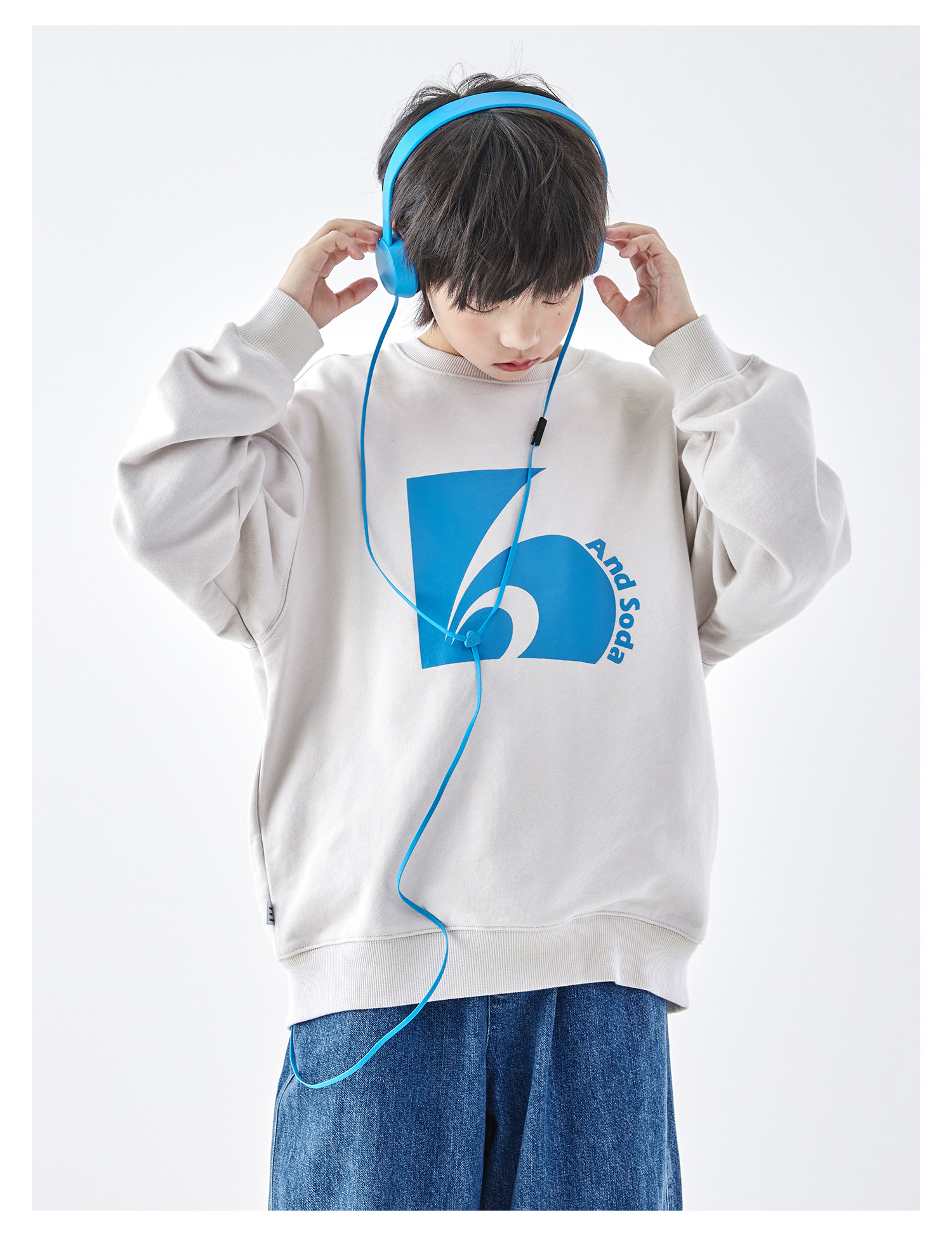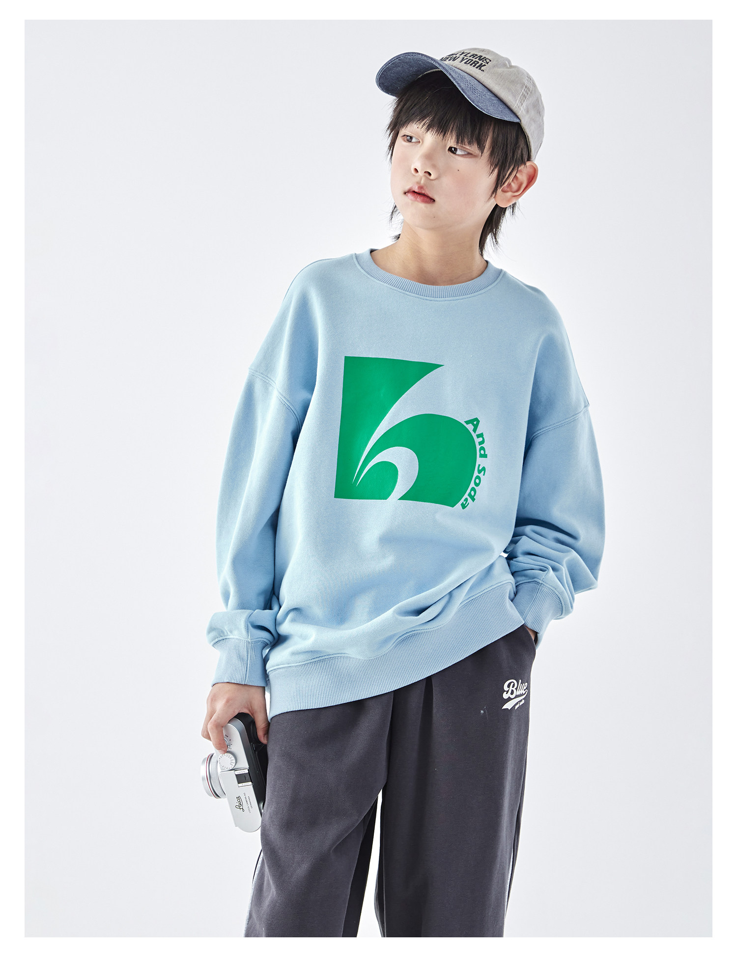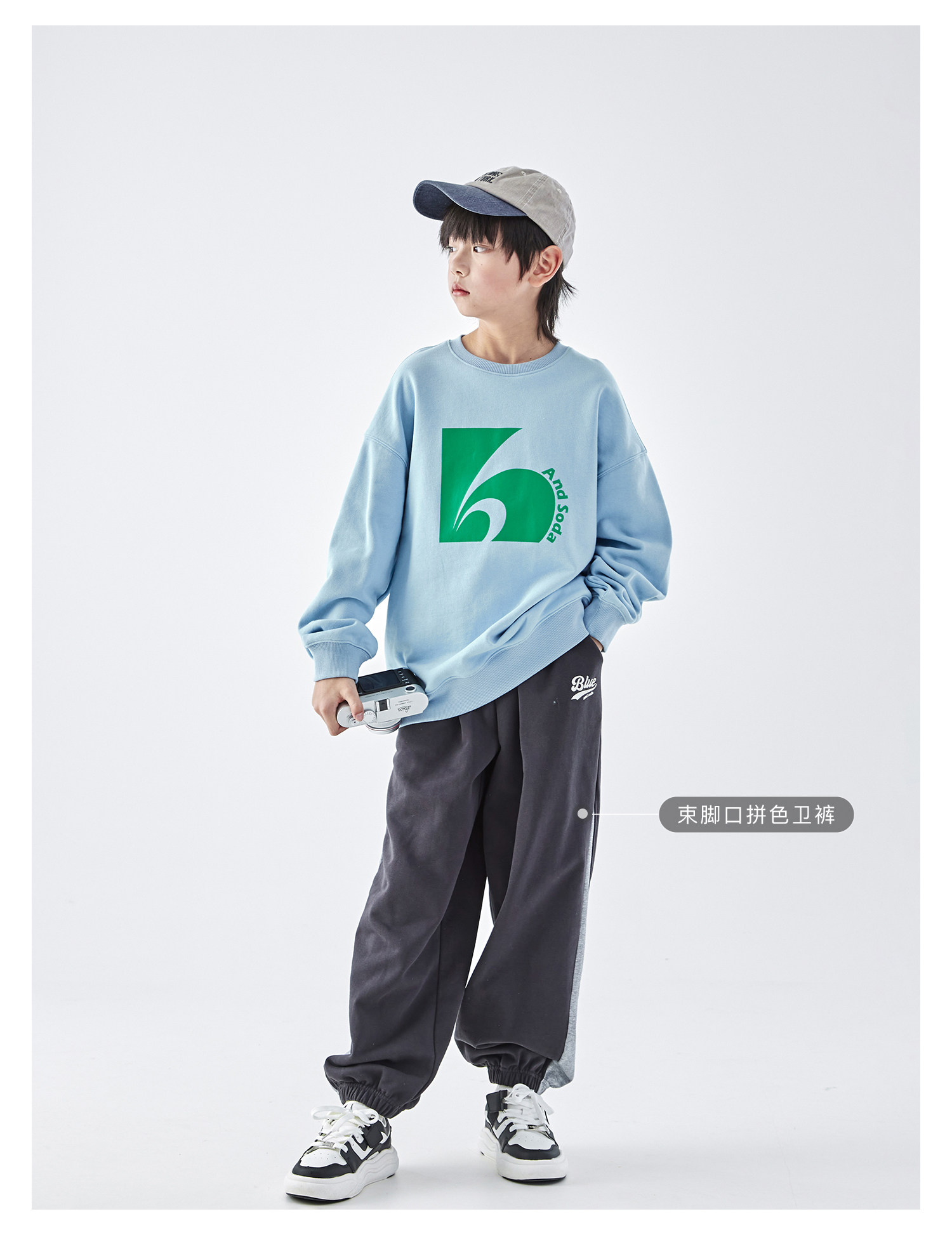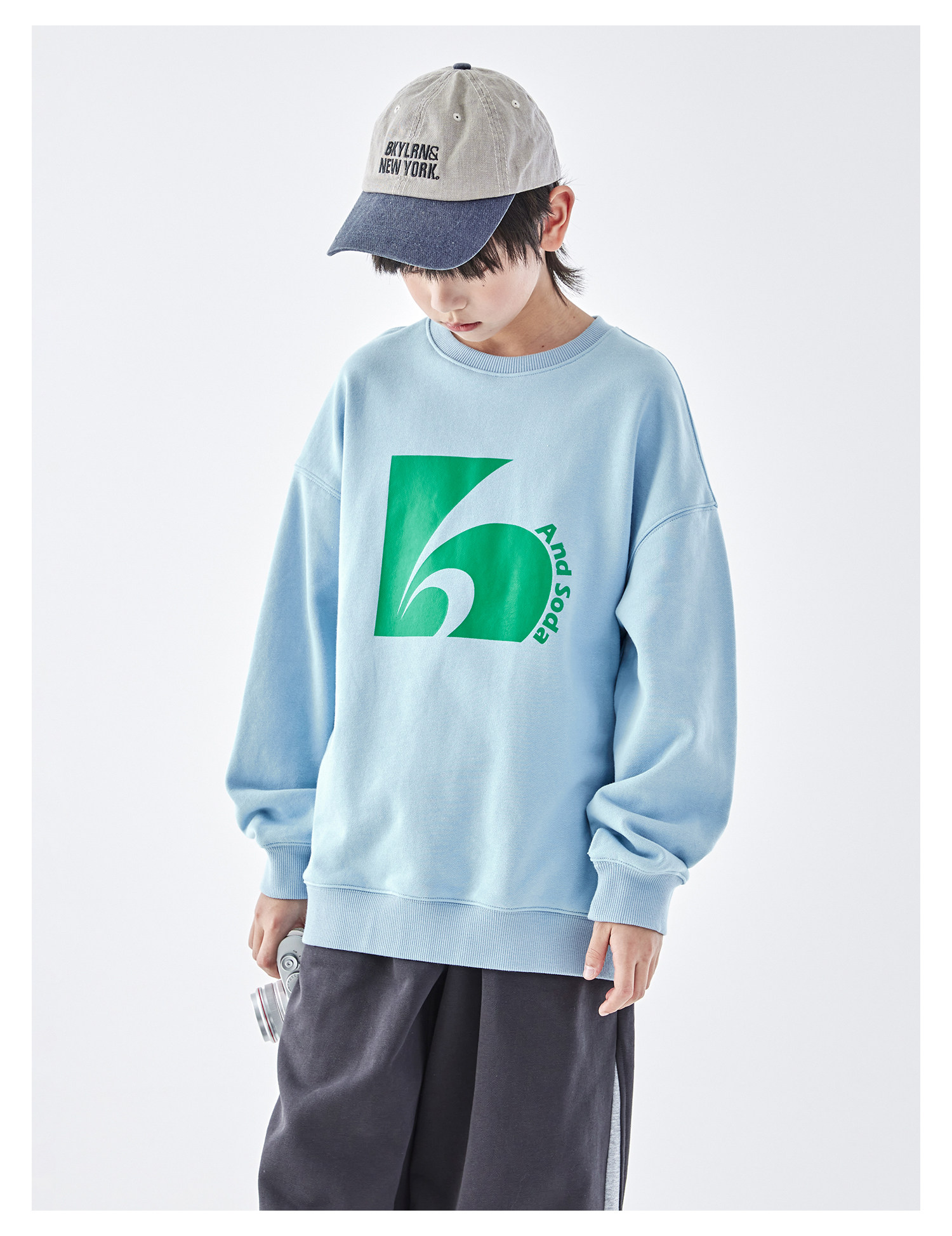 蓝汽水2026春季新款男童印花圆领时髦卫衣青少年潮酷针织宽松上衣