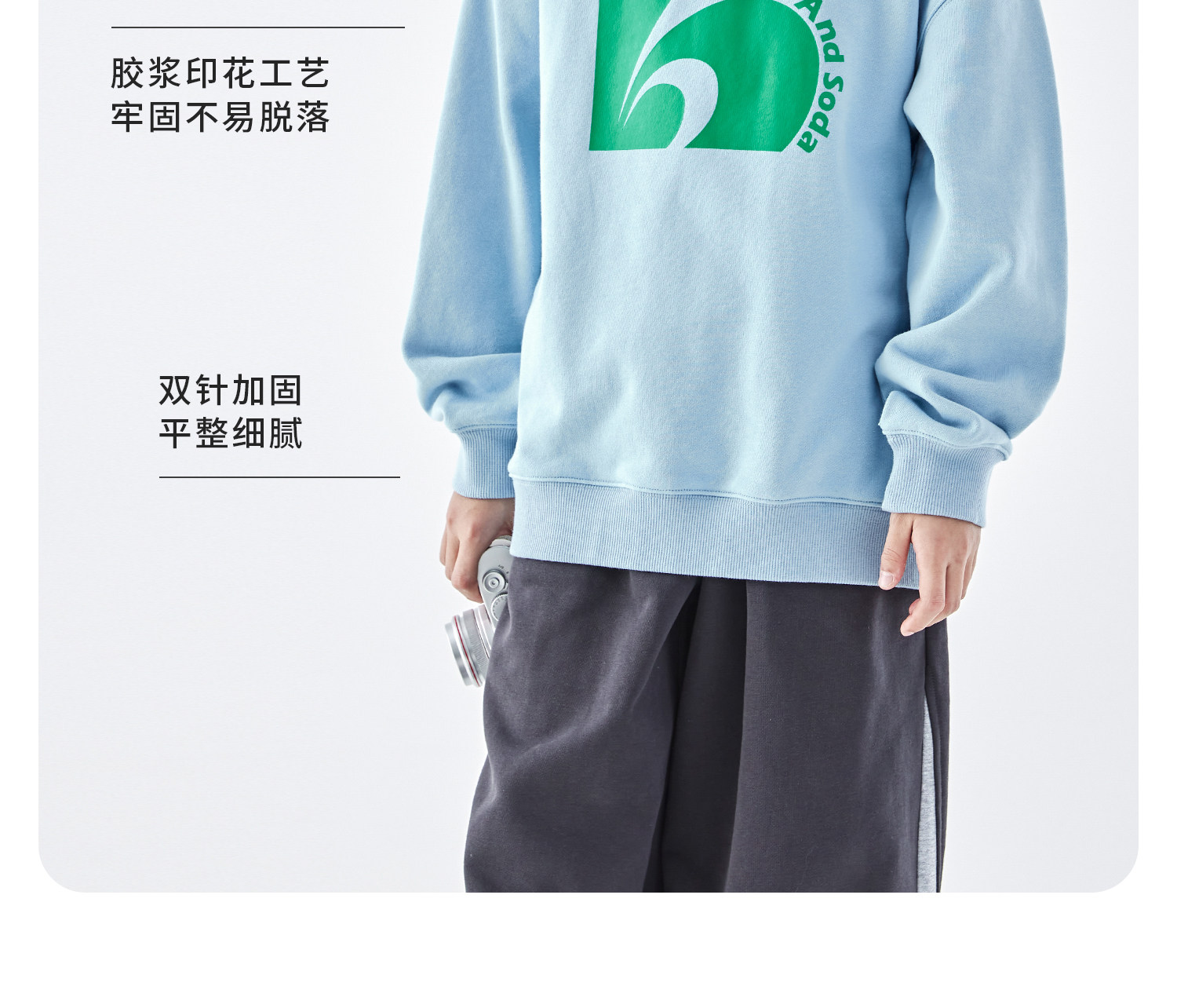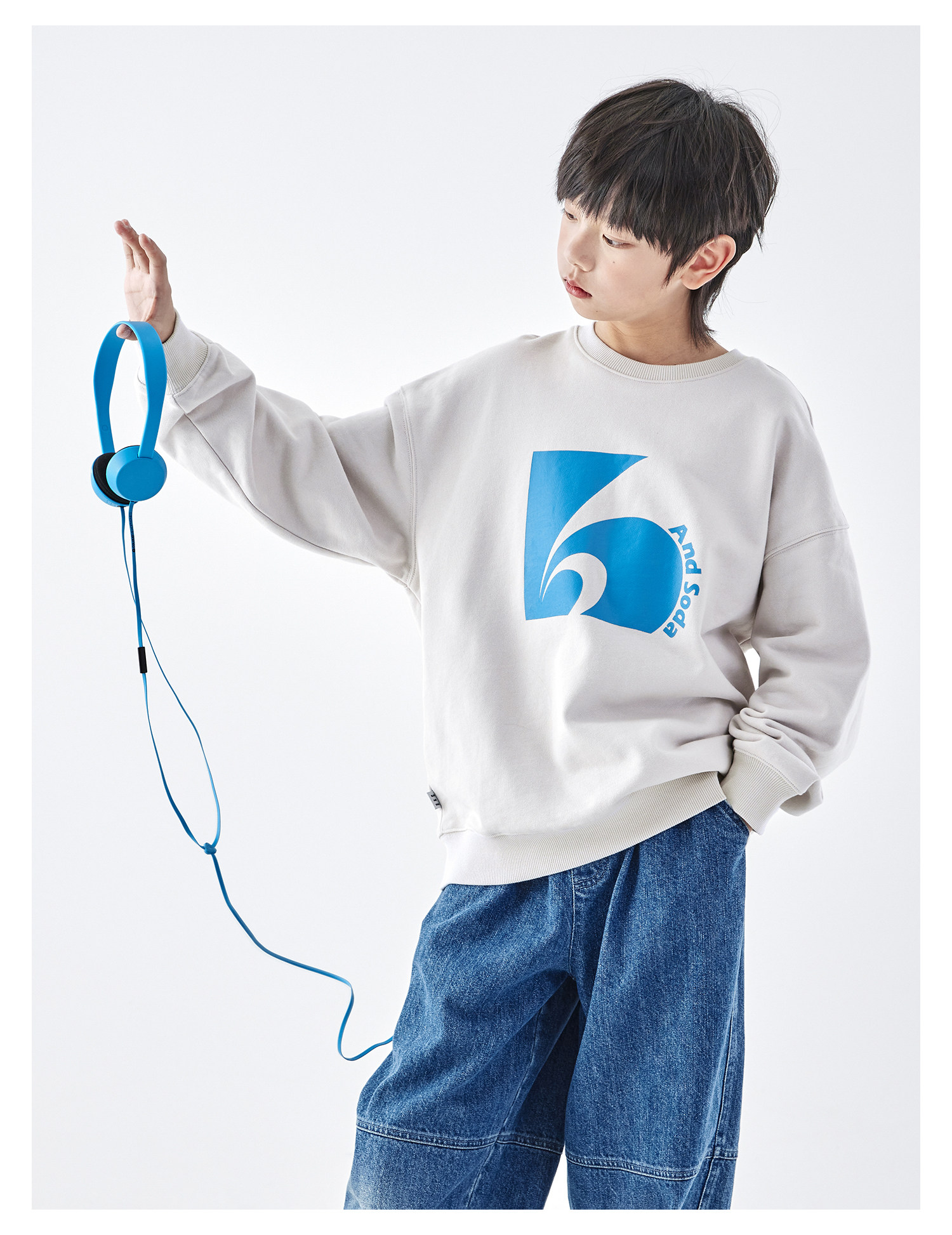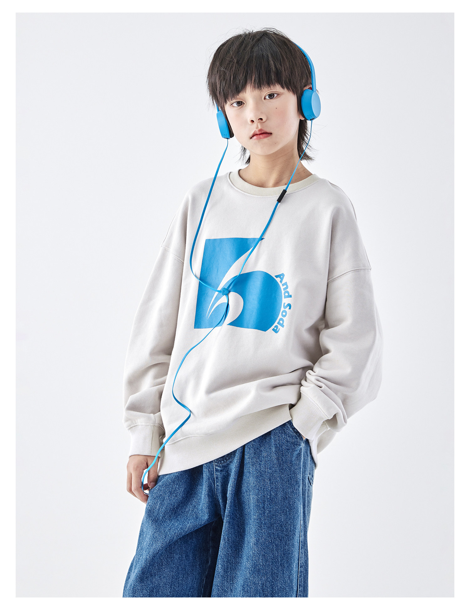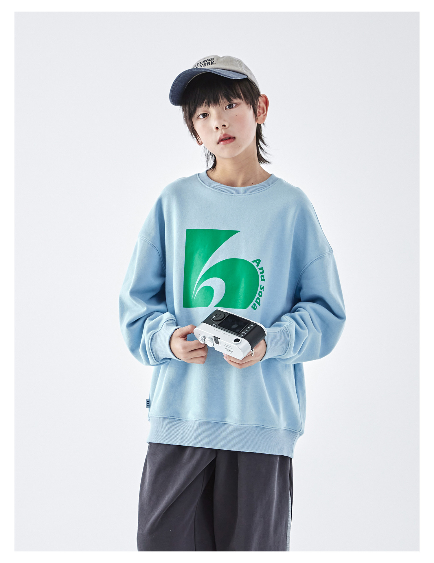 蓝汽水2026春季新款男童印花圆领时髦卫衣青少年潮酷针织宽松上衣