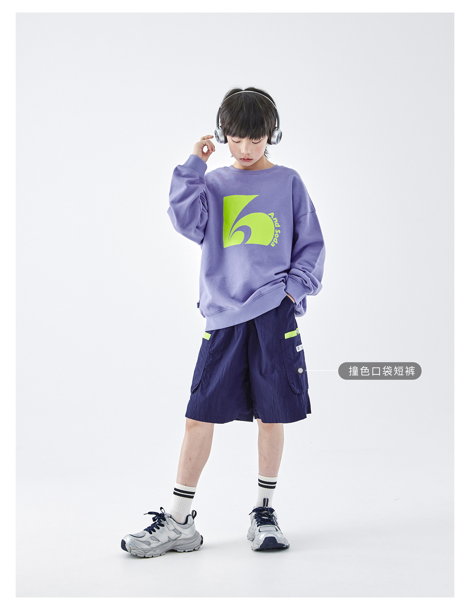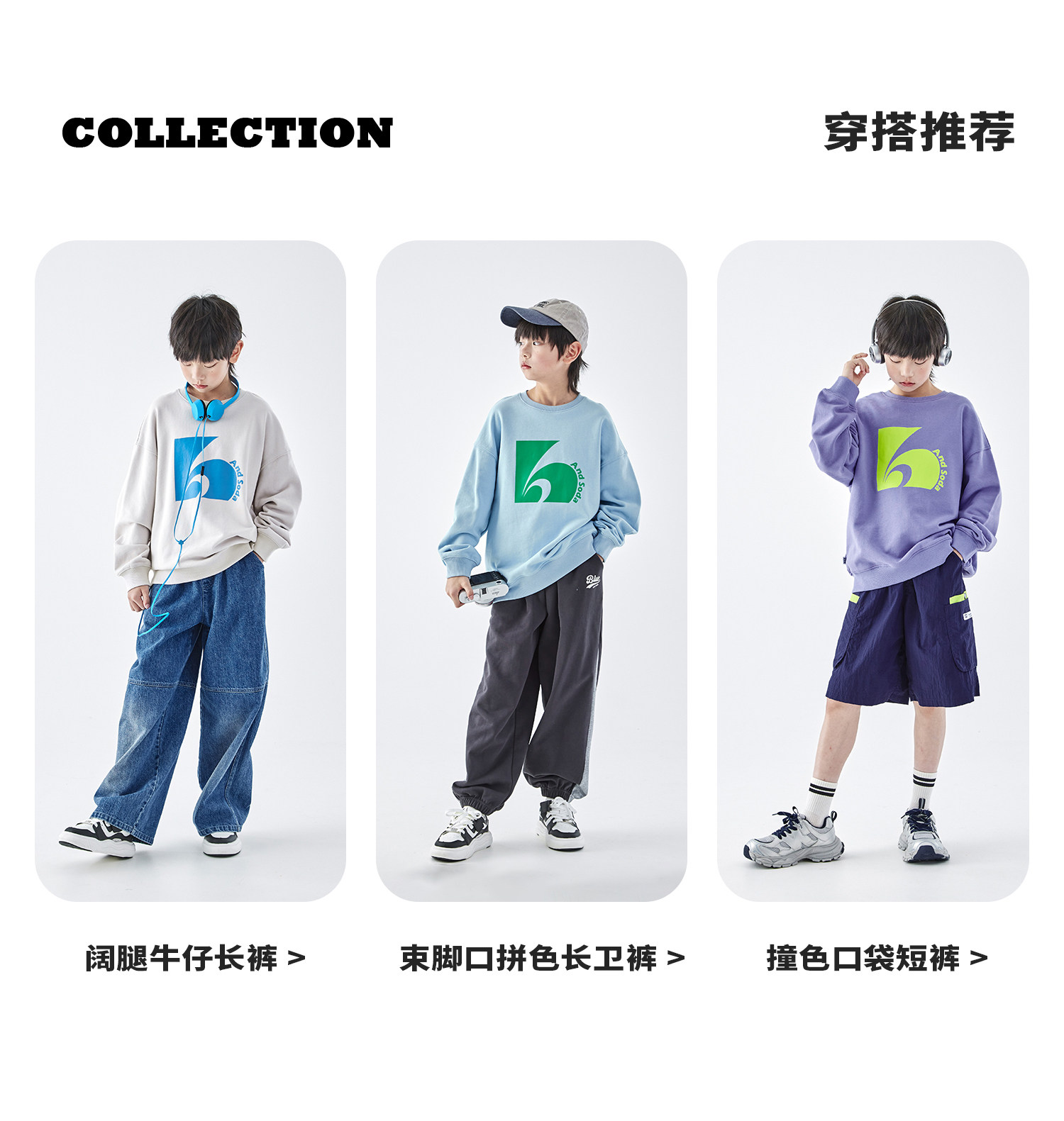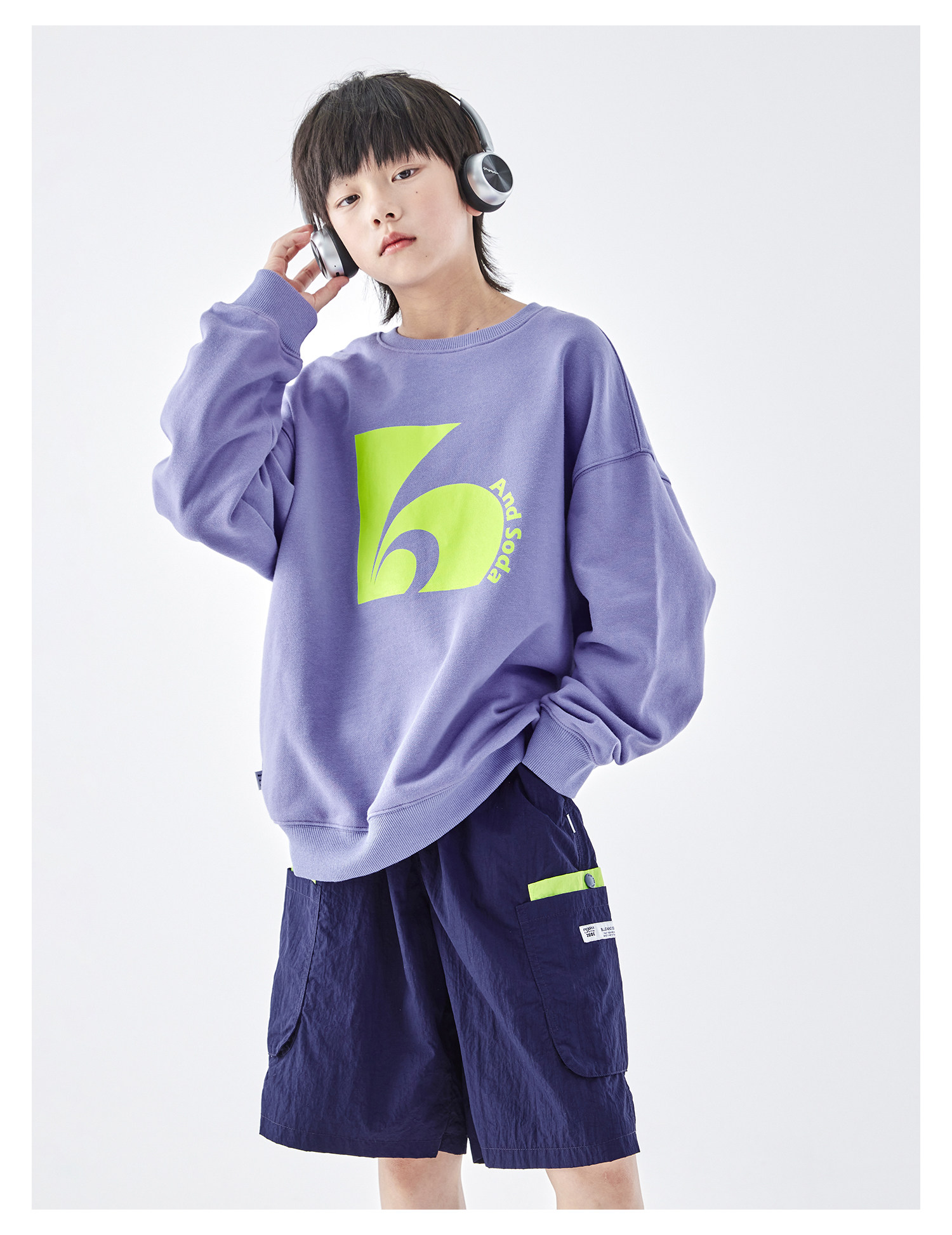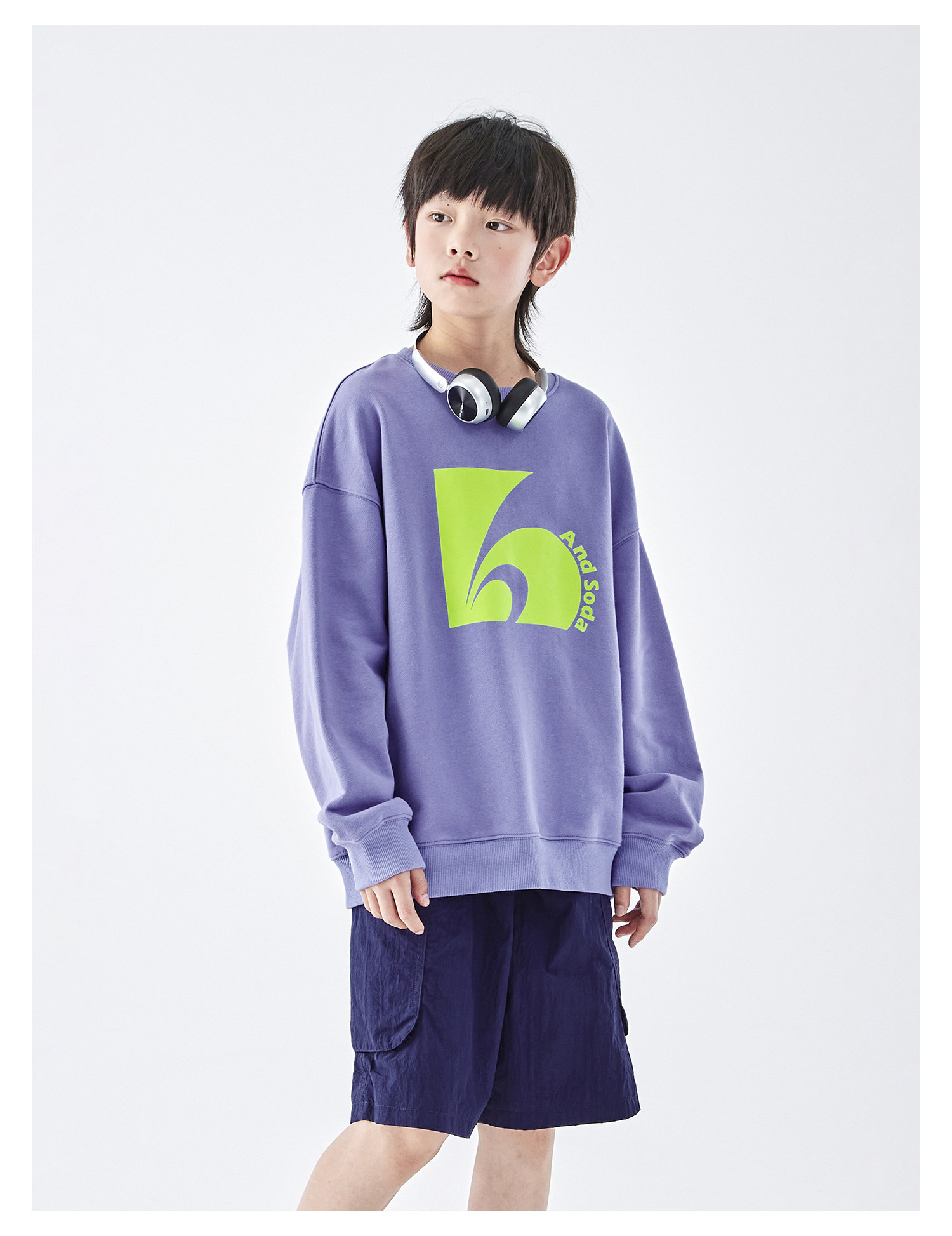 蓝汽水2026春季新款男童印花圆领时髦卫衣青少年潮酷针织宽松上衣
