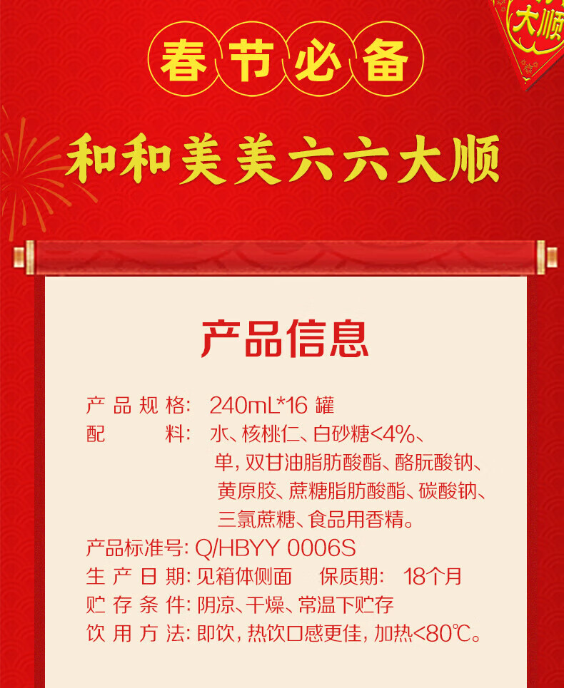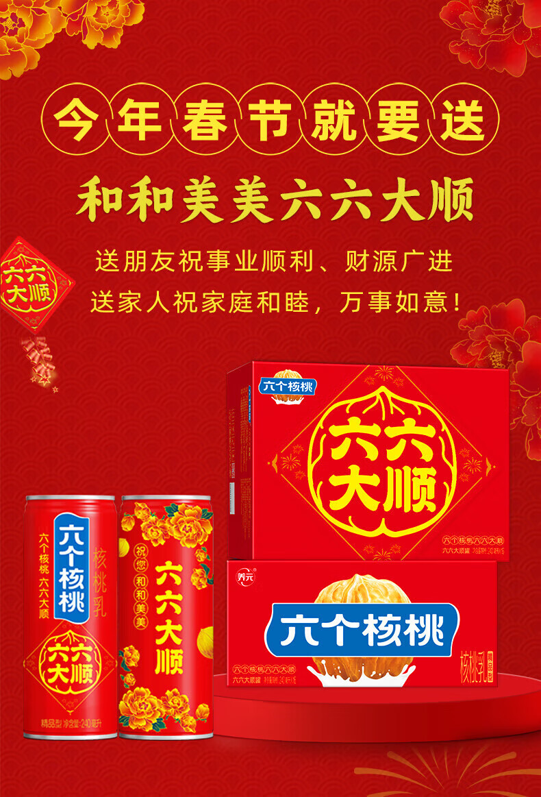 养元六个核桃六六大顺240ml*10瓶 植物蛋白核桃乳饮料整箱送礼