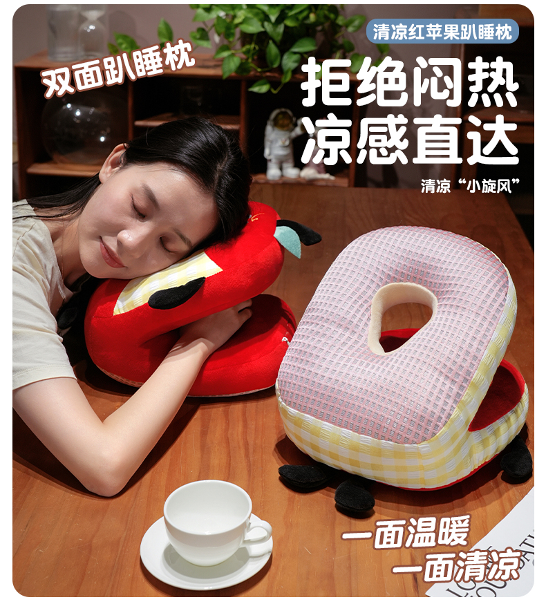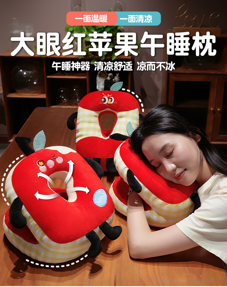 加倍生活 新款红苹果午睡枕 大眼红苹果/微笑苹果 午睡神器 亲肤触感 48小时发货